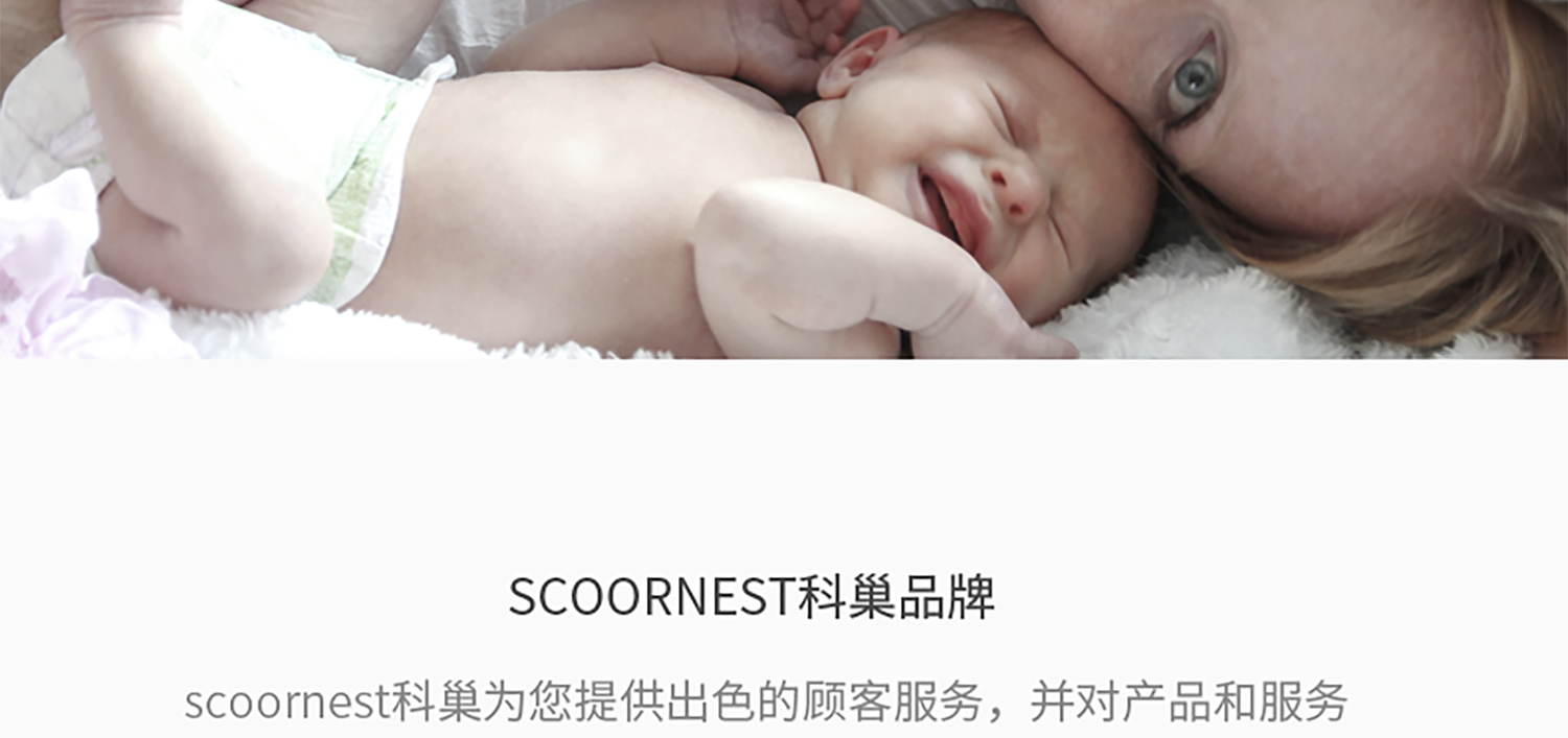 - Scoornest始终秉承给每一位宝宝送去科学的、关心的、创新的成长体验,通过提供商品和服务,使顾客形成守护、发展、巩固这种弥足珍贵的亲情的爱。