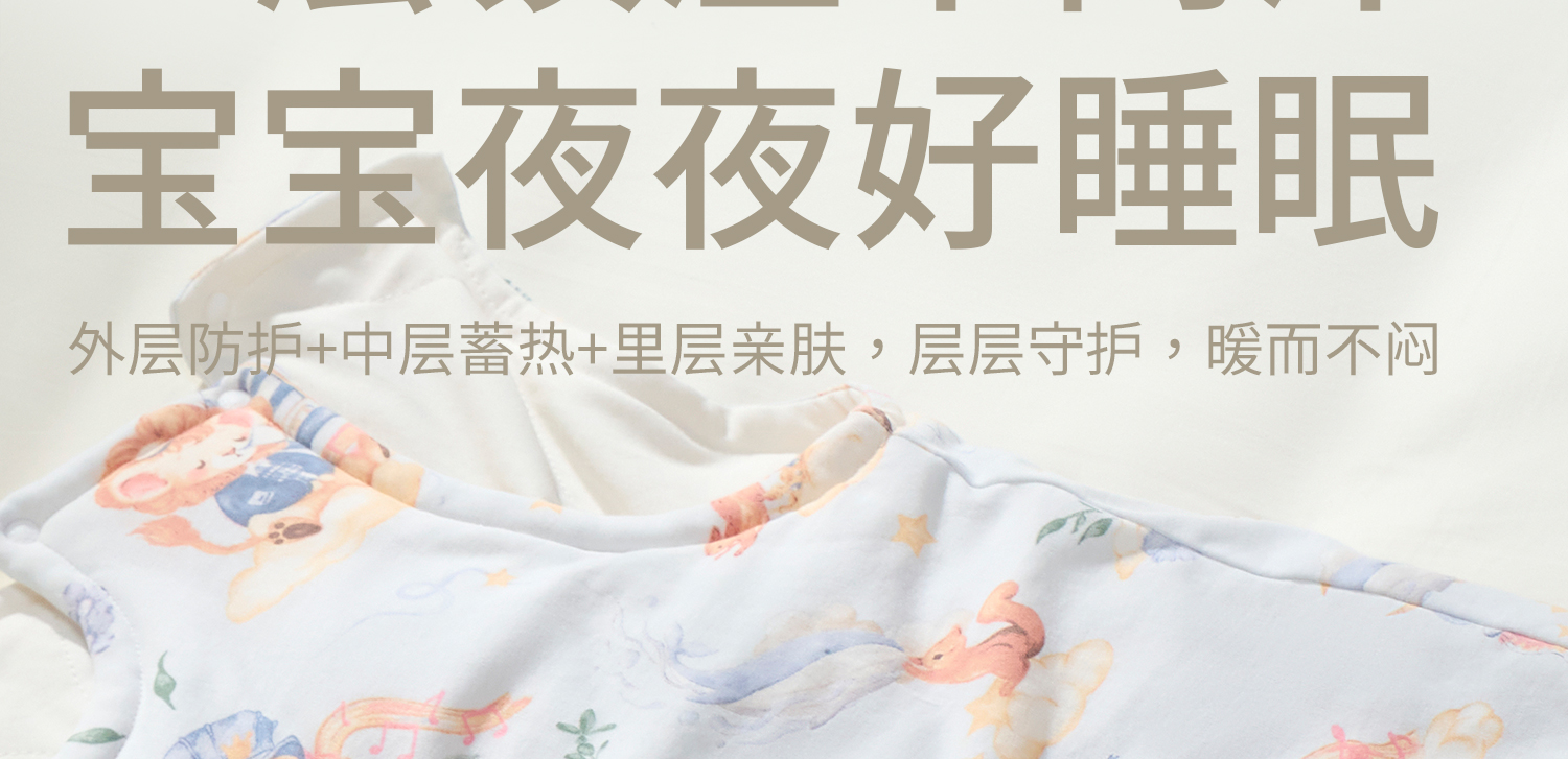 科巢婴儿背心睡袋秋冬儿童宝宝幼儿暖姜恒温防踢被子纯棉四季通用