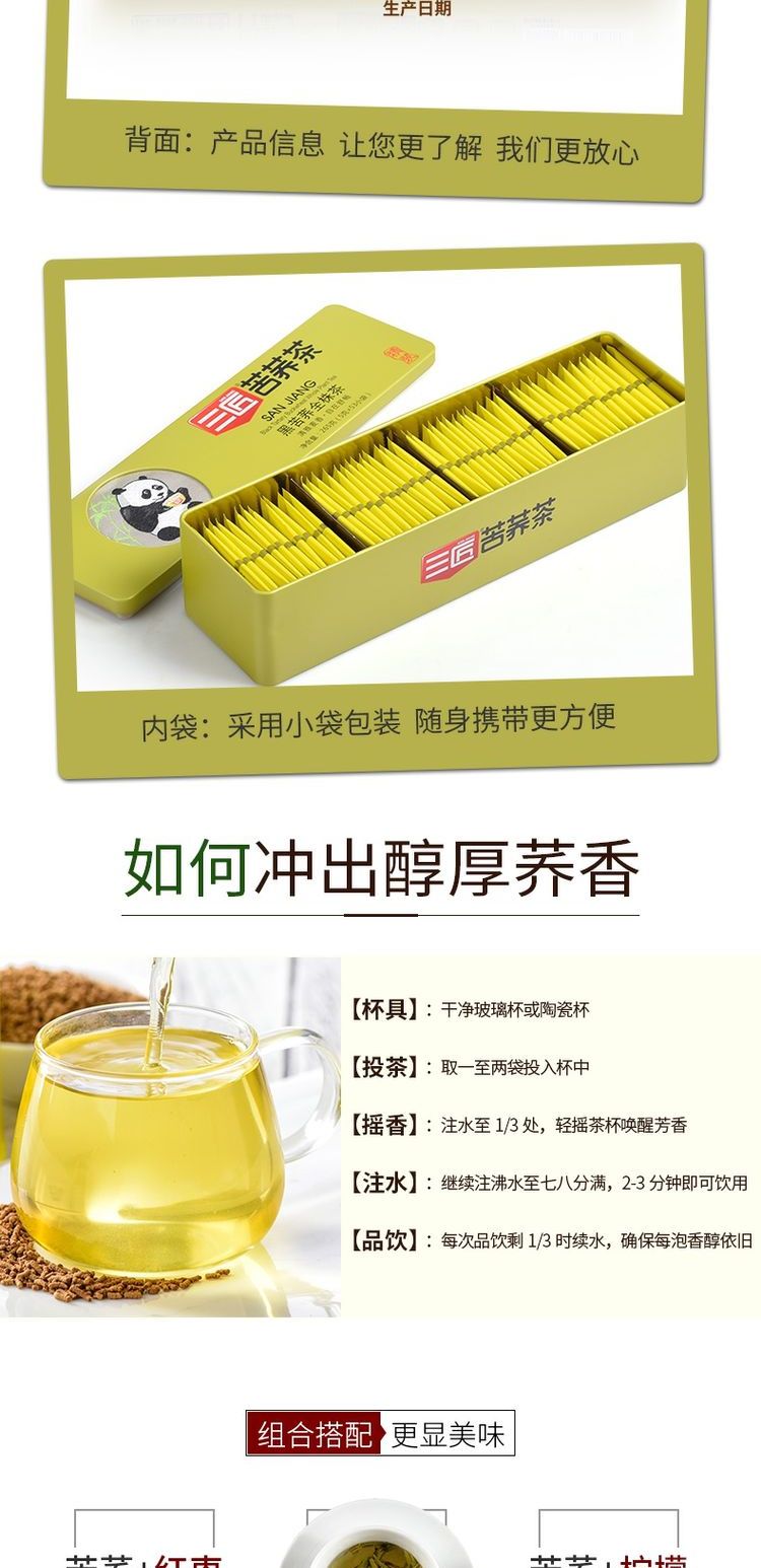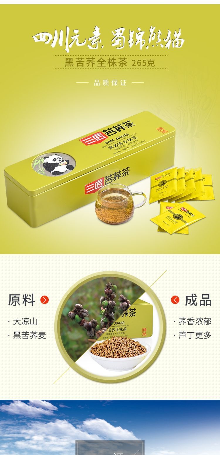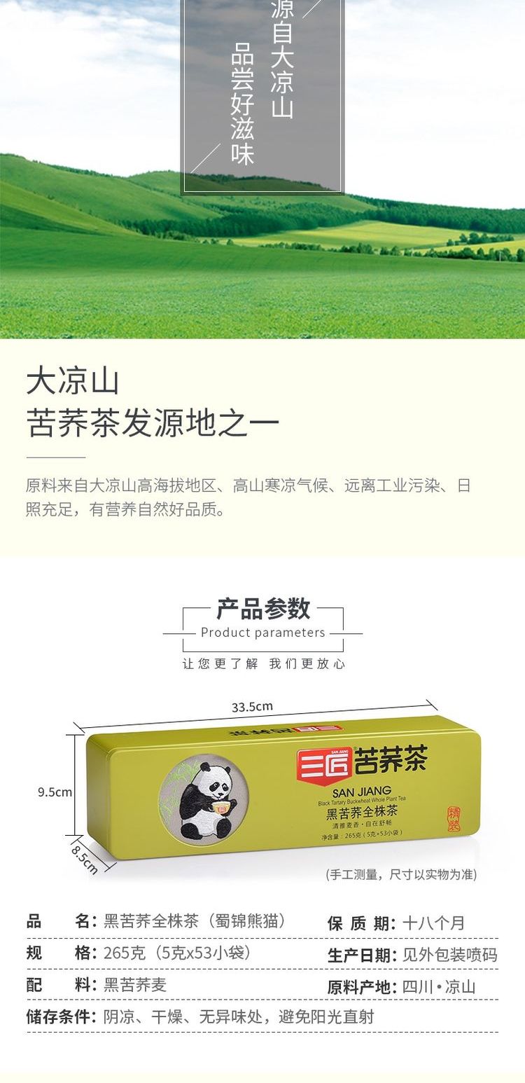 三匠蜀锦熊猫黑苦荞全株茶265g铁盒装(买一送一)