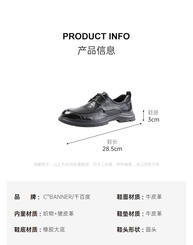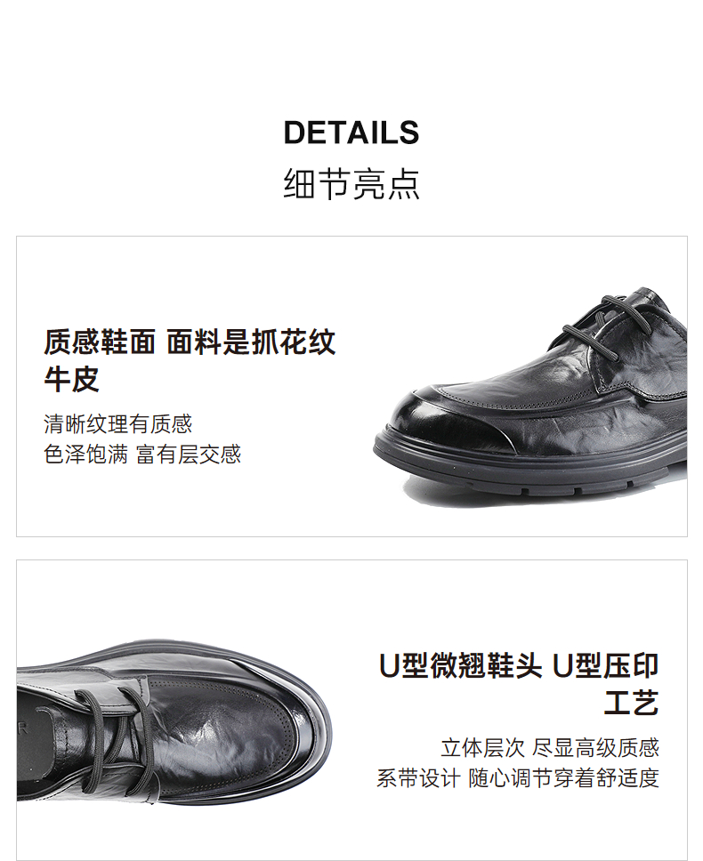 千百度2026春季男鞋清晰纹理有质感 色泽饱满商务休闲A26166680