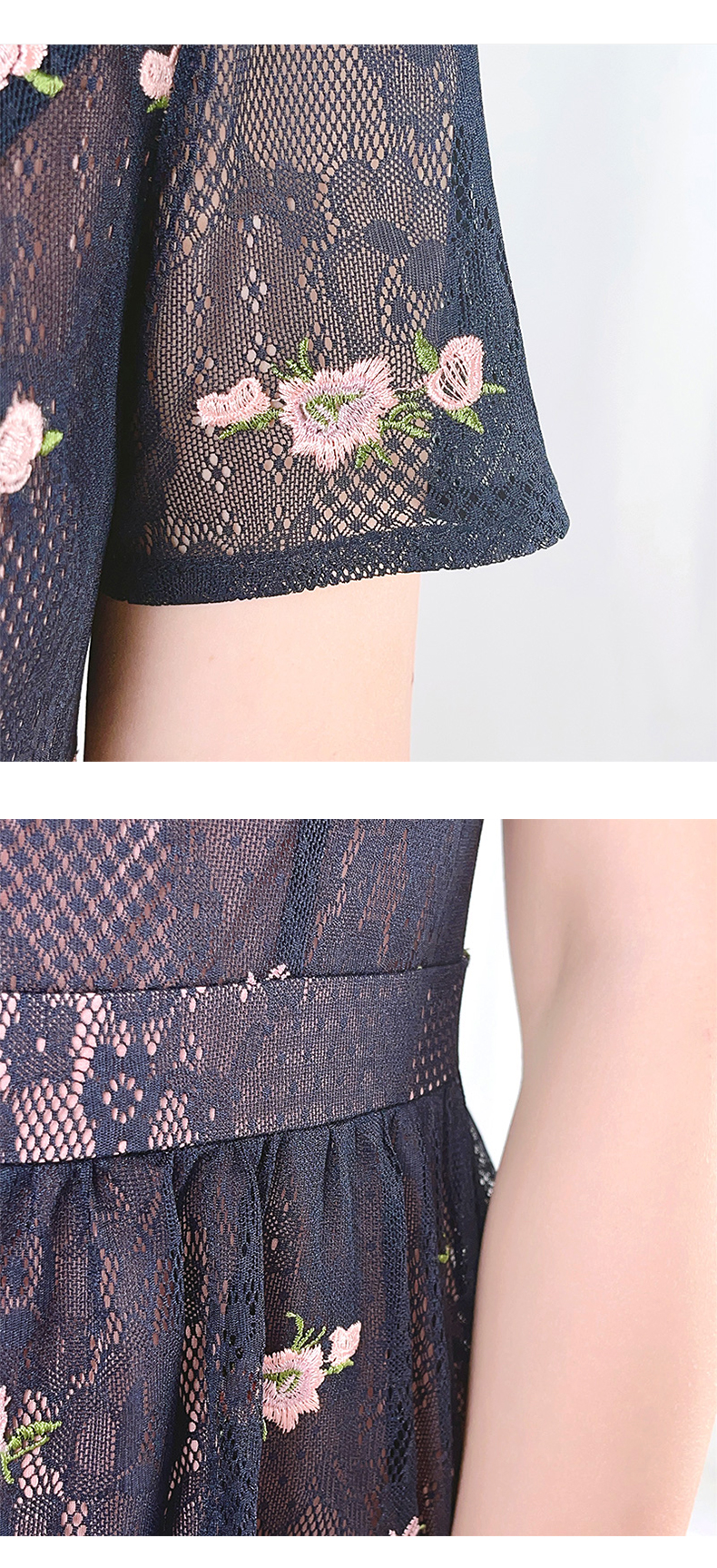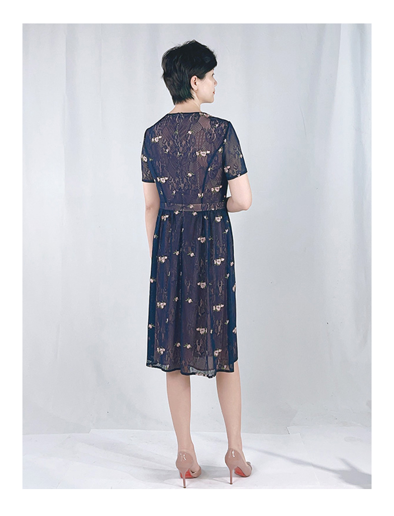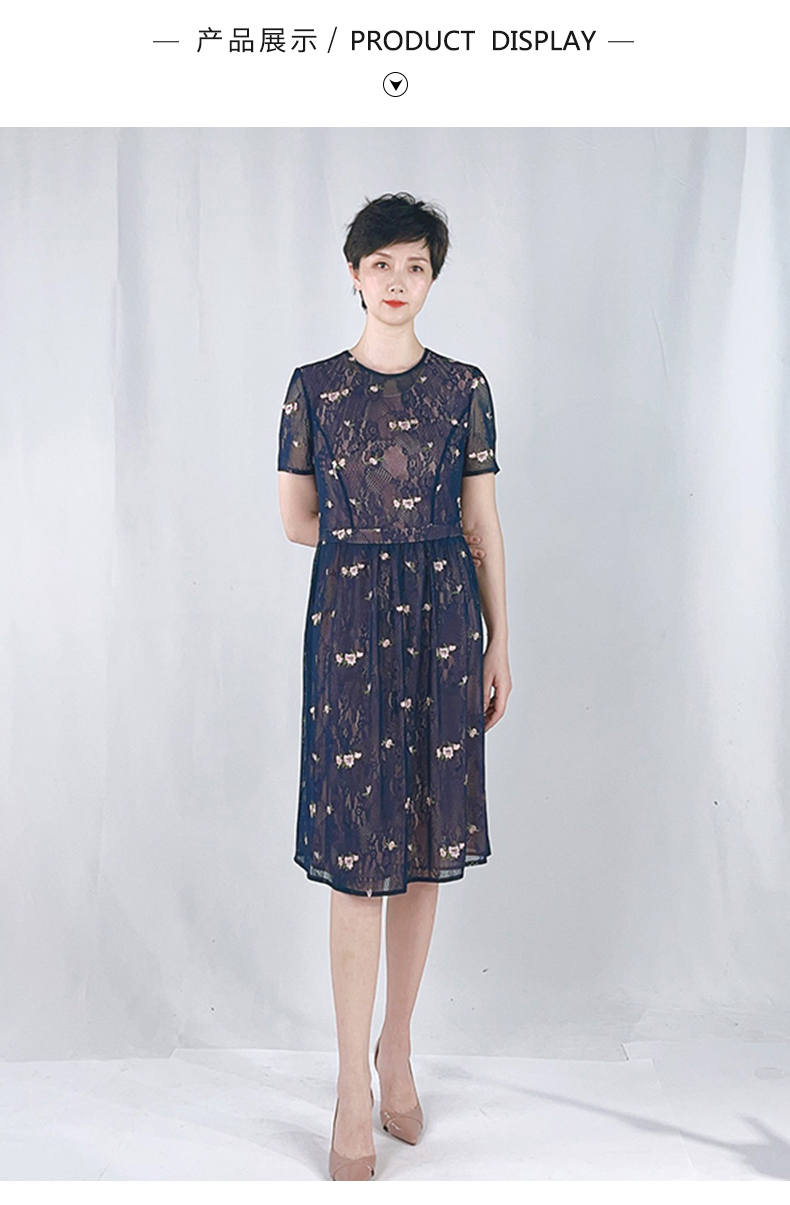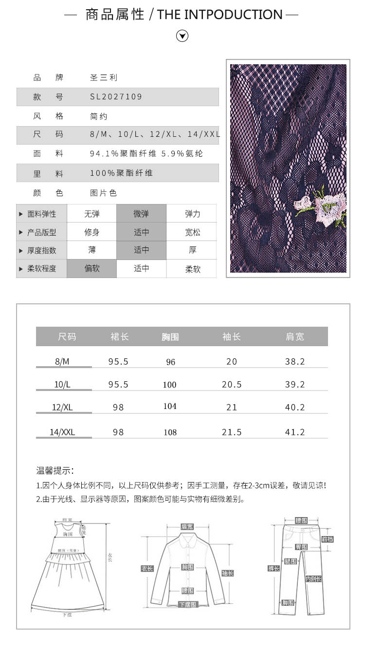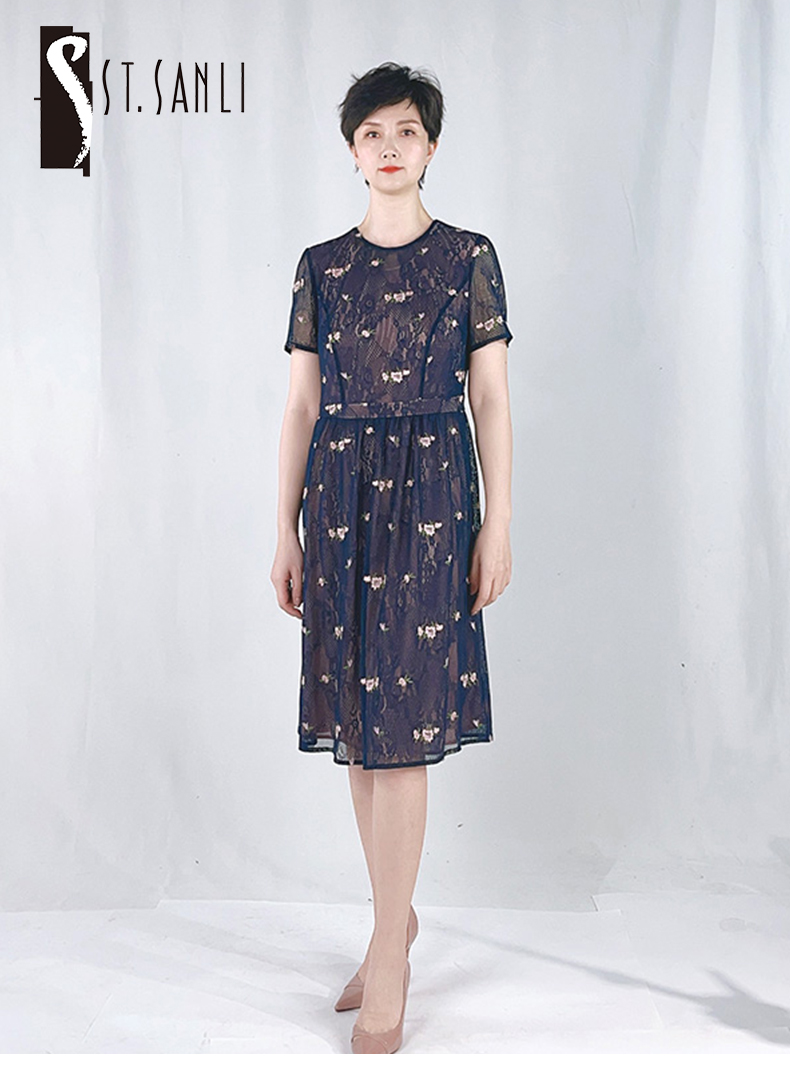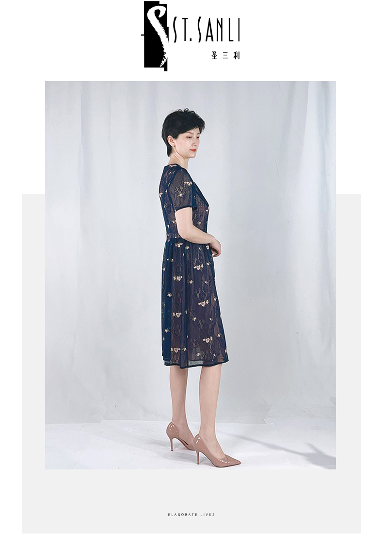 圣三利女装 新款花朵刺绣蕾丝中长款收腰散摆连衣裙SL2027109