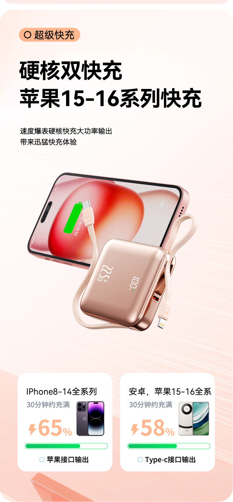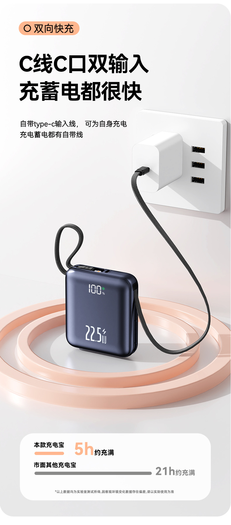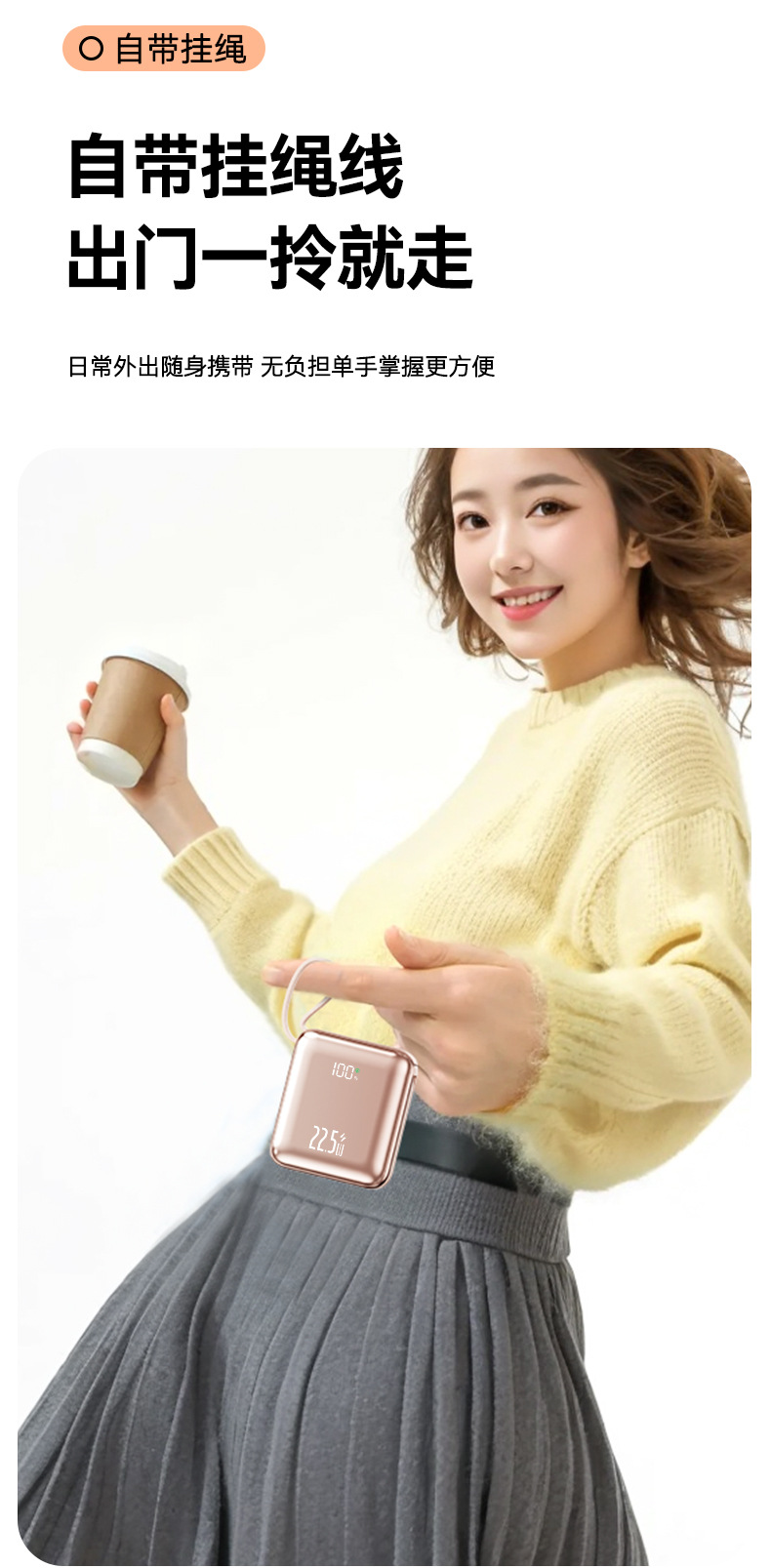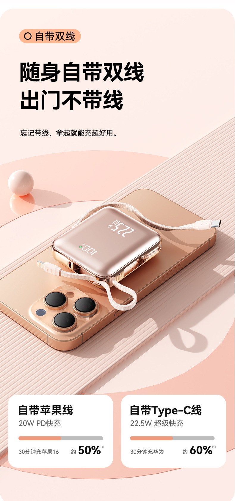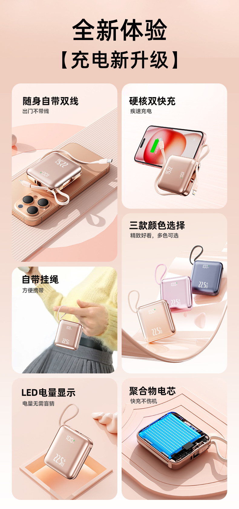 新国标3C认证充电宝 快充大容量 20000毫安自带线超薄小巧便携快充