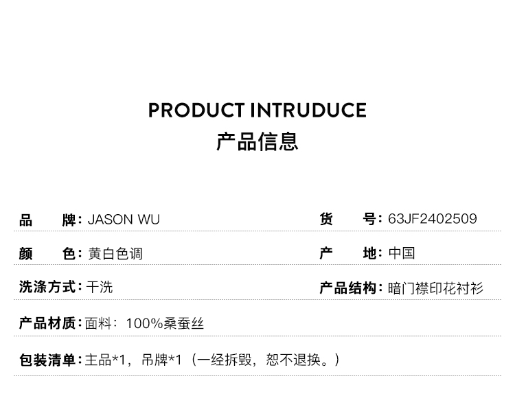 (桑蚕丝)【JASON WU】秋季秋冬新款真丝印花通勤宽松上衣衬衣衬衫女