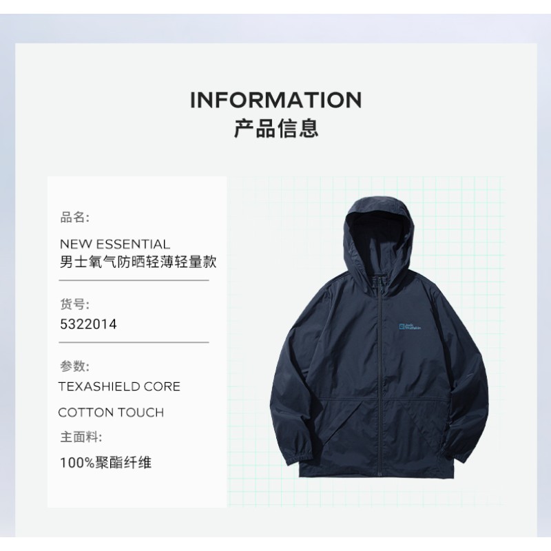 JackWolfskin新款NEW ESSENTIAL氧气防晒UPF100男5322014