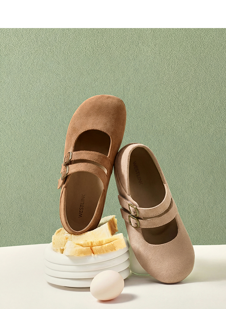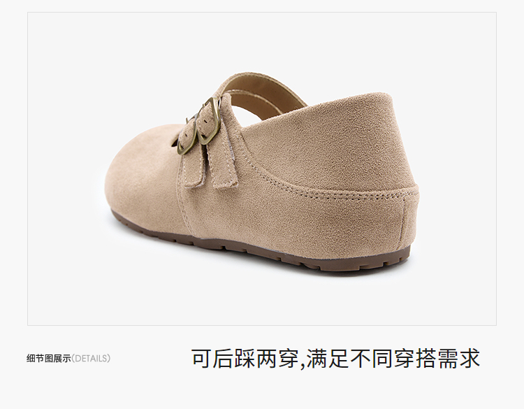 【限时秒杀】西遇勃肯鞋女鞋2026春季新款平底魔术贴双扣复古百搭两穿全包单鞋V0166236