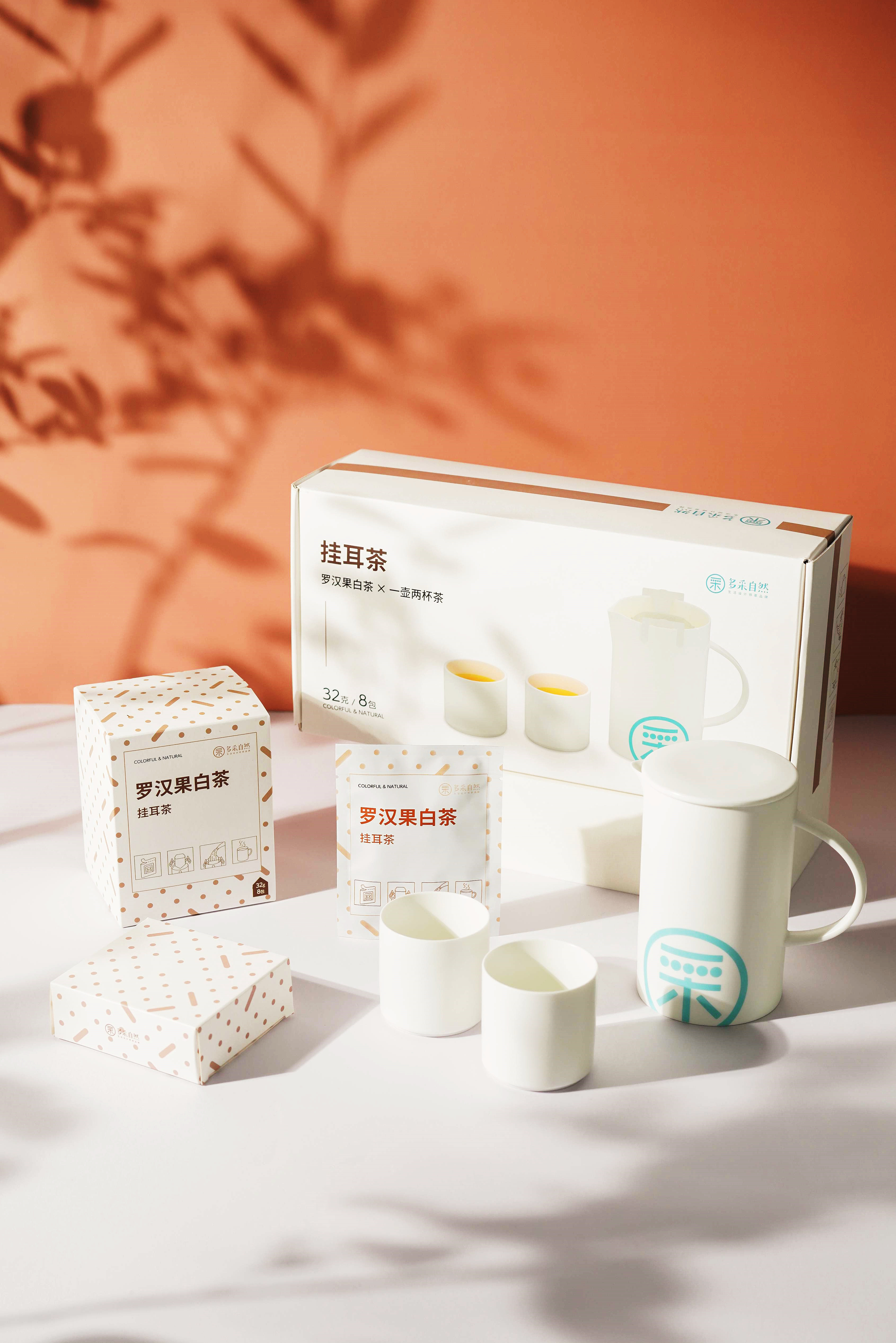多采自然 伴手礼系列 挂耳罗汉果白茶+一壶两杯组合【天猫同款】
