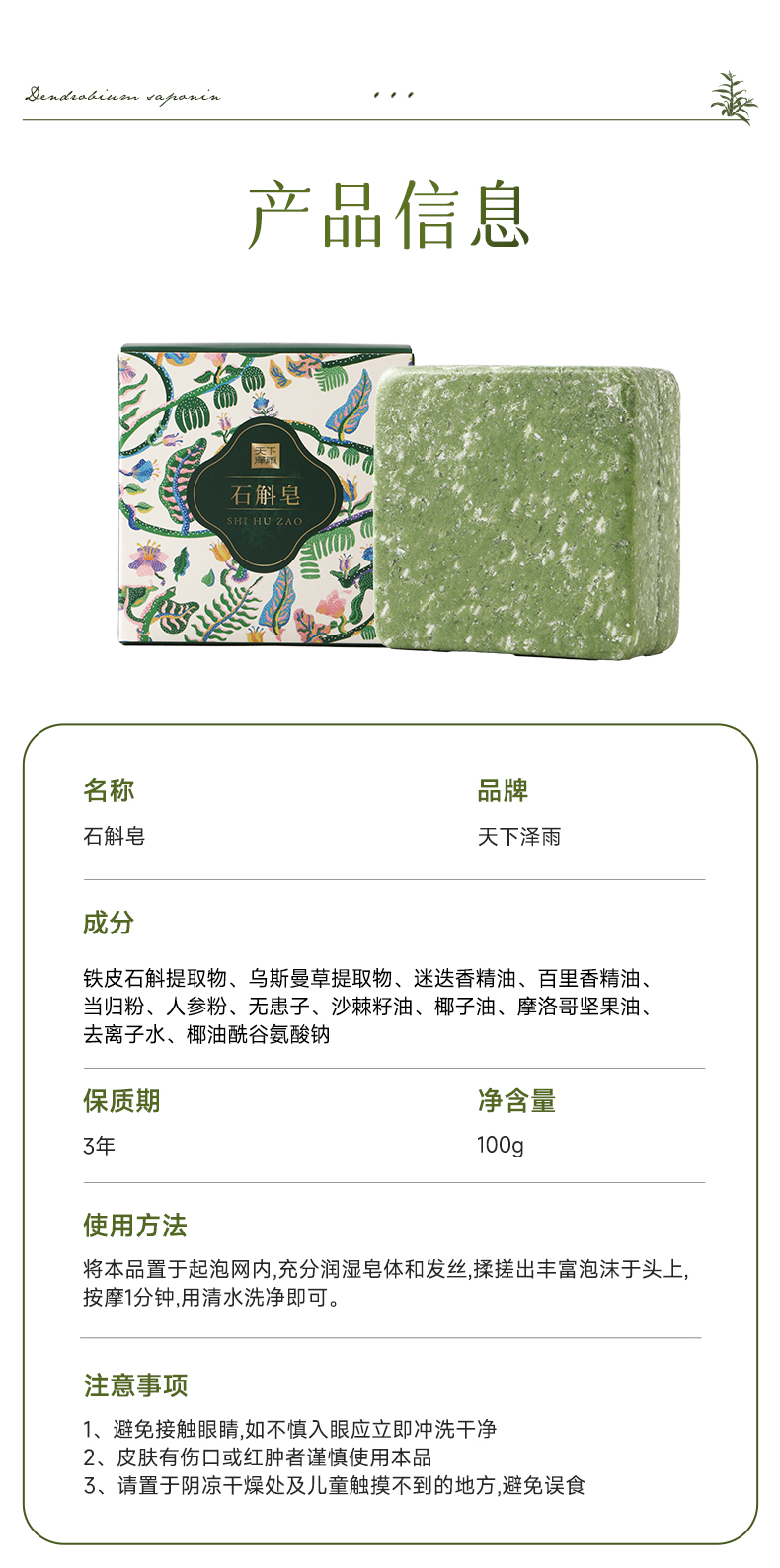 过年不打烊!【来自霍山 石斛之乡 】天下泽雨霍山铁皮石斛润发洗护皂 天然植萃配方 深层清洁脸部 头皮油腻 异味 无添加 谈谈青草味 洗养合一