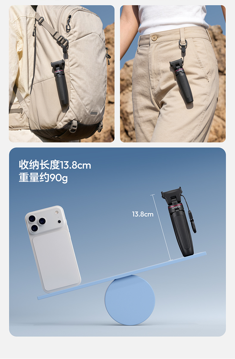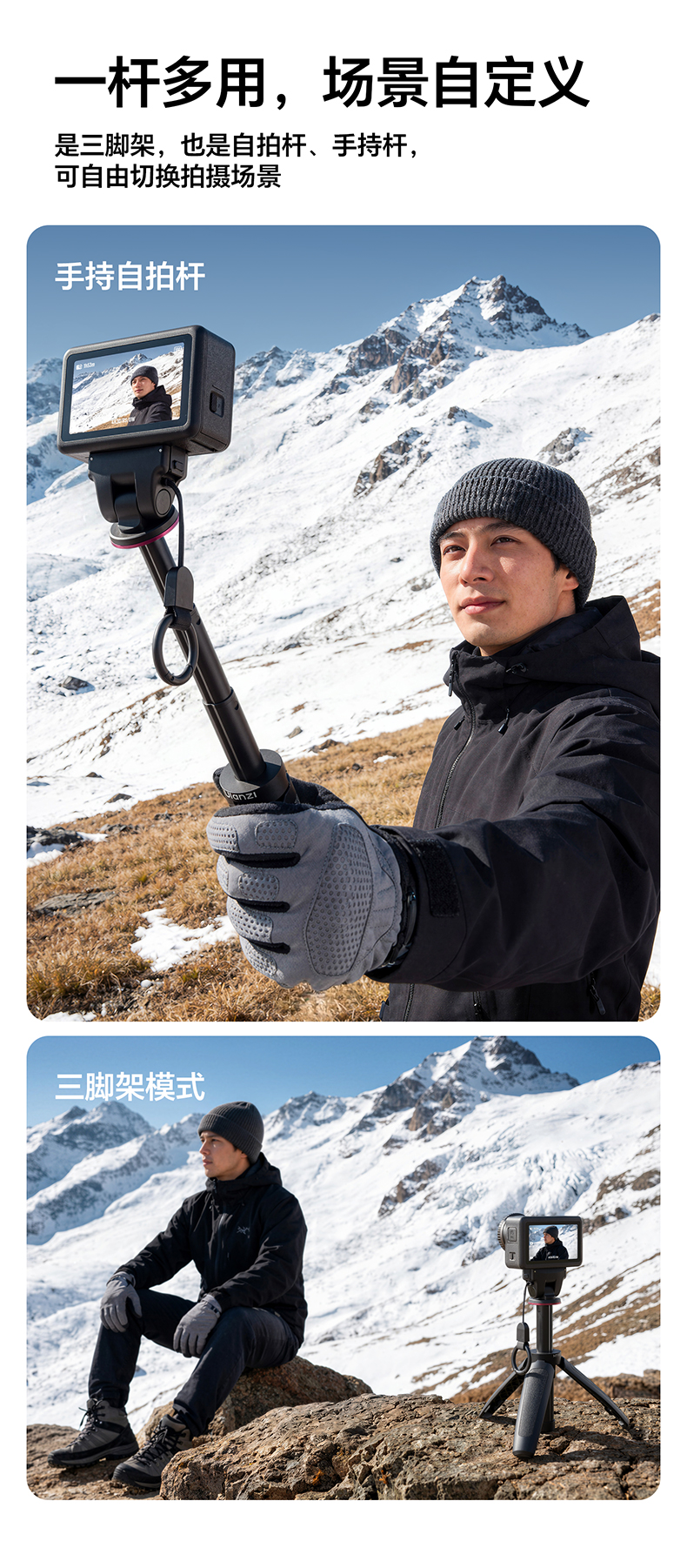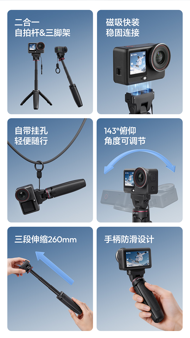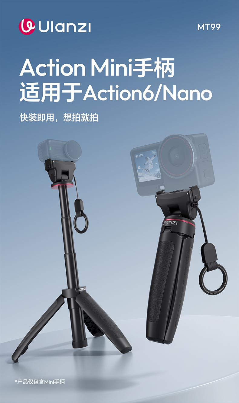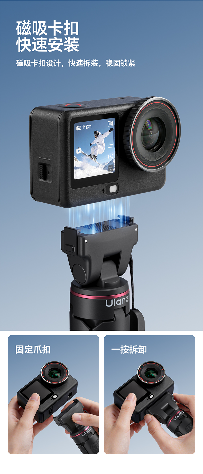 Ulanzi优篮子MT99迷你磁吸快拆自拍杆适用DJI大疆Action 6/Nano运动相机手持延长杆桌面三脚架Vlog自拍摄支架