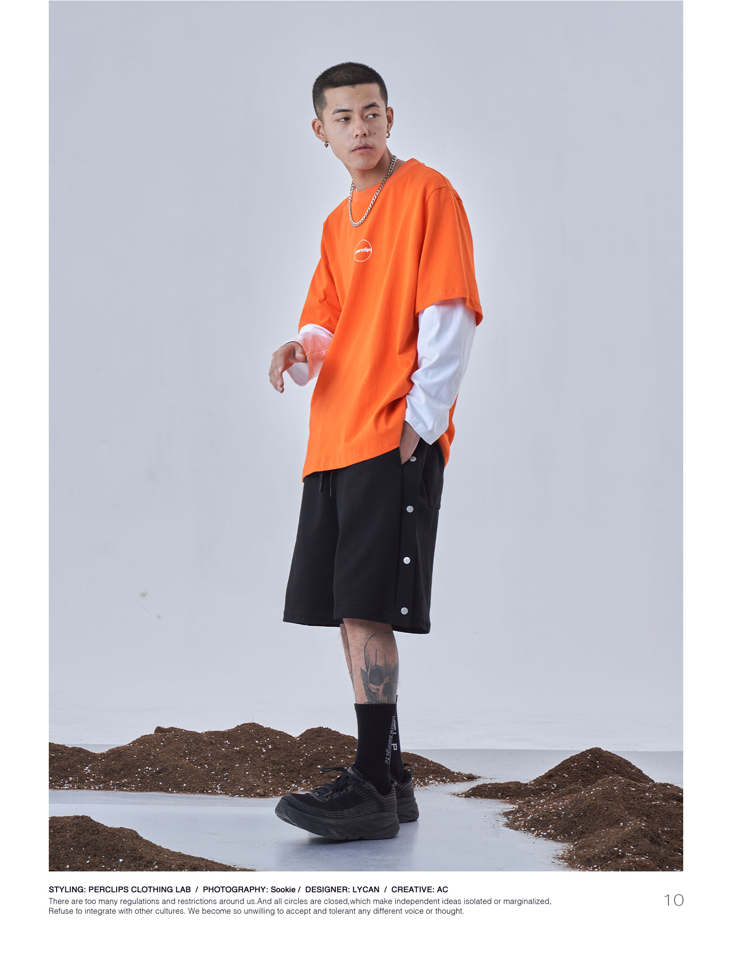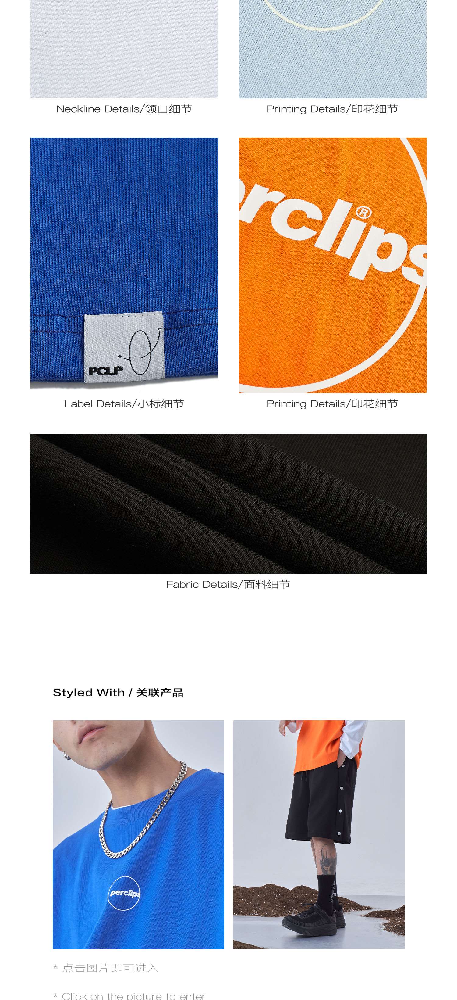 PCLP(PERCLIPS) 纯棉短袖男宽松夏季国潮牌情侣装2021新款半袖t恤