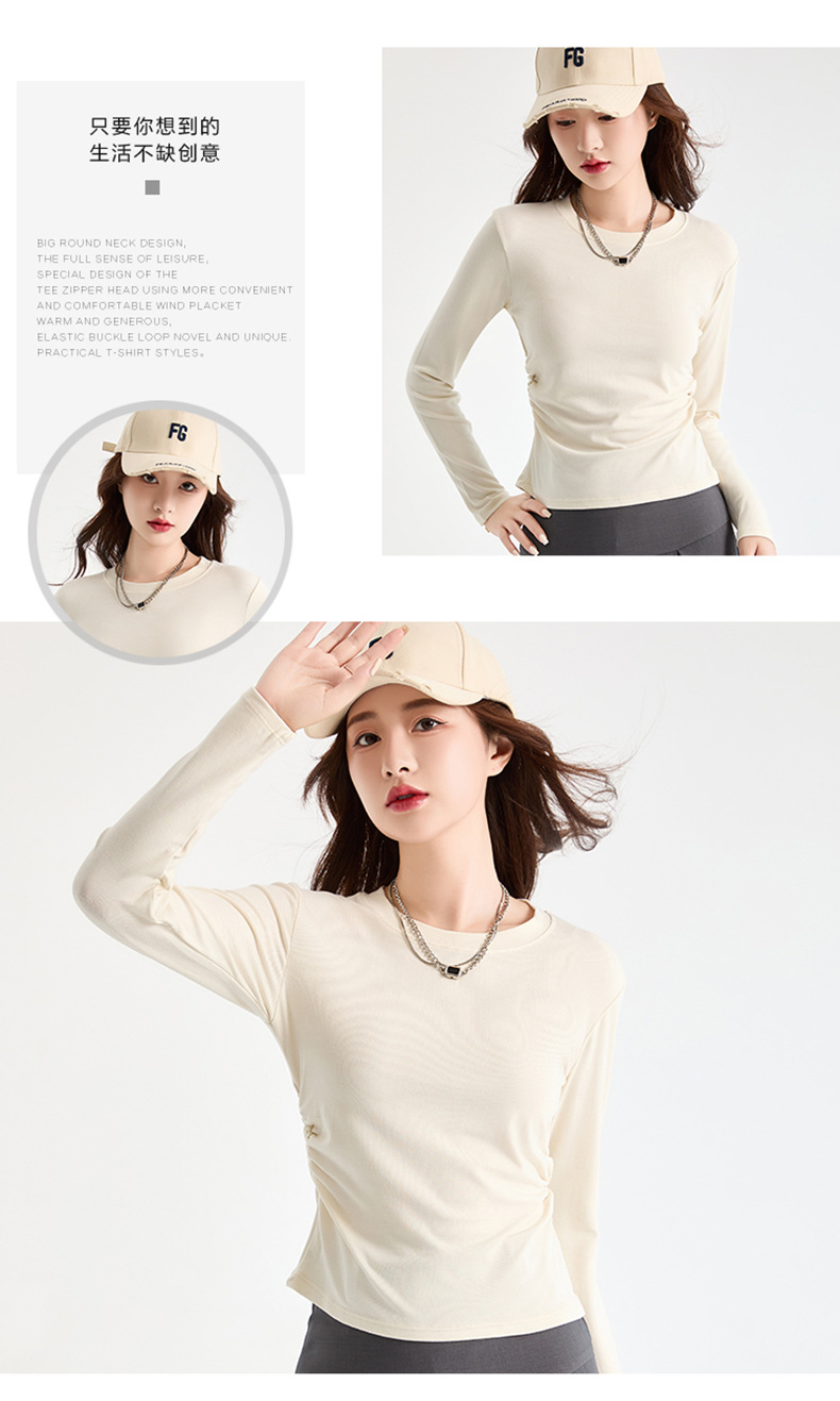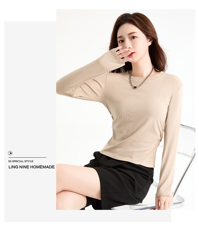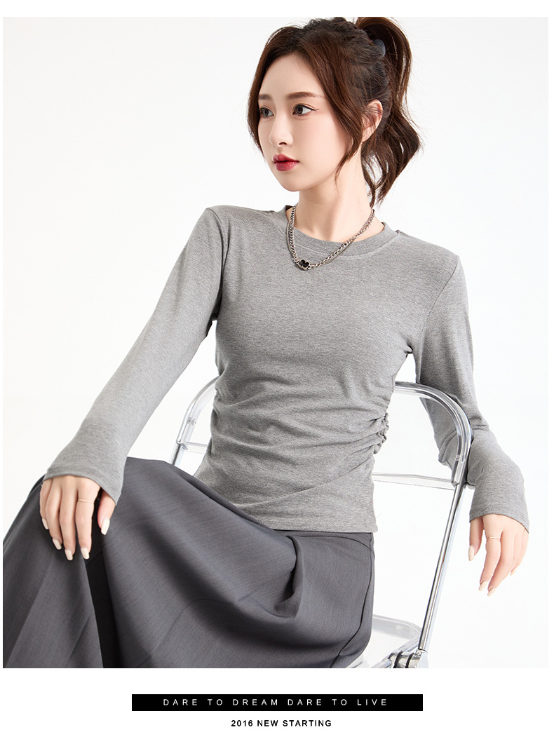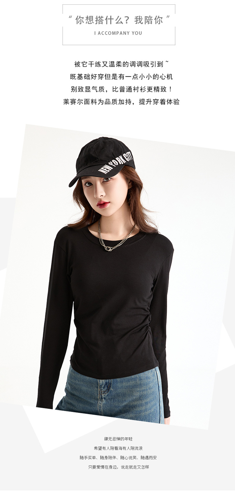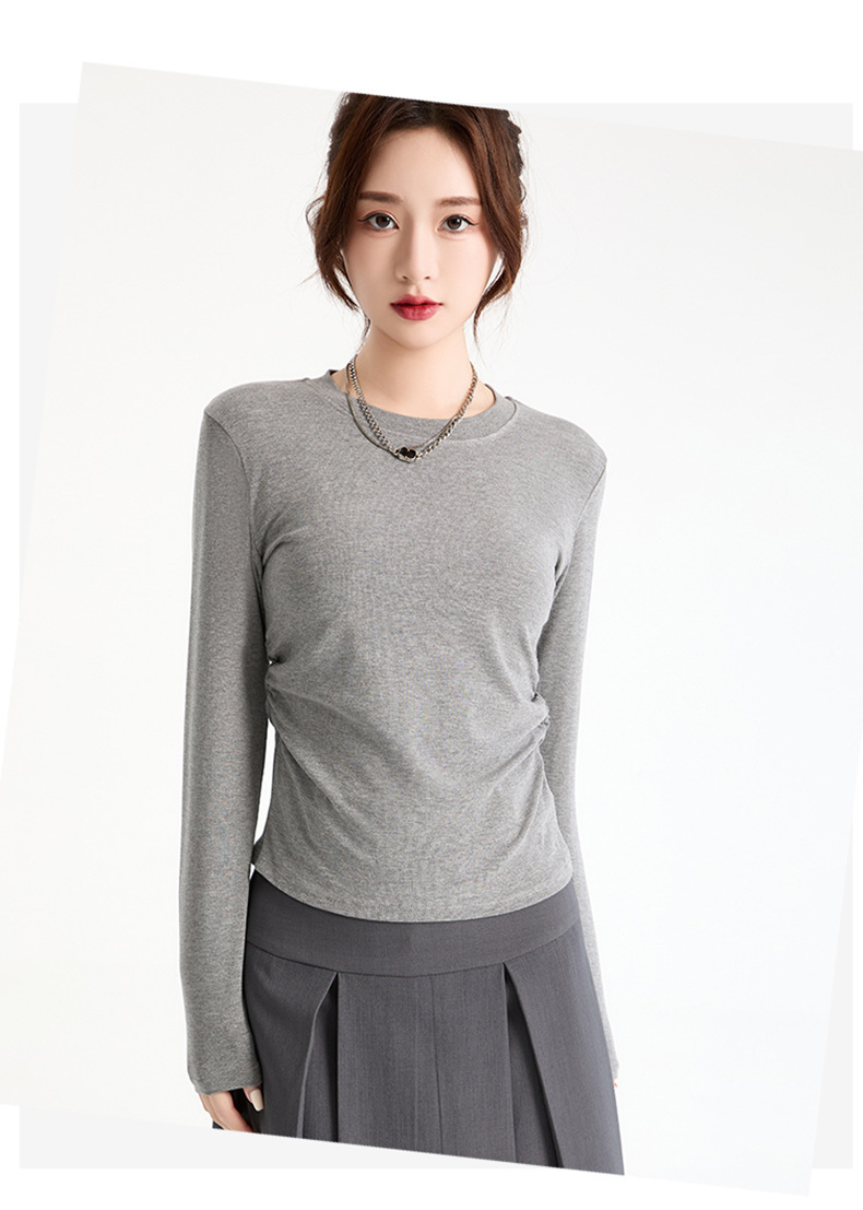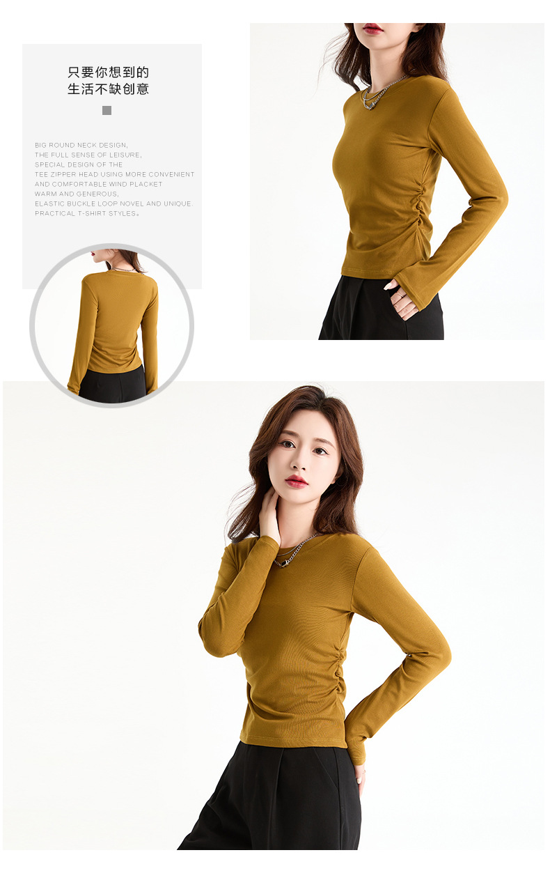 设计感褶皱圆领打底衫女秋季新款修身显瘦收腰不规则打底上衣长袖