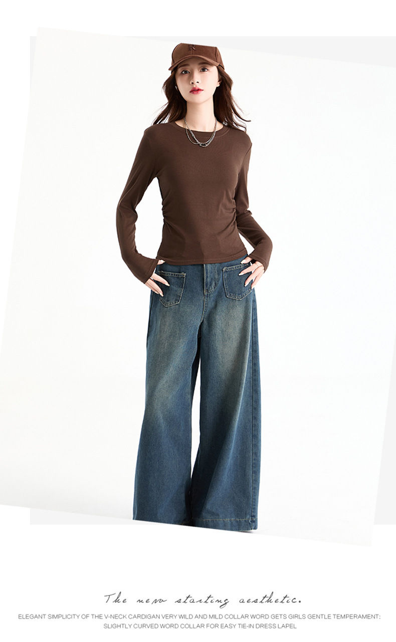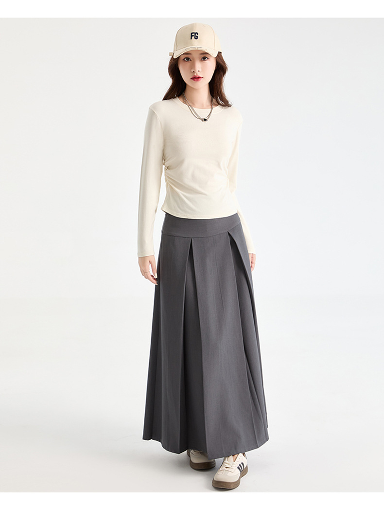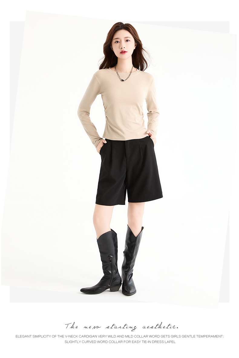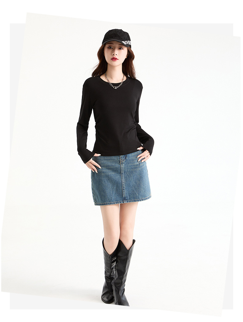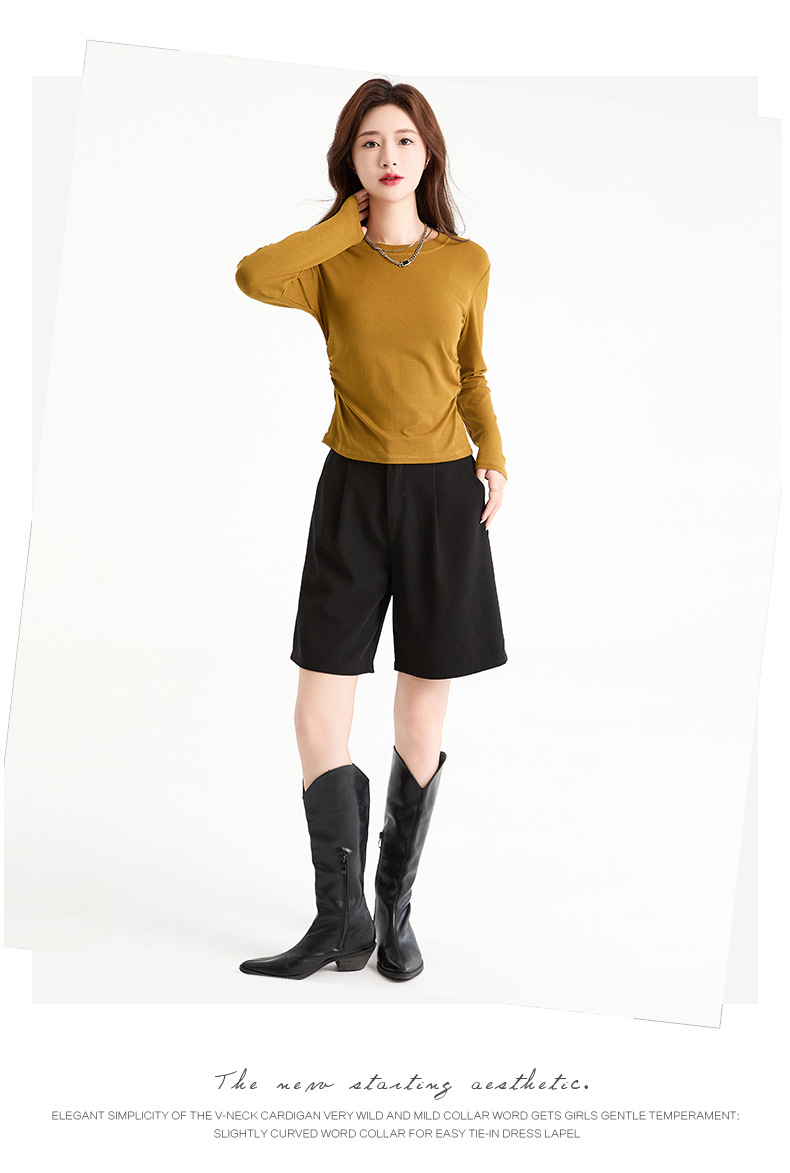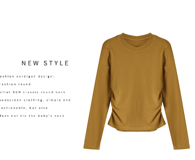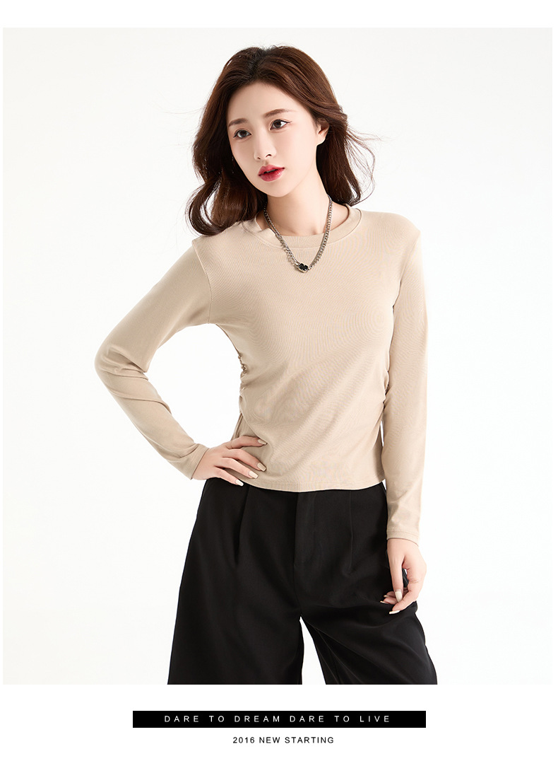 设计感褶皱圆领打底衫女秋季新款修身显瘦收腰不规则打底上衣长袖