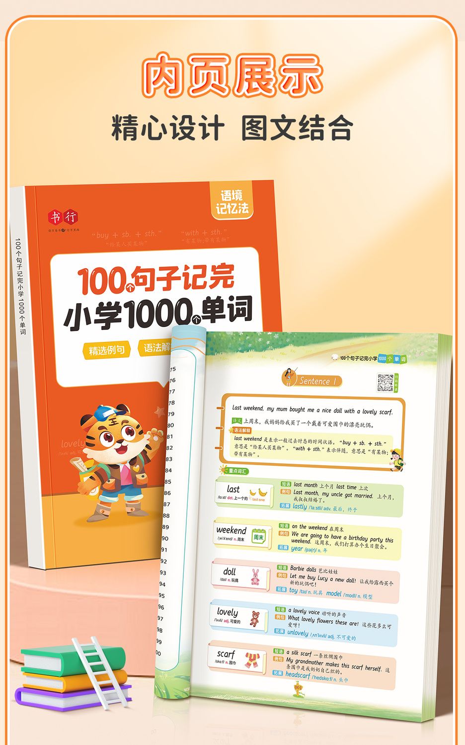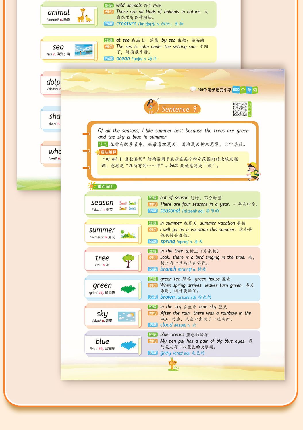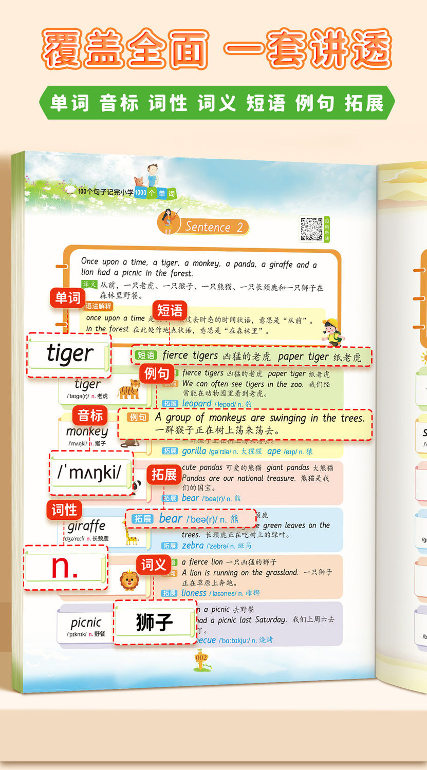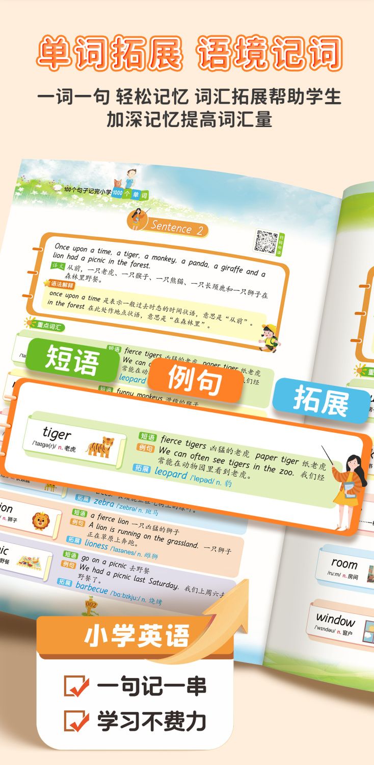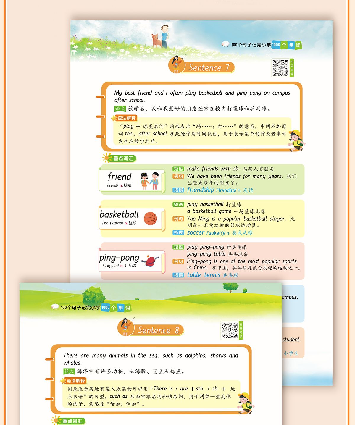 老会员小学生100个句子记完1000个单词1-6年级通用人教版小学必背单词