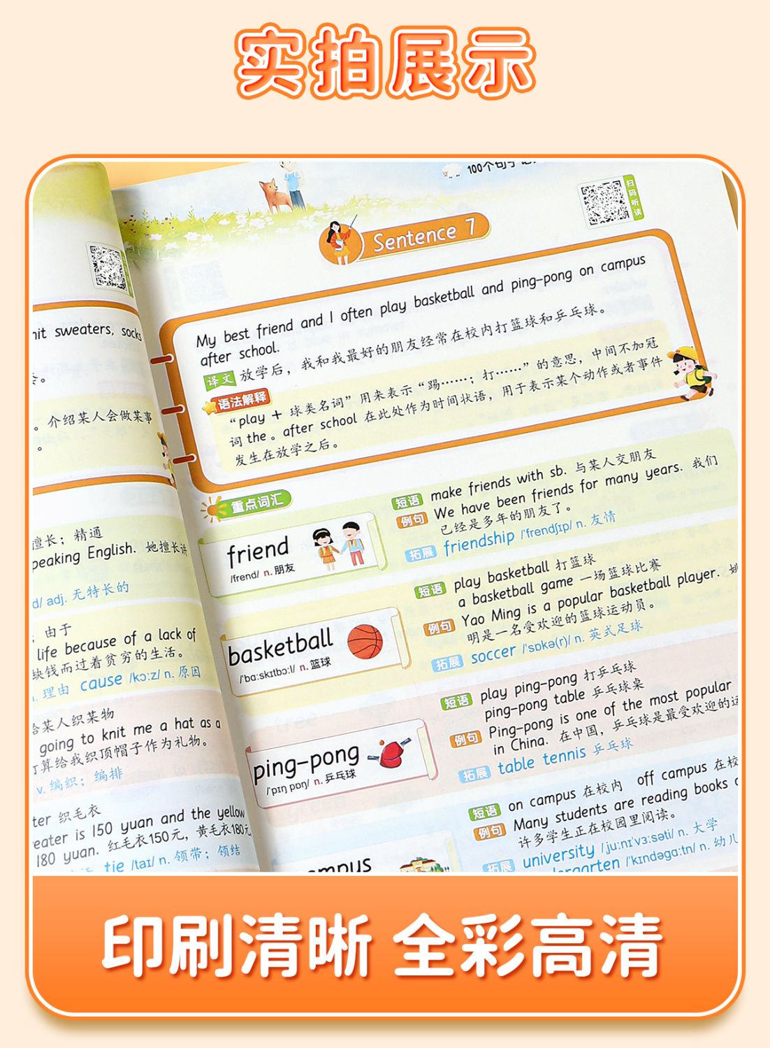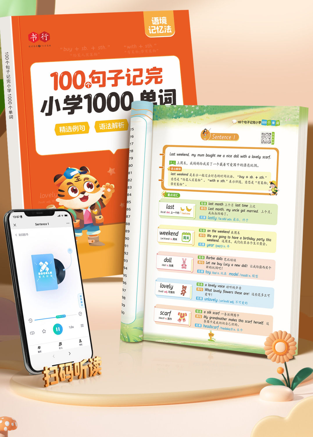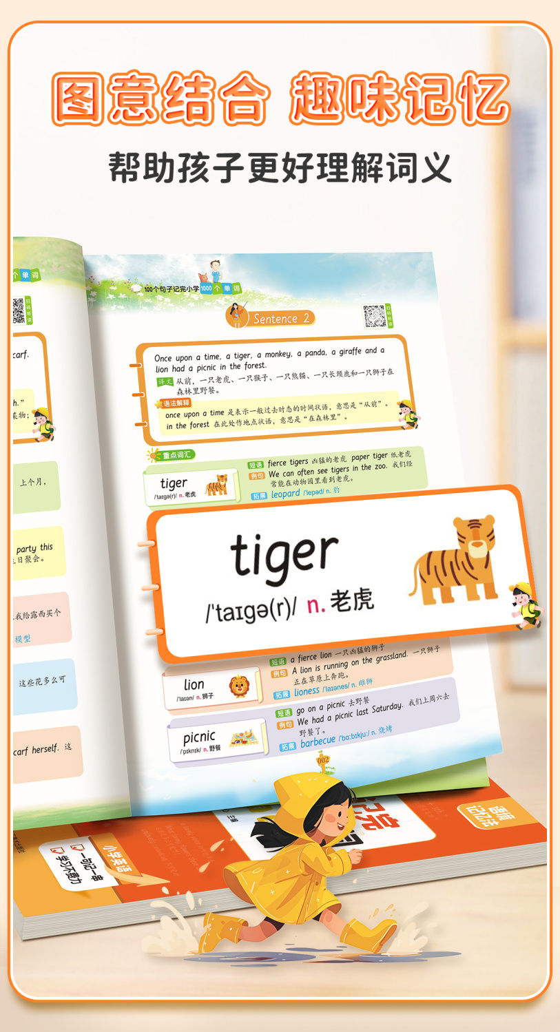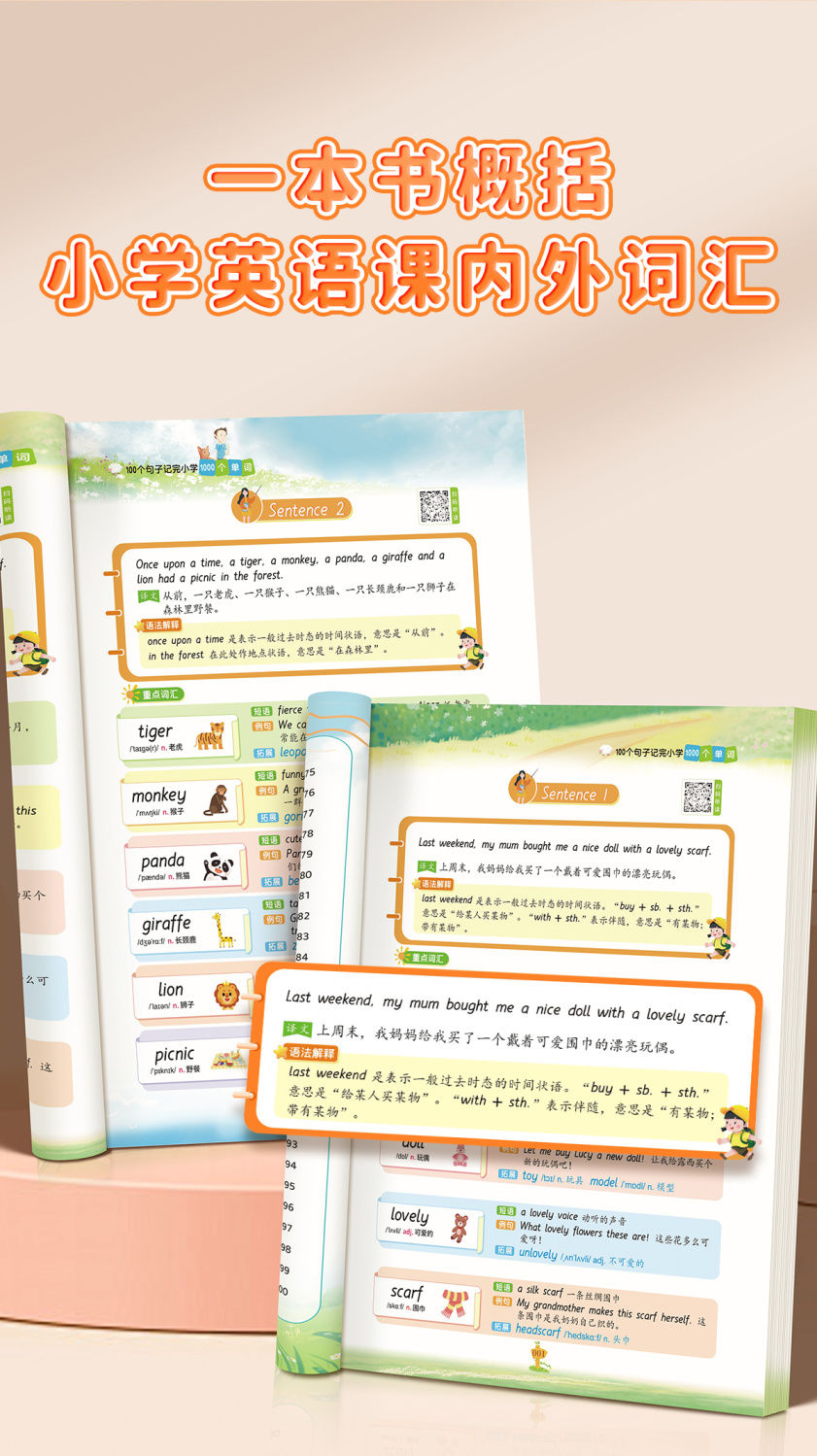 老会员小学生100个句子记完1000个单词1-6年级通用人教版小学必背单词