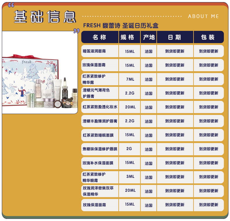 法国 FRESH馥蕾诗 2020圣诞日历礼盒12件套装 限量