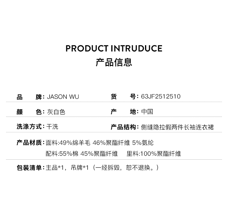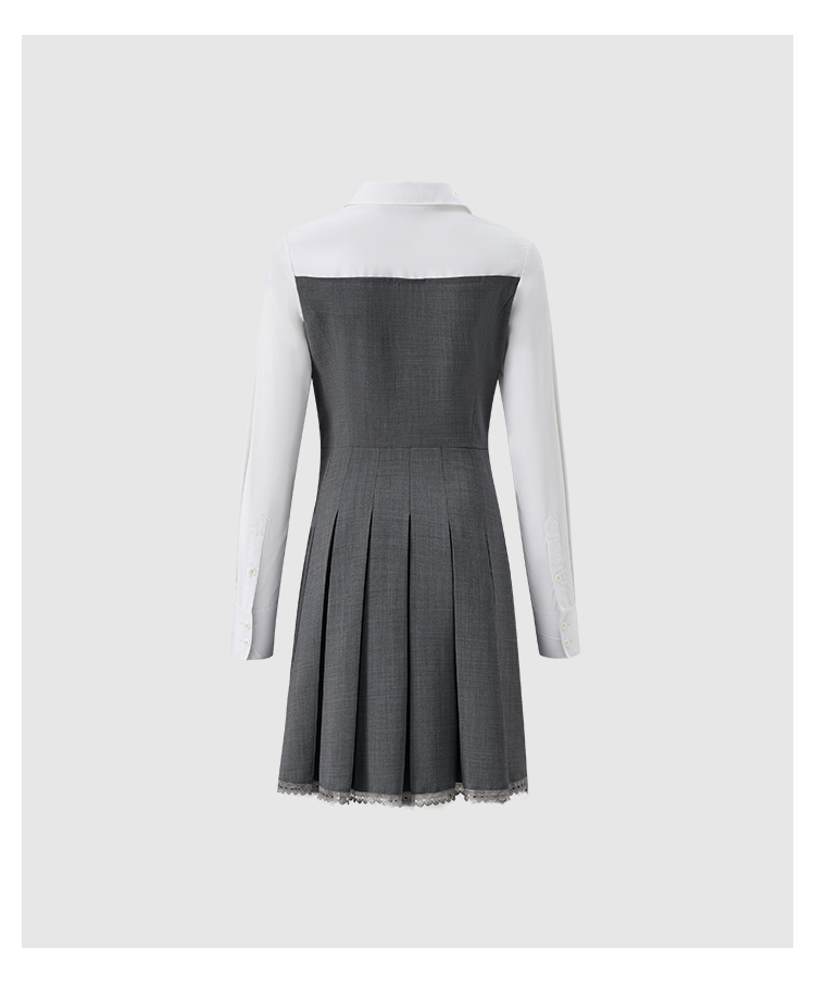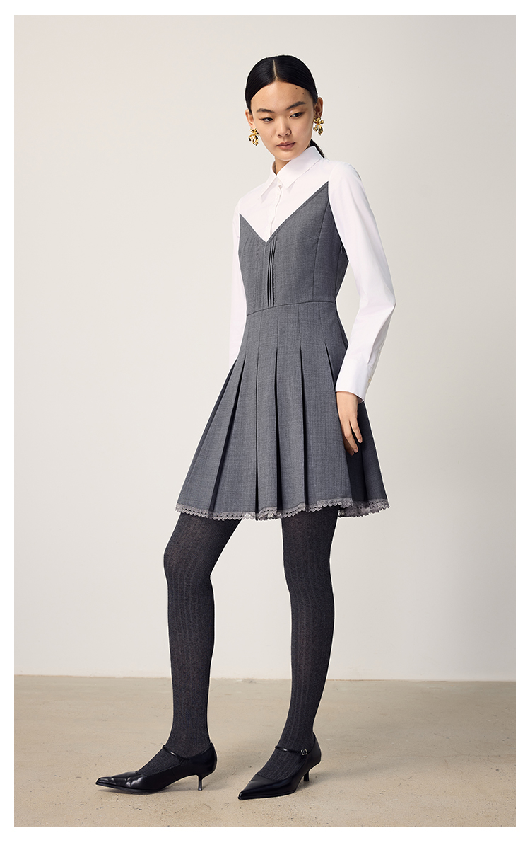 (绵羊毛)【JASON WU】2025秋冬新款设计感时尚假两件衬衫百褶连衣裙