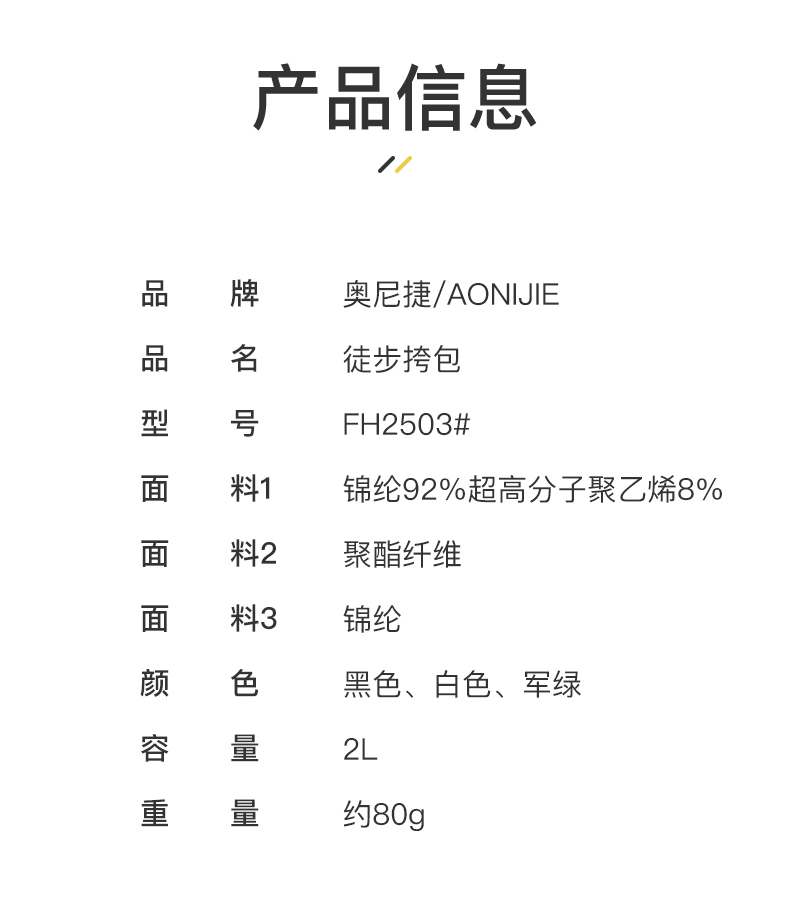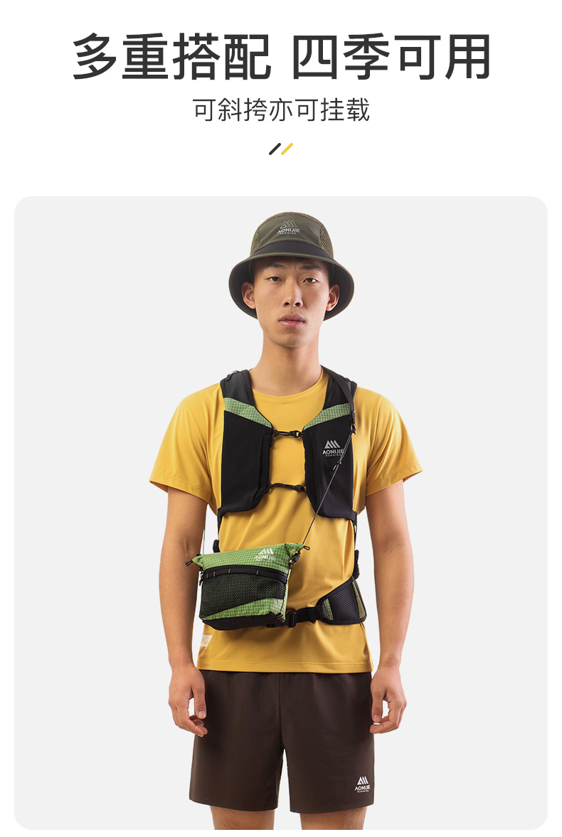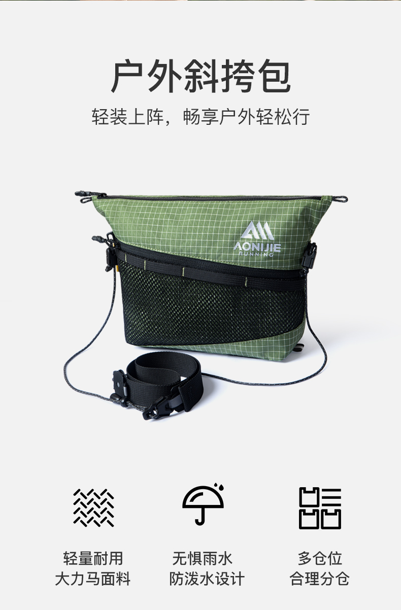 奥尼捷徒步斜挎包时尚百搭款可调节拉绳耐磨防泼水户外徒步挎包配件包FH5203