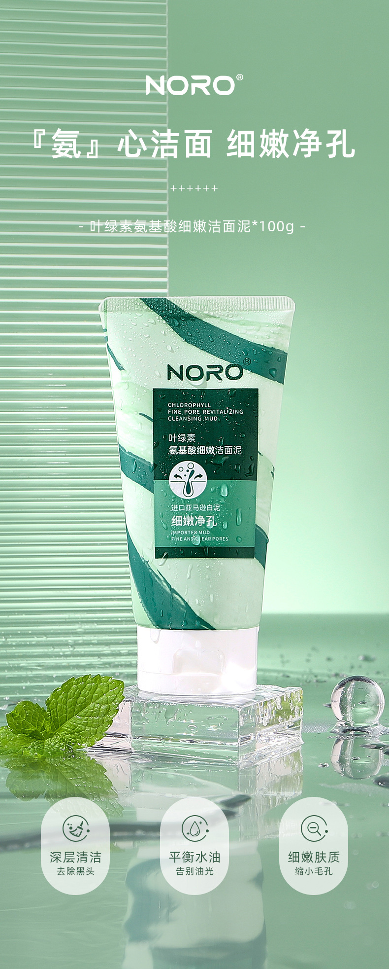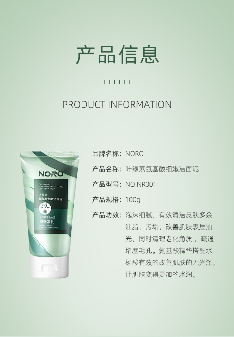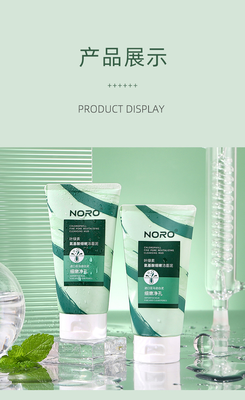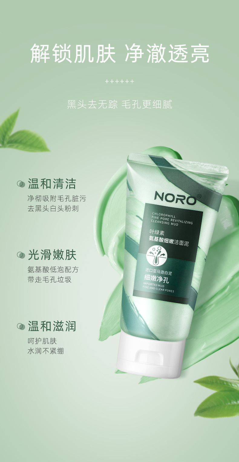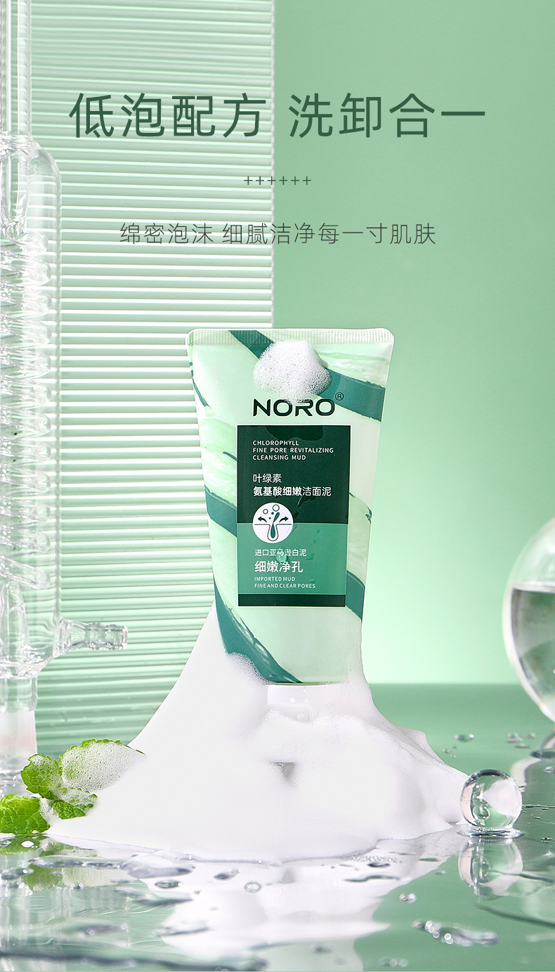 【拍1发2】NORO叶绿素氨基酸洗面奶,缤纷泡沫,轻柔抚面;轻松清洁毛孔,去黑头,保湿控油。如同春日微风般舒爽,让你的脸庞尽显净透!