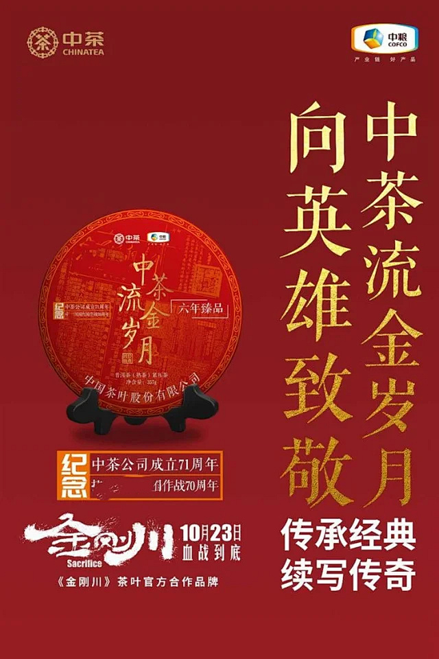 中粮-中茶2020年流金岁月熟茶357克普洱茶熟茶纪念版茶饼紧压茶/干仓直发