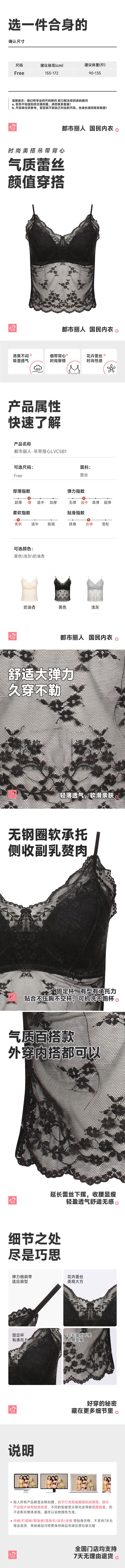 都市丽人背心无罩杯薄蕾丝背心丝质吊带背心有杯垫时尚美搭LVC5B1