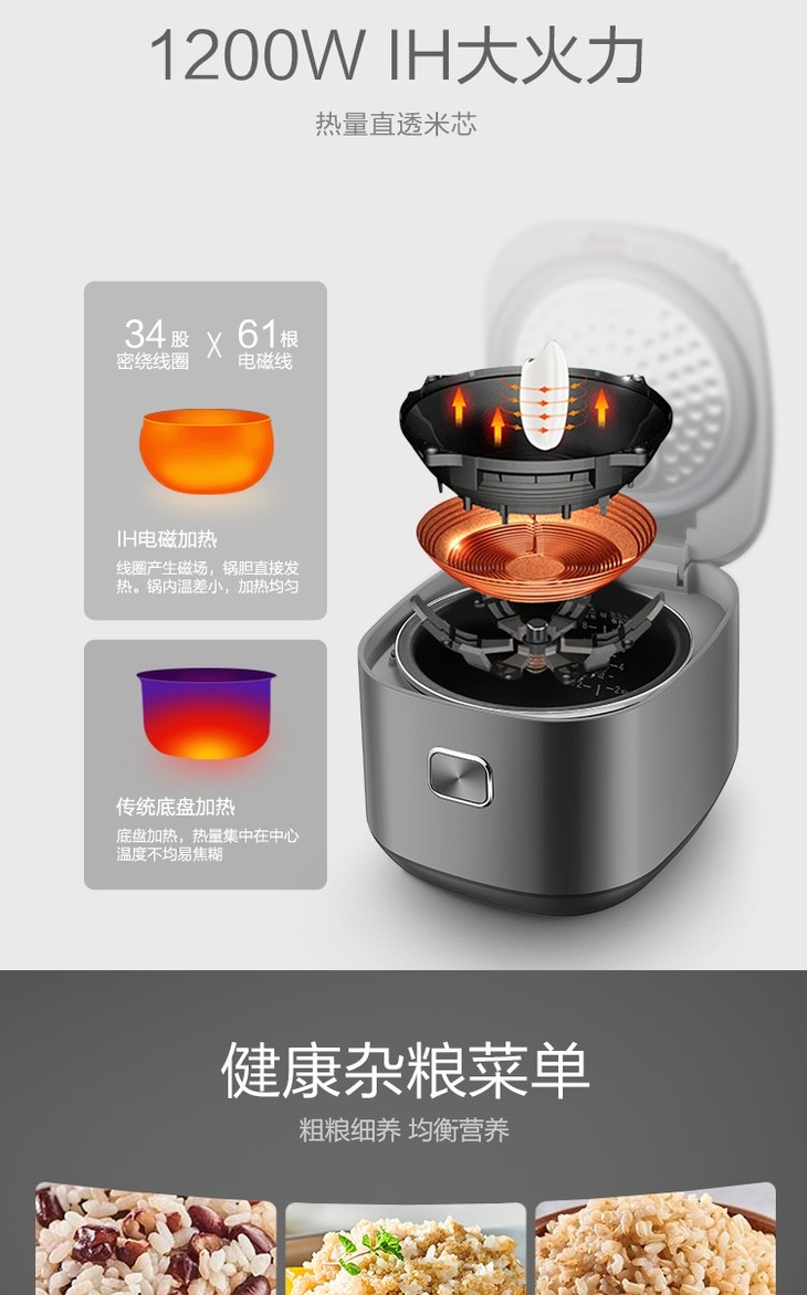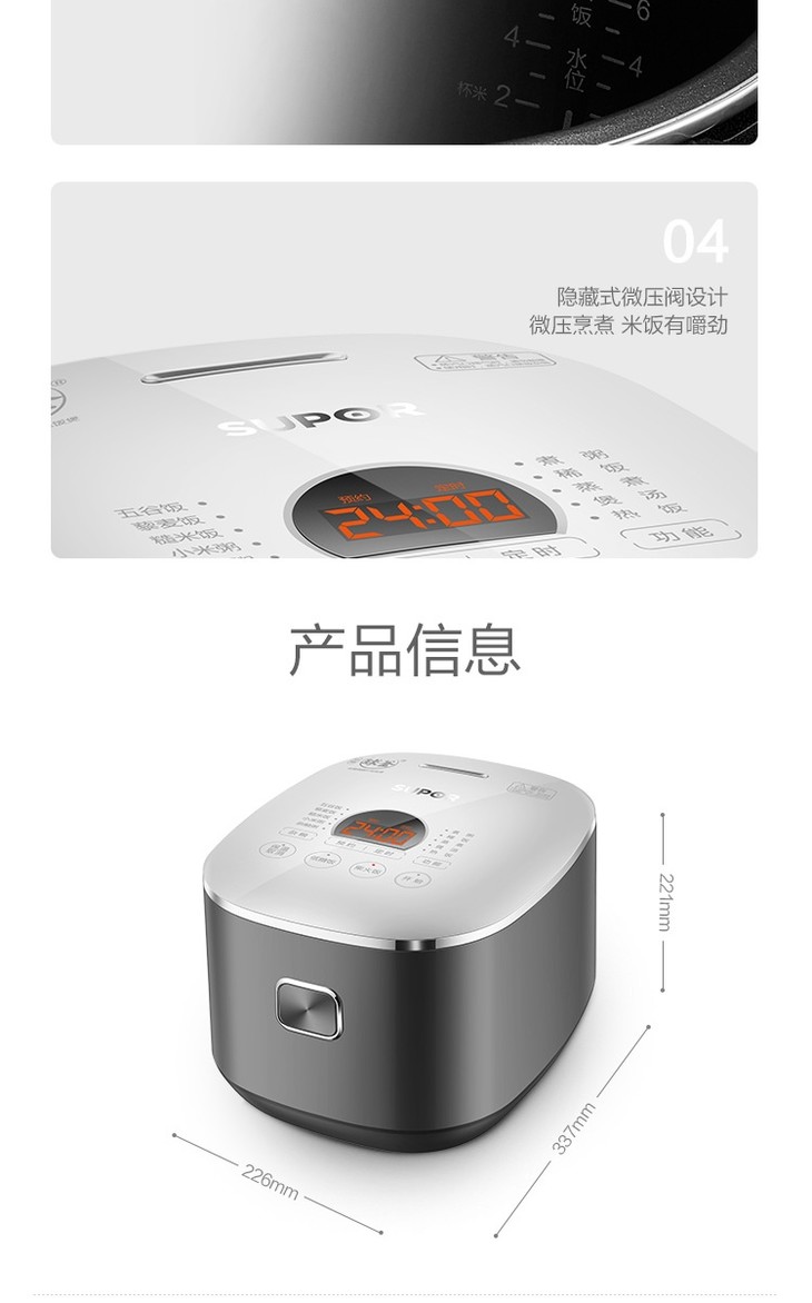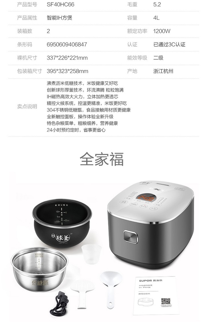 苏泊尔(SUPOR)电饭煲家用4L升多功能球釜内胆预约柴火饭智能电饭锅SF40HC66