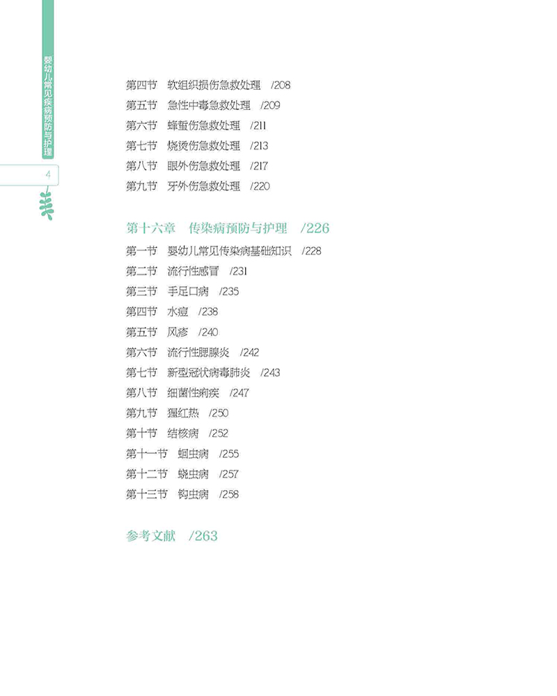 《学前儿童健康观察与护理》为“幼儿发展与健康管理专业系列教材”中的一本。本套教材主要围绕幼儿卫生保健、幼儿体育和幼儿心理健康三个核心主题规划,共12册,由广州大学学前教育系主任叶枝平教授担任丛书主编并搭建专业编写团队。本册简介:主要内容包括1.幼儿常见传染病,(1)幼儿常见传染病概述;⑵幼儿常见传染病流行病学特征;⑶幼儿常见传染病的临床症状;⑷幼儿常见传染病的预防和护理;⑸病毒性传染病;⑹结核病;⑺真菌性传染病;⑻立克次体病和螺旋体病。2.幼儿常见疾病:⑴幼儿常见疾病概述;⑵新生儿疾病;⑶营养和营养障碍性疾病;⑷发育与行为障碍性疾病;⑸遗传性疾病;⑹免疫性疾病;⑺感染性疾病;⑻消化系统疾病;⑼呼吸系统疾病;⑽心血管系统疾病;⑾泌尿系统疾病;⑿造血系统疾病;⒀神经肌肉系统疾病;⒁内分泌疾病;⒂皮肤疾病;⒃口腔疾病;⒄眼科疾病。本书特色:1.紧贴现代幼儿疾病的流行病学特征,筛选幼儿常见传染病及常见疾病;2.既能深入浅出,又能融合国内外最新的预防和护理理念;3.症状特点既有专业厚度,又具有直观性,易于掌握和理解;4.预防和护理措施的可操作性强;5.以融媒体形式,兼具纸质教材、教学大纲、课件、教案、试题库、相关音视频或者微课资源等模式,易于学习和掌握。