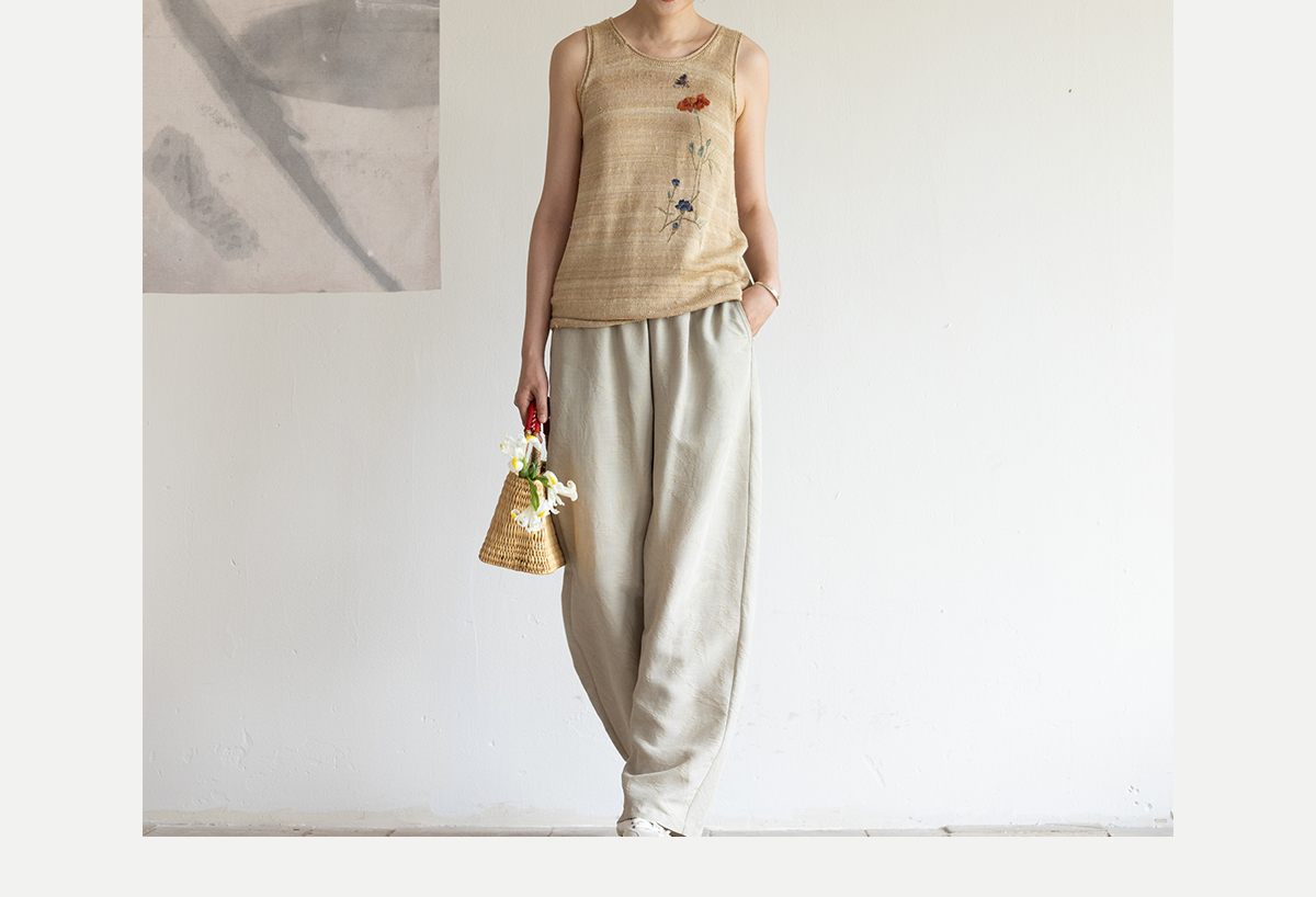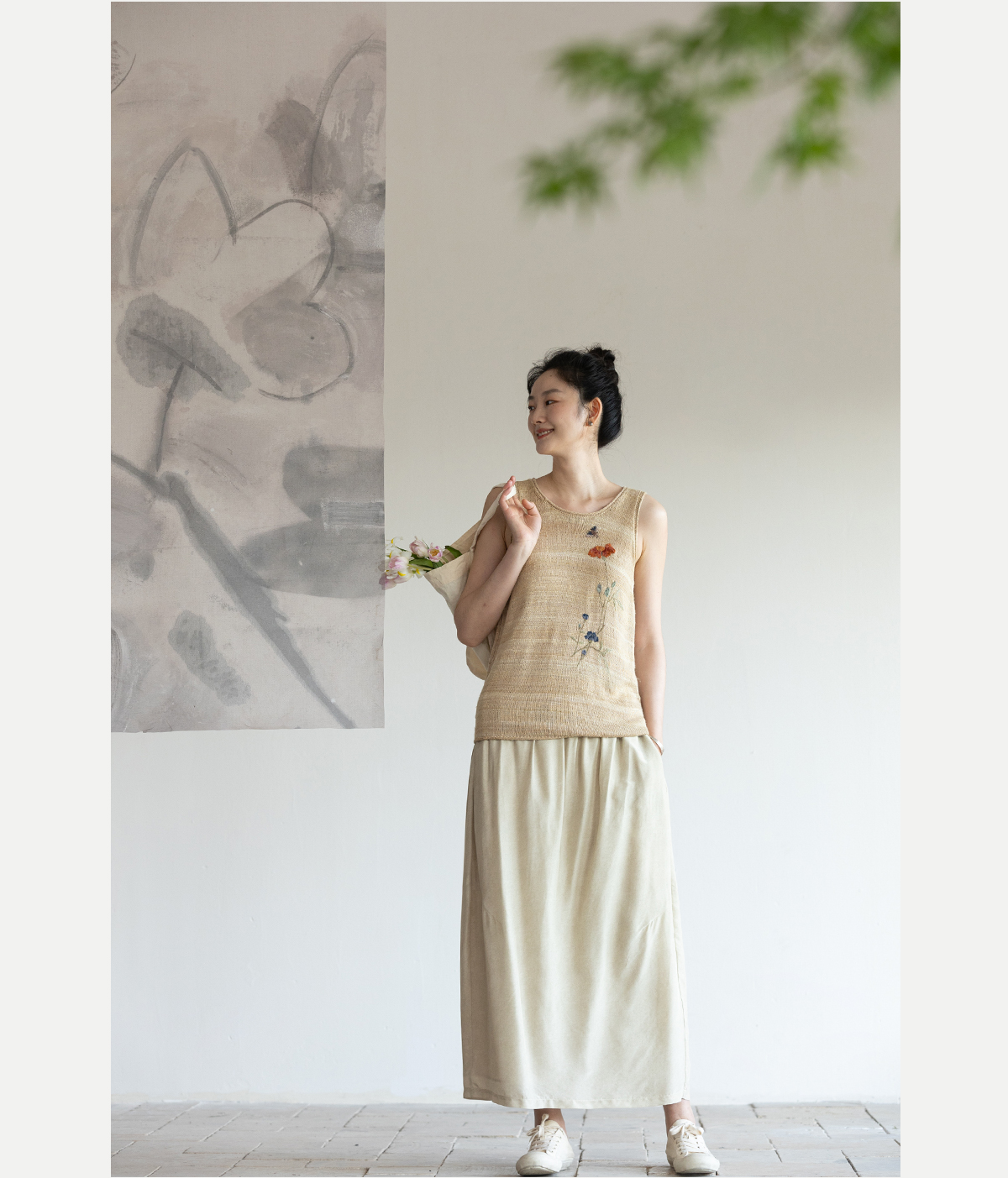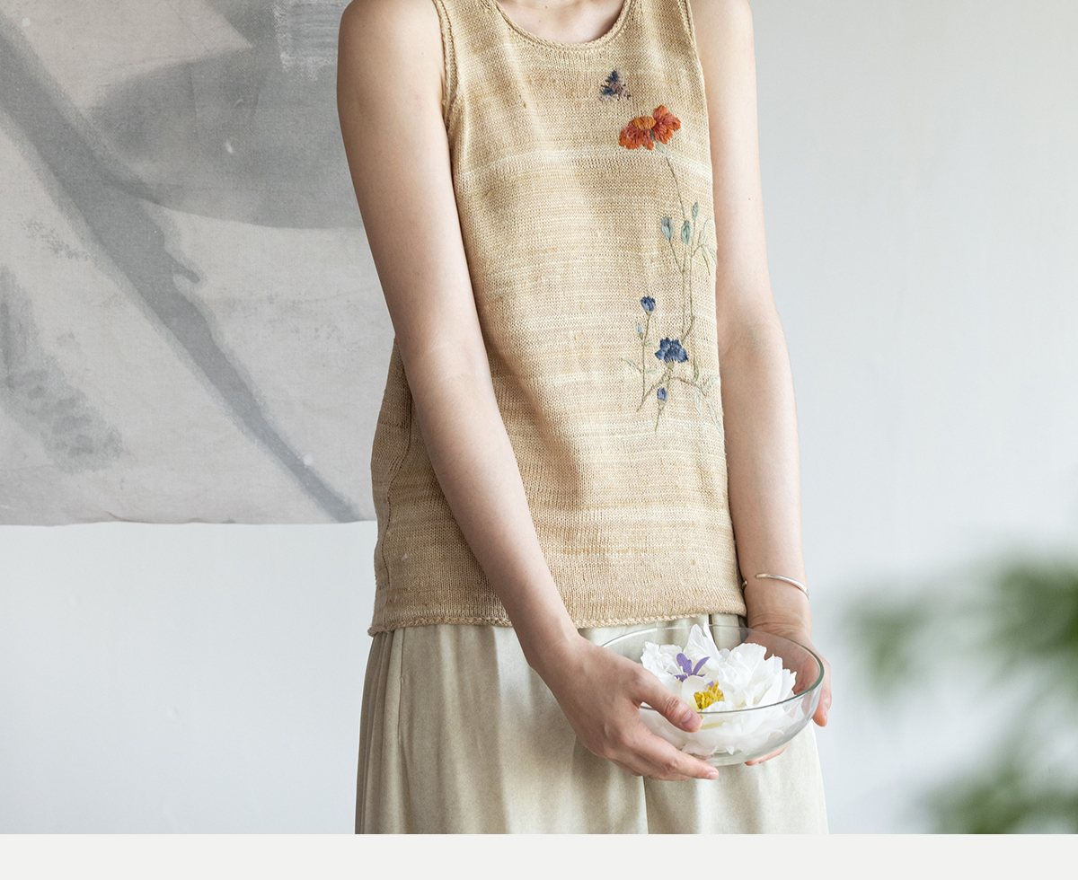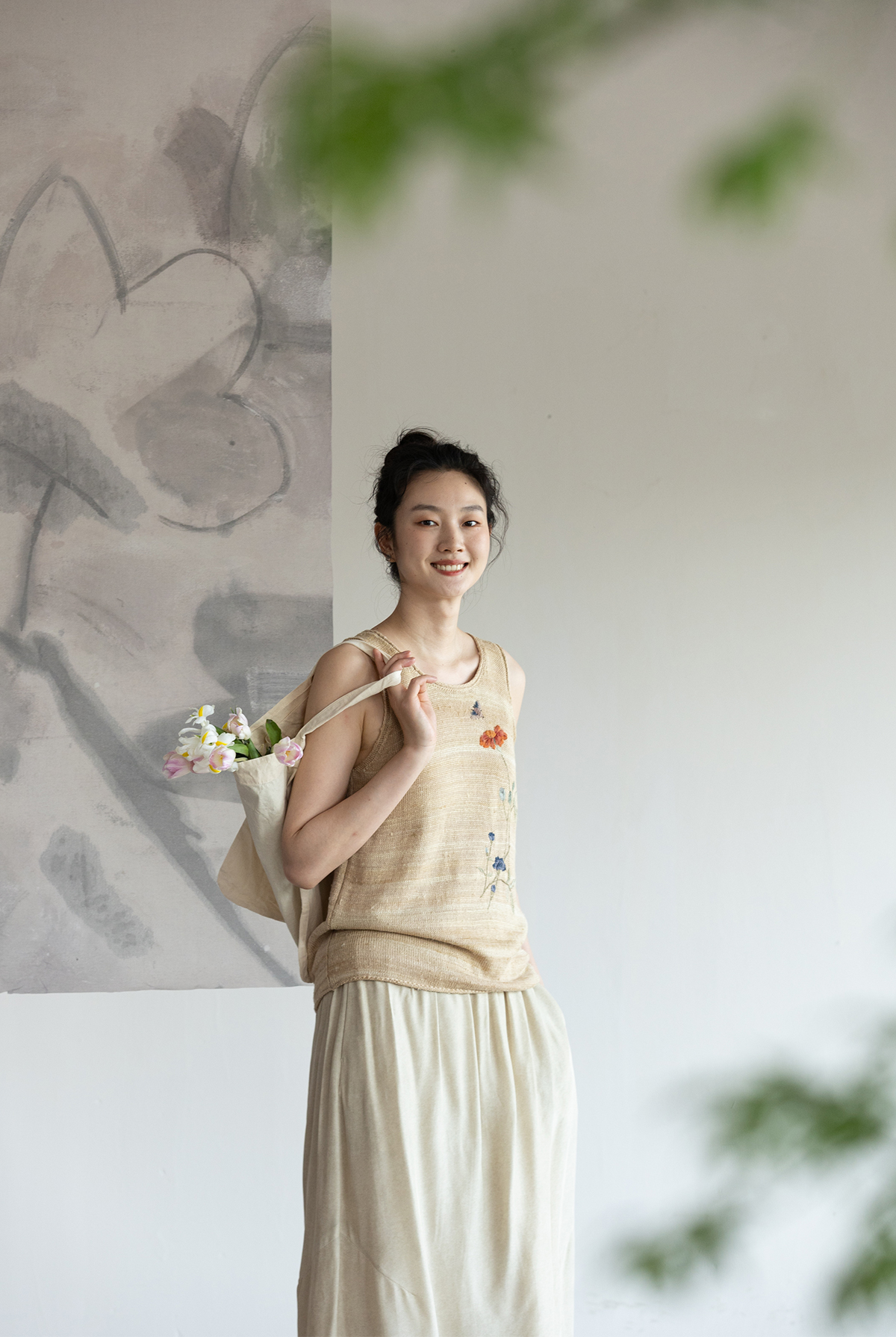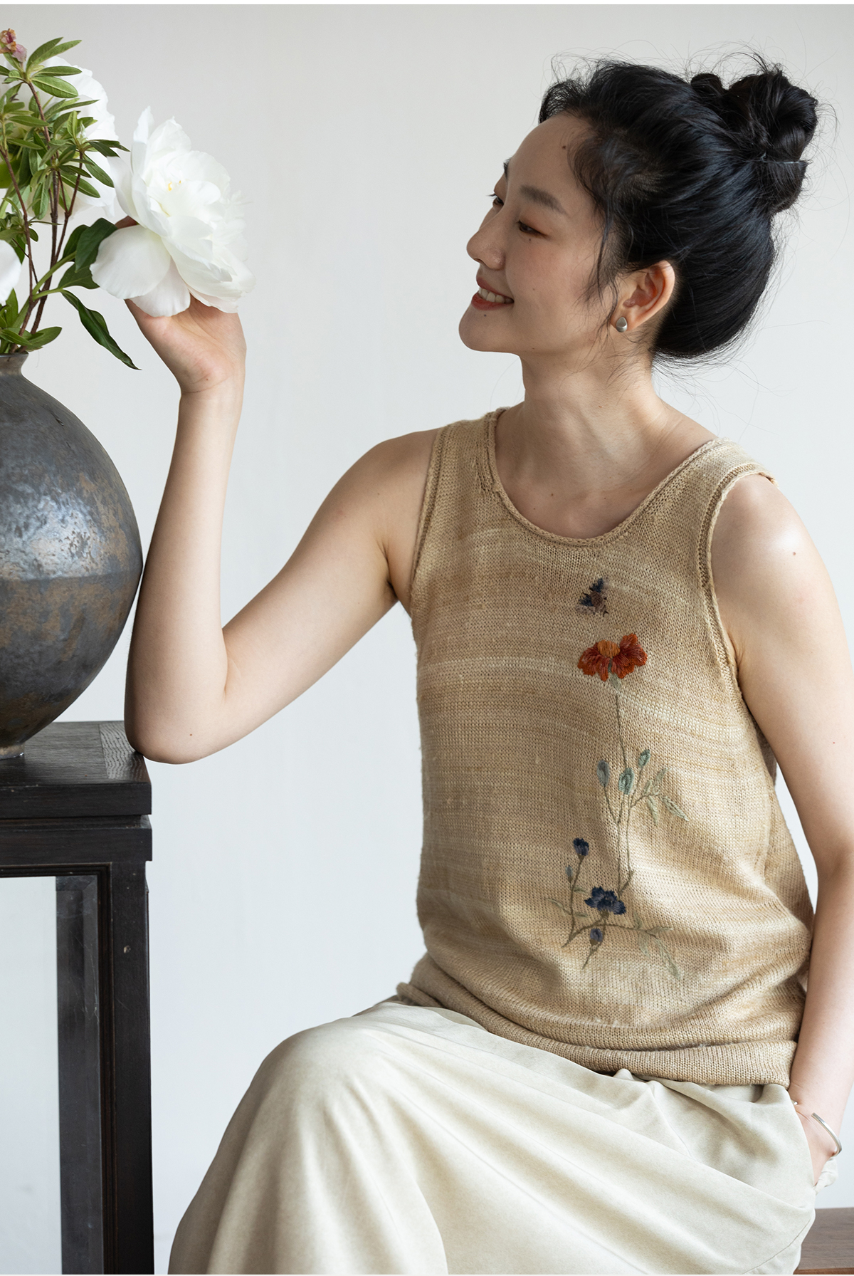 牧衣游原创 柞蚕丝手工刺绣混织毛织马夹圆领质朴百搭背心 梧桐栖