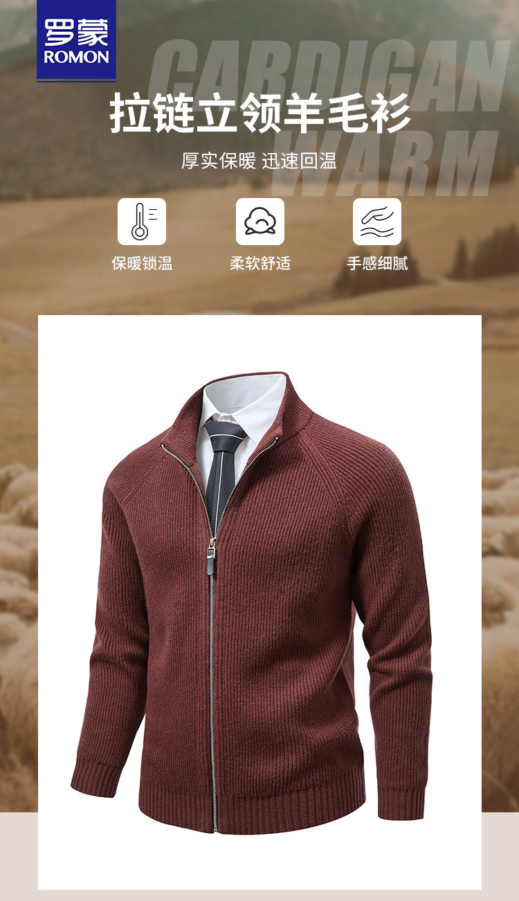 【马鞍肩】罗蒙羊毛衫男100羊毛外套男秋冬加厚保暖男士羊毛衫