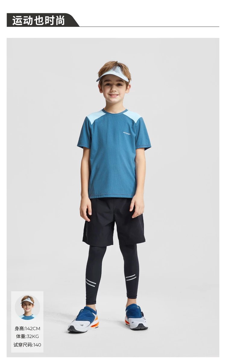 【24年夏新品】【24年夏新品】moodytiger男童假两件长裤春秋新款打底裤柔软弹力运动裤| 小云朵 M02111501【Y】