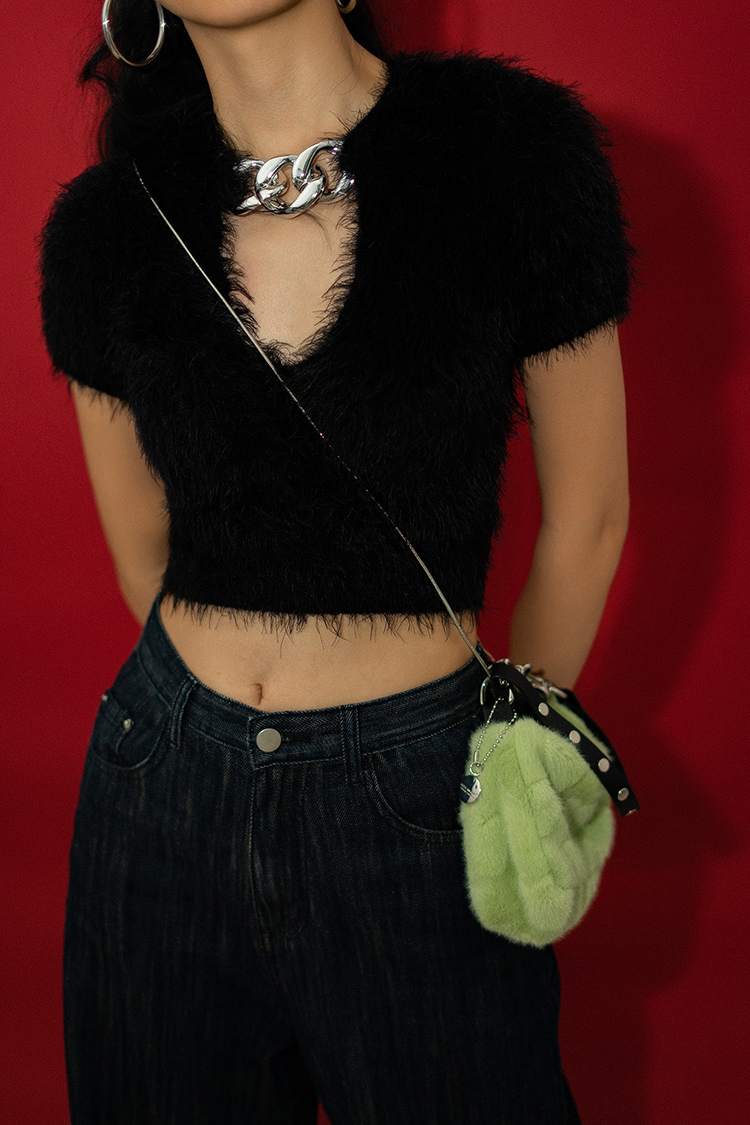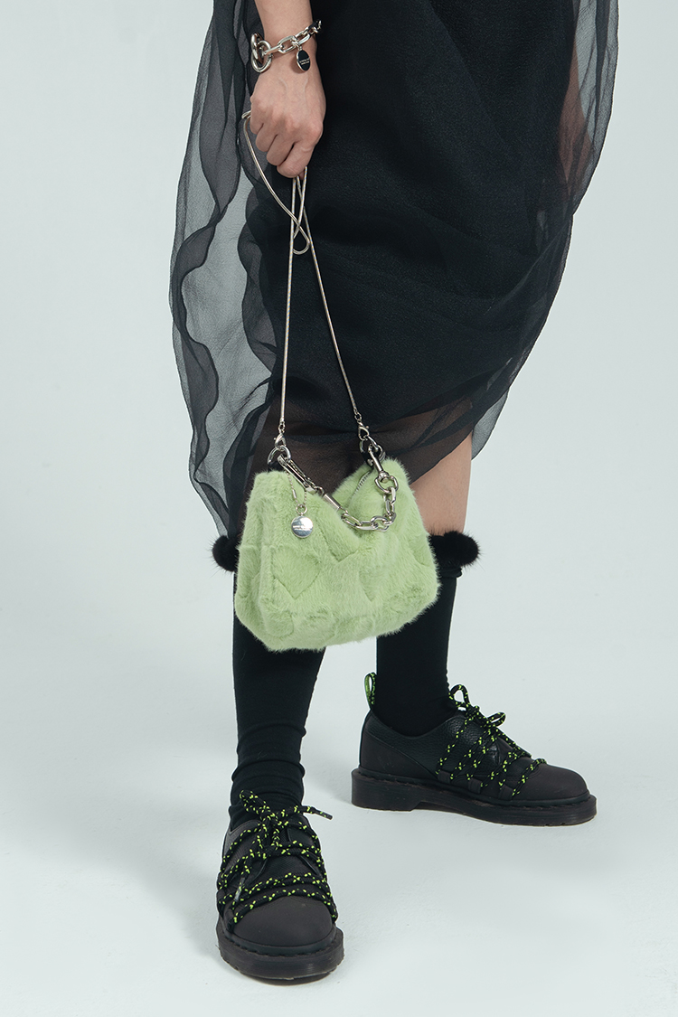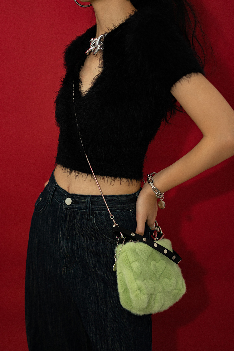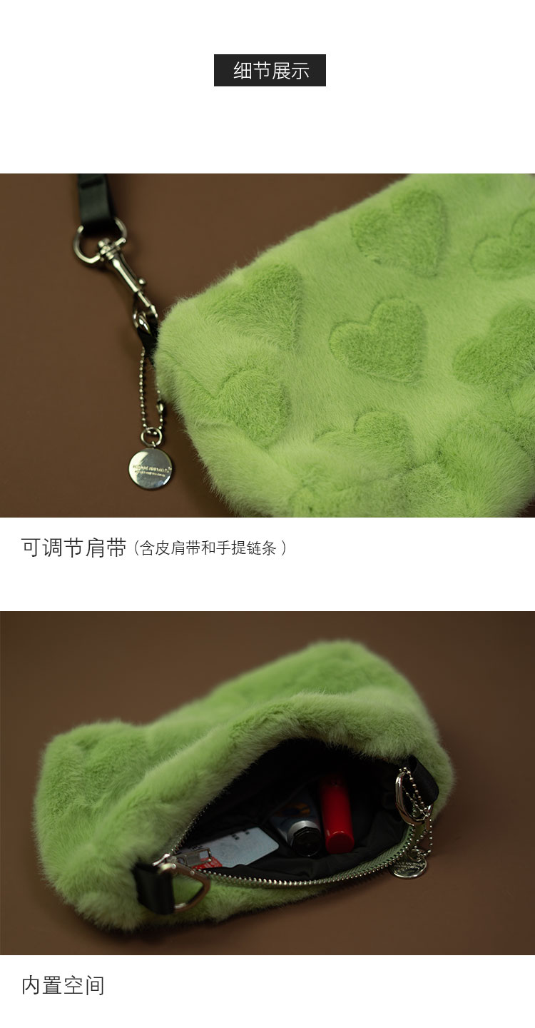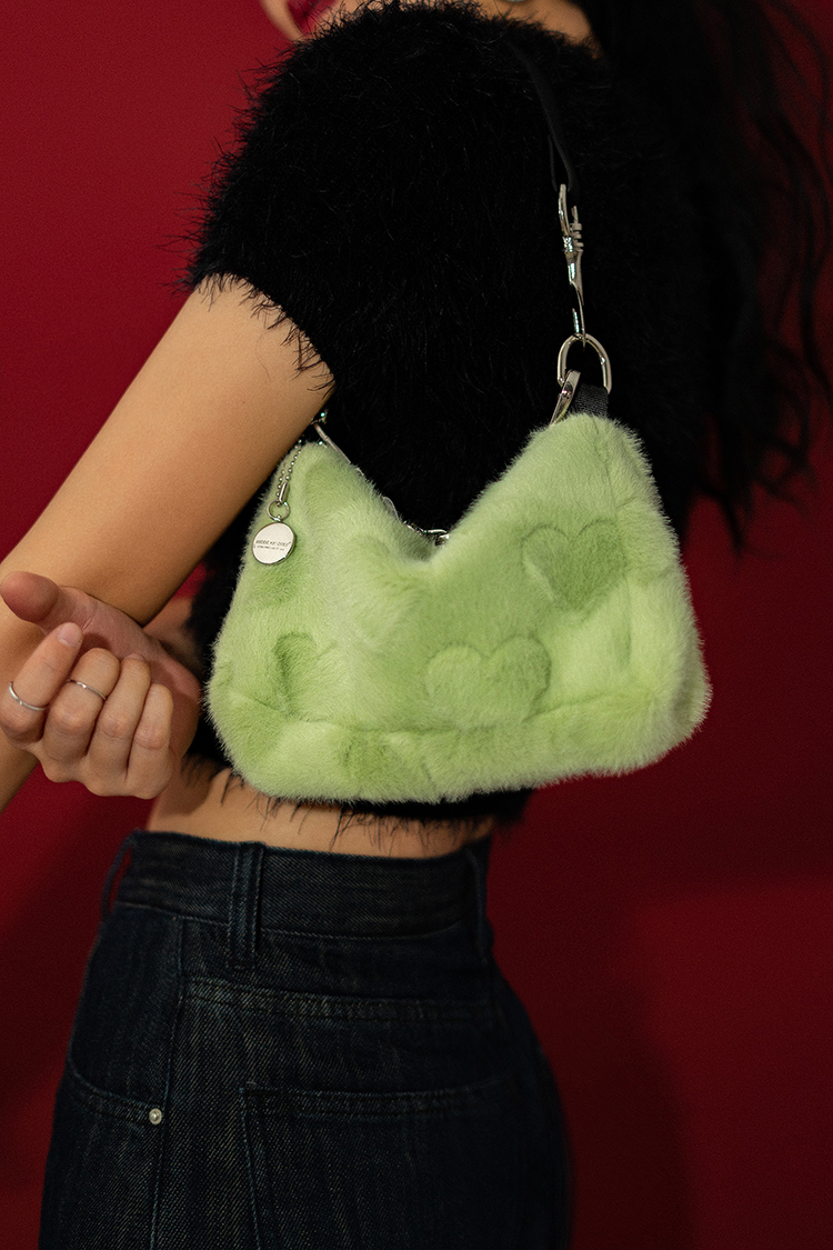 〖HIDDENNOTES〗Y2K千禧辣妹手提腋下包薄荷绿平价毛绒爱心手机包