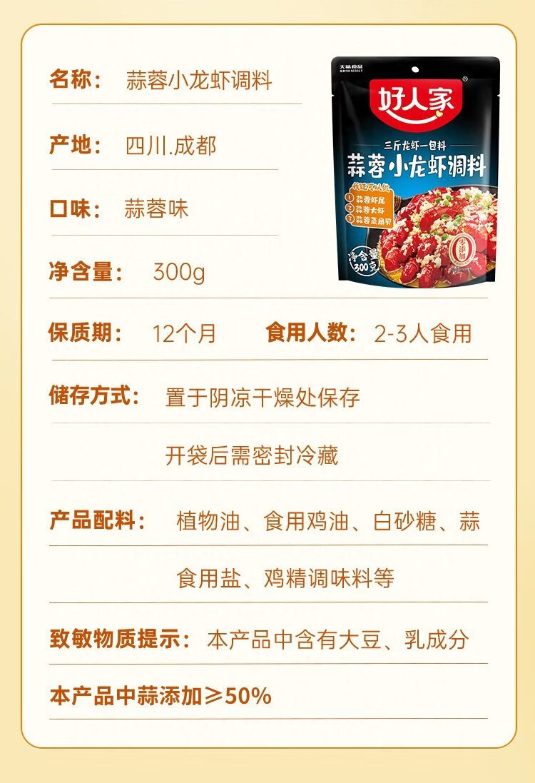 好人家蒜蓉小龙虾调料300g