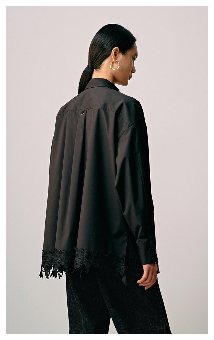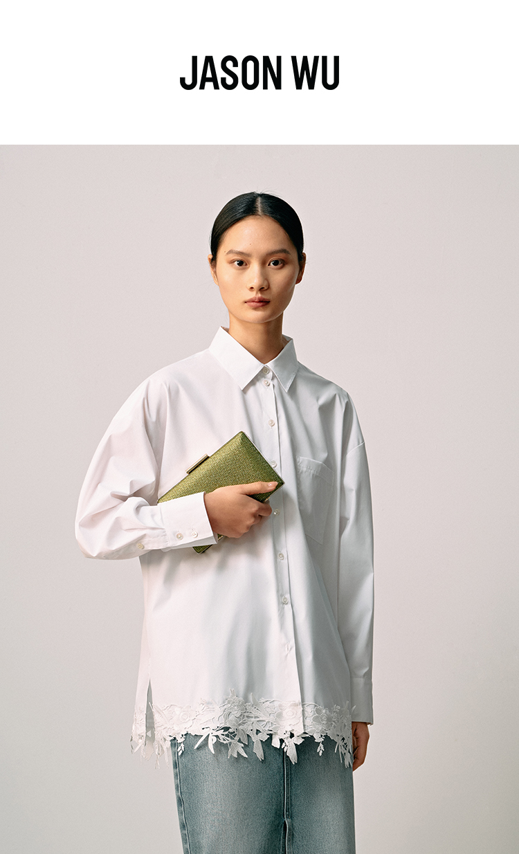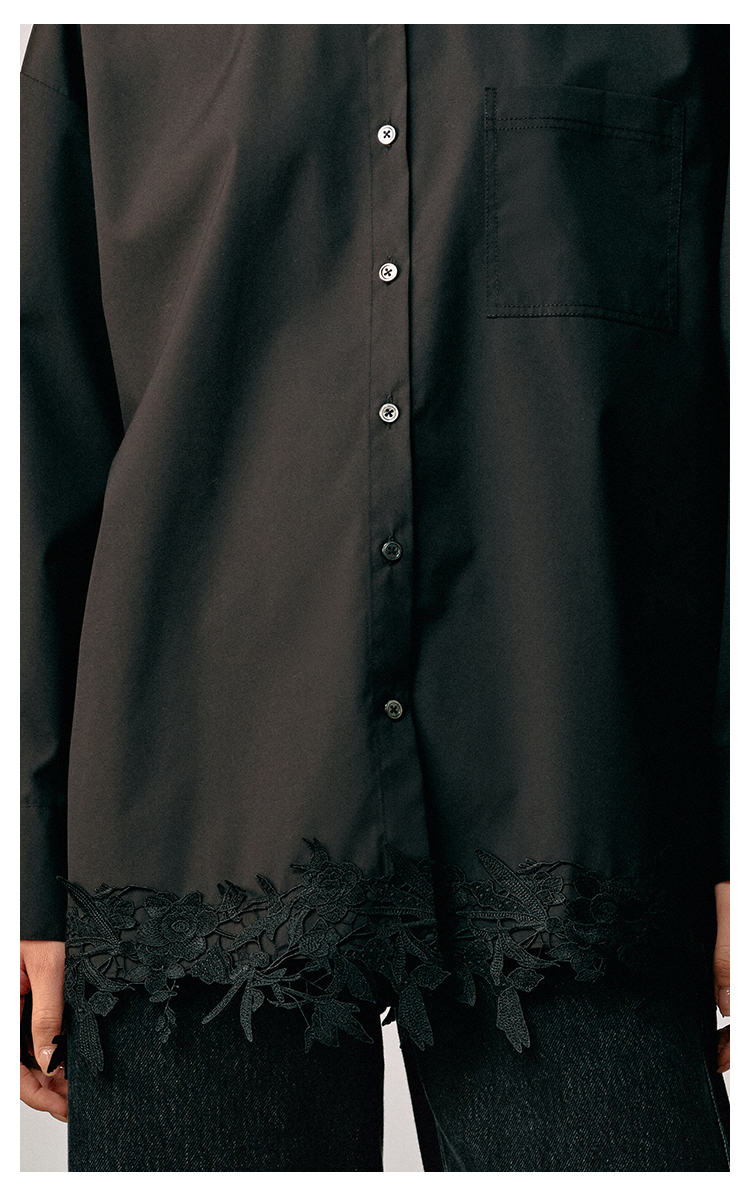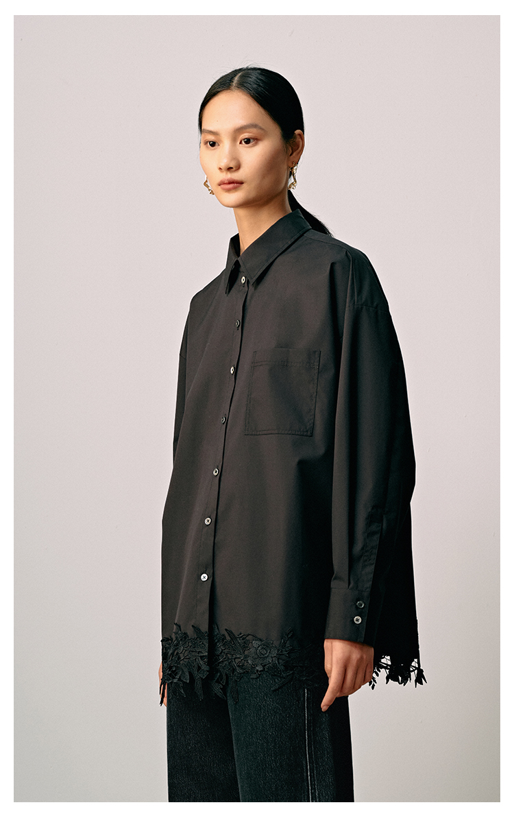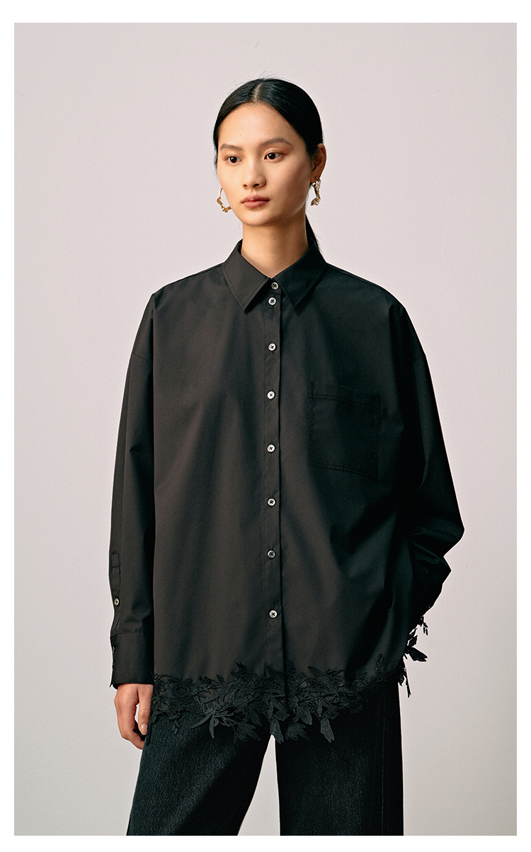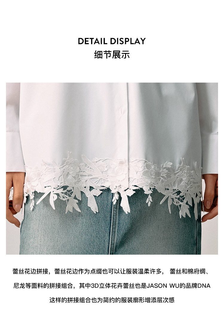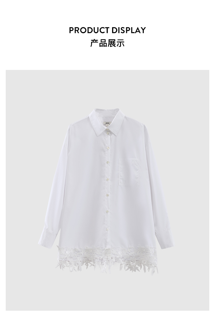 【JASON WU】秋冬新款简约百搭通勤蕾丝拼接宽松休闲上衣衬衣衬衫女