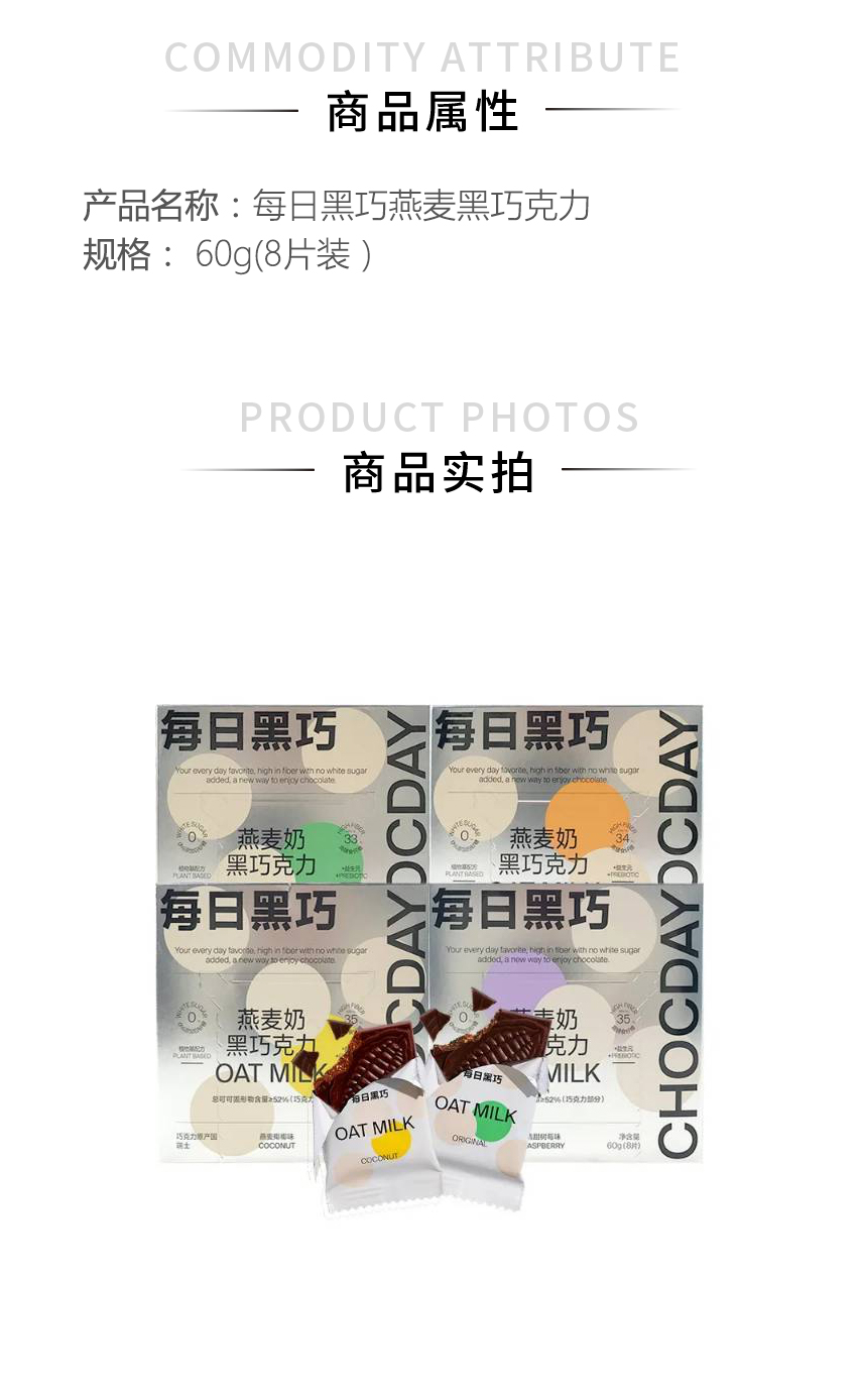 【3.23】每日黑巧燕麦黑巧克力 60g(8片装)随机三盒不同味道(需要指定请标注限2023年9月-10月)
