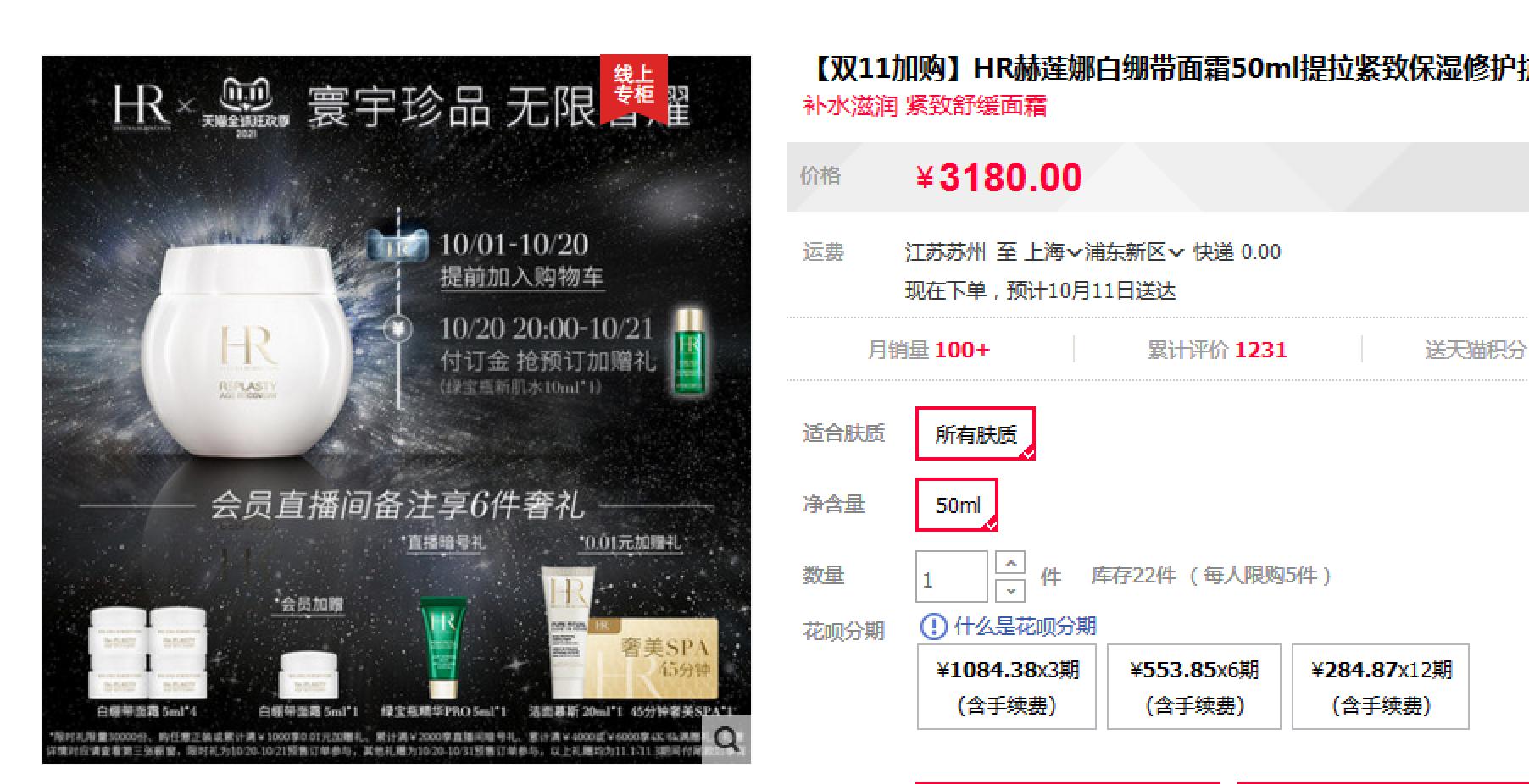 【11.24王炸割肉价】HR白绷带面霜5ml 26.1月
