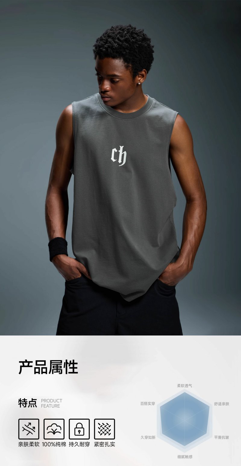 CHINISM赤尘 CH黑色运动健身背心男夏季无袖t恤男士篮球坎肩上衣