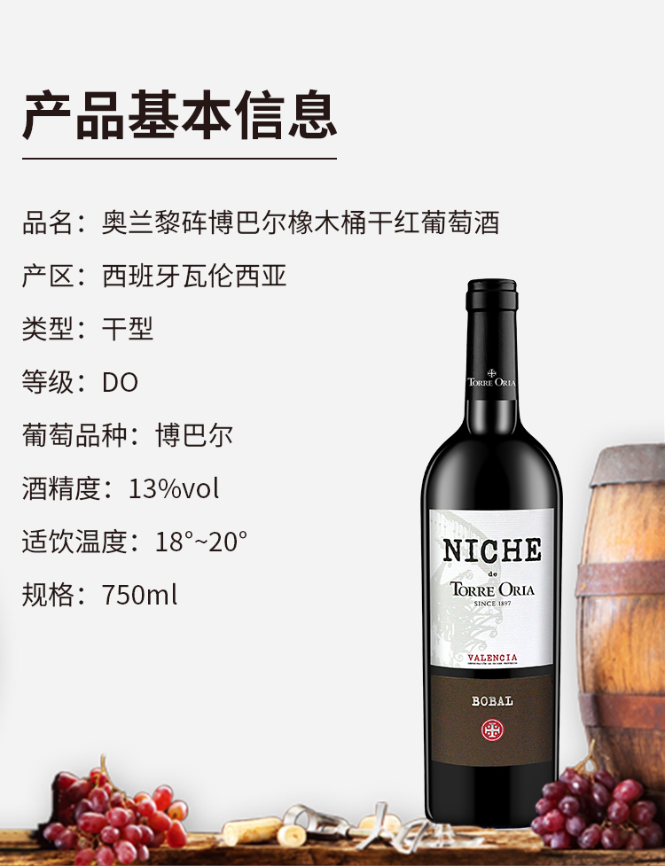 西班牙进口 奥兰小红帽6个月橡木桶陈酿干红葡萄酒 13度750ml*6 果香浓郁