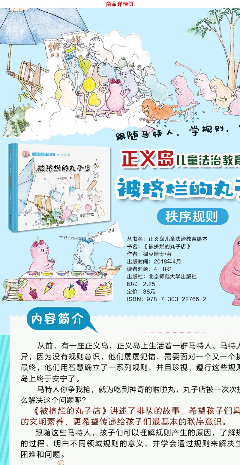 【7-10岁精装】被挤烂的丸子店 9787303227662 作者:律豆博士 正义岛儿童法治教育绘本 北京师范大学出版社