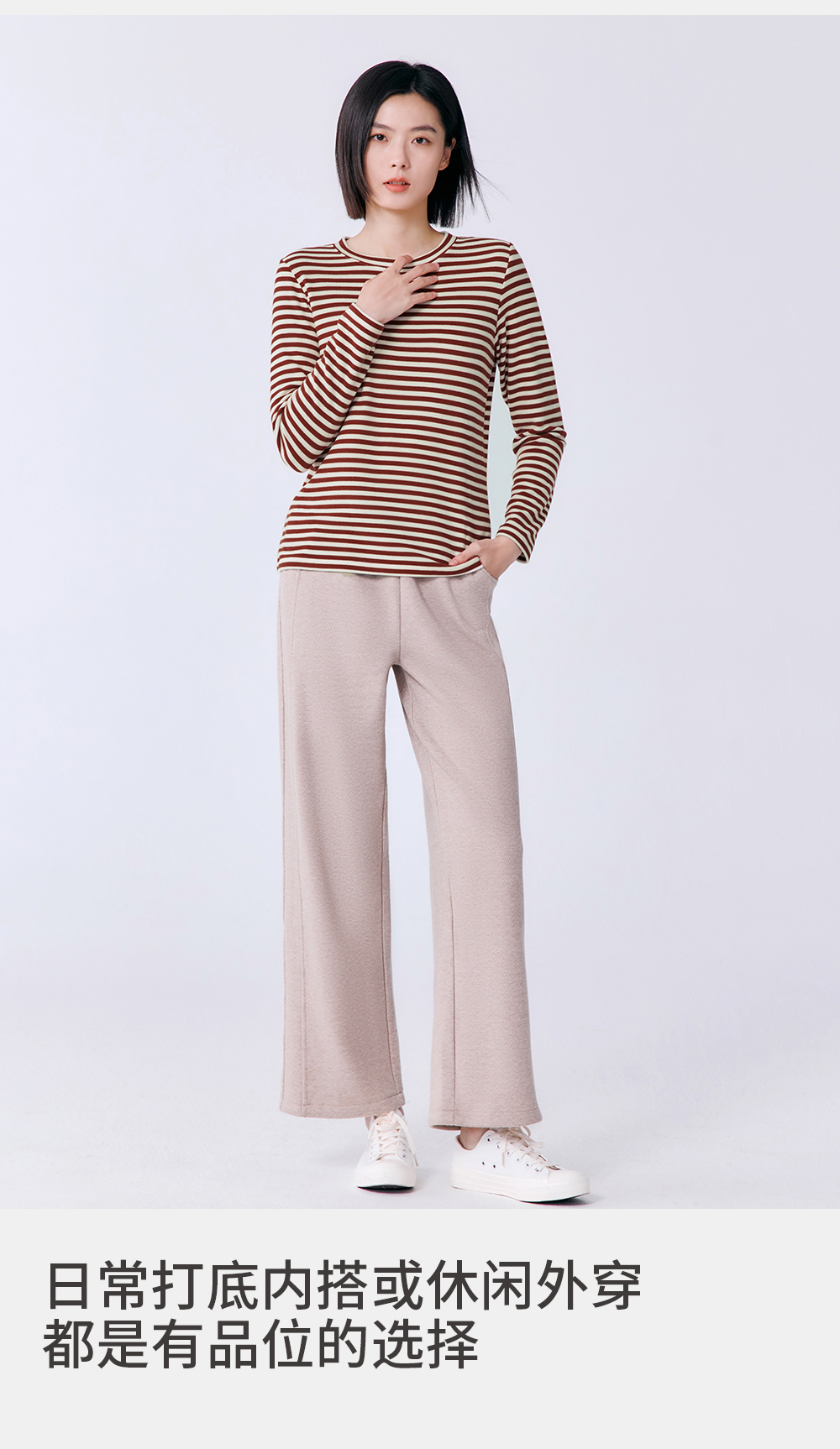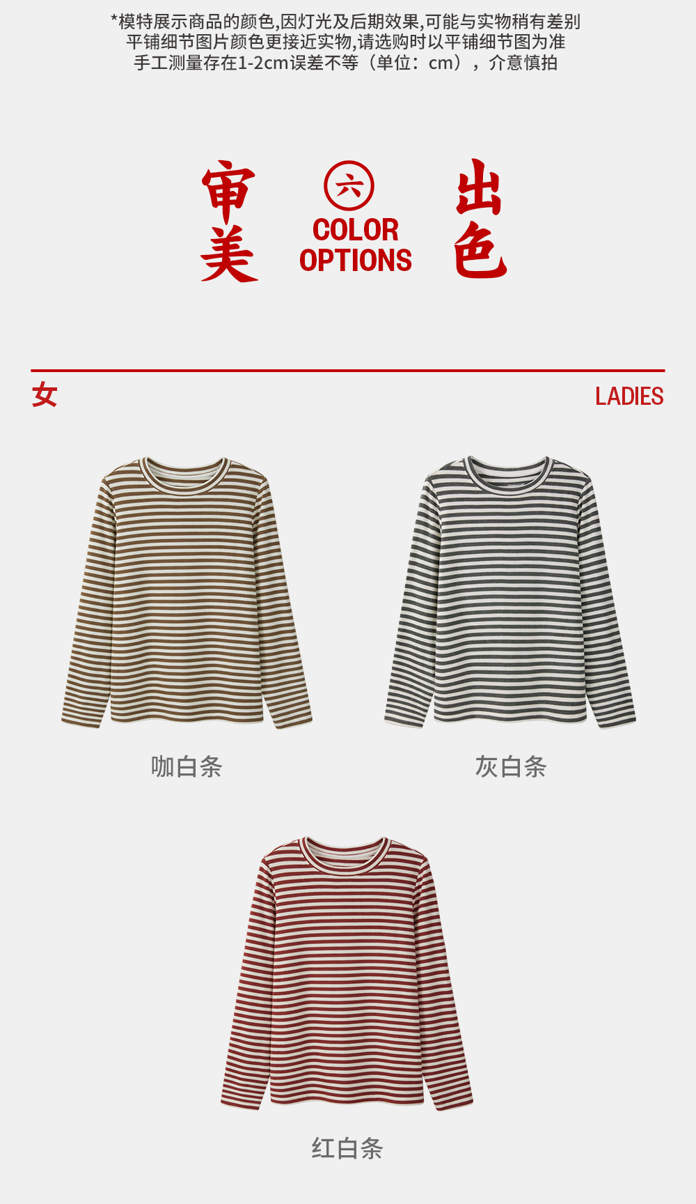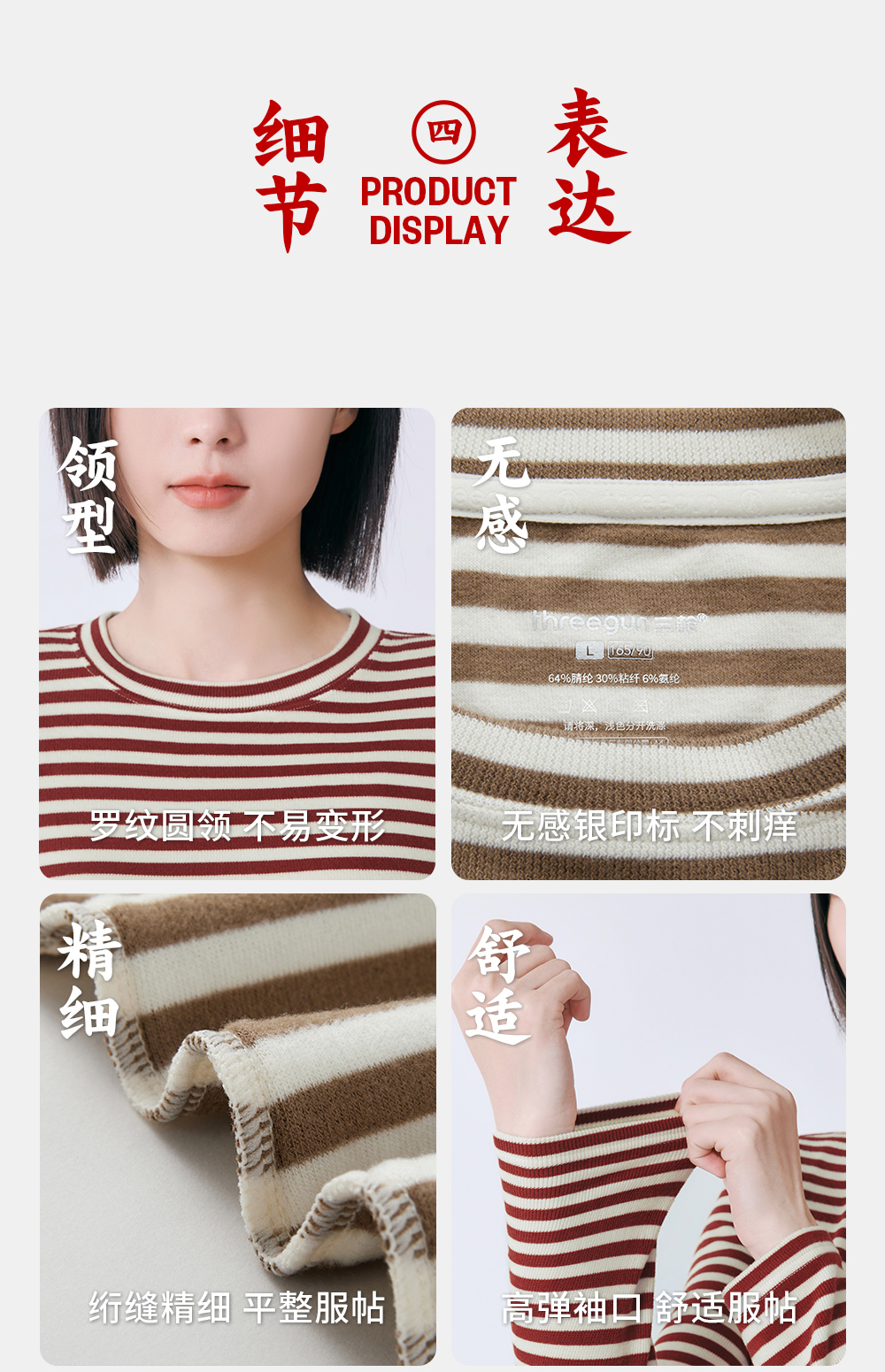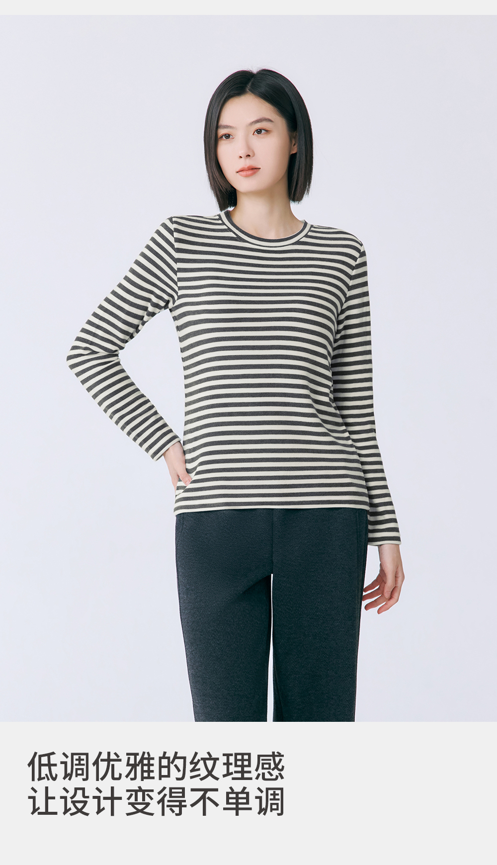 Threegun三枪 雪绒花彩条圆领女衫-T20081A01