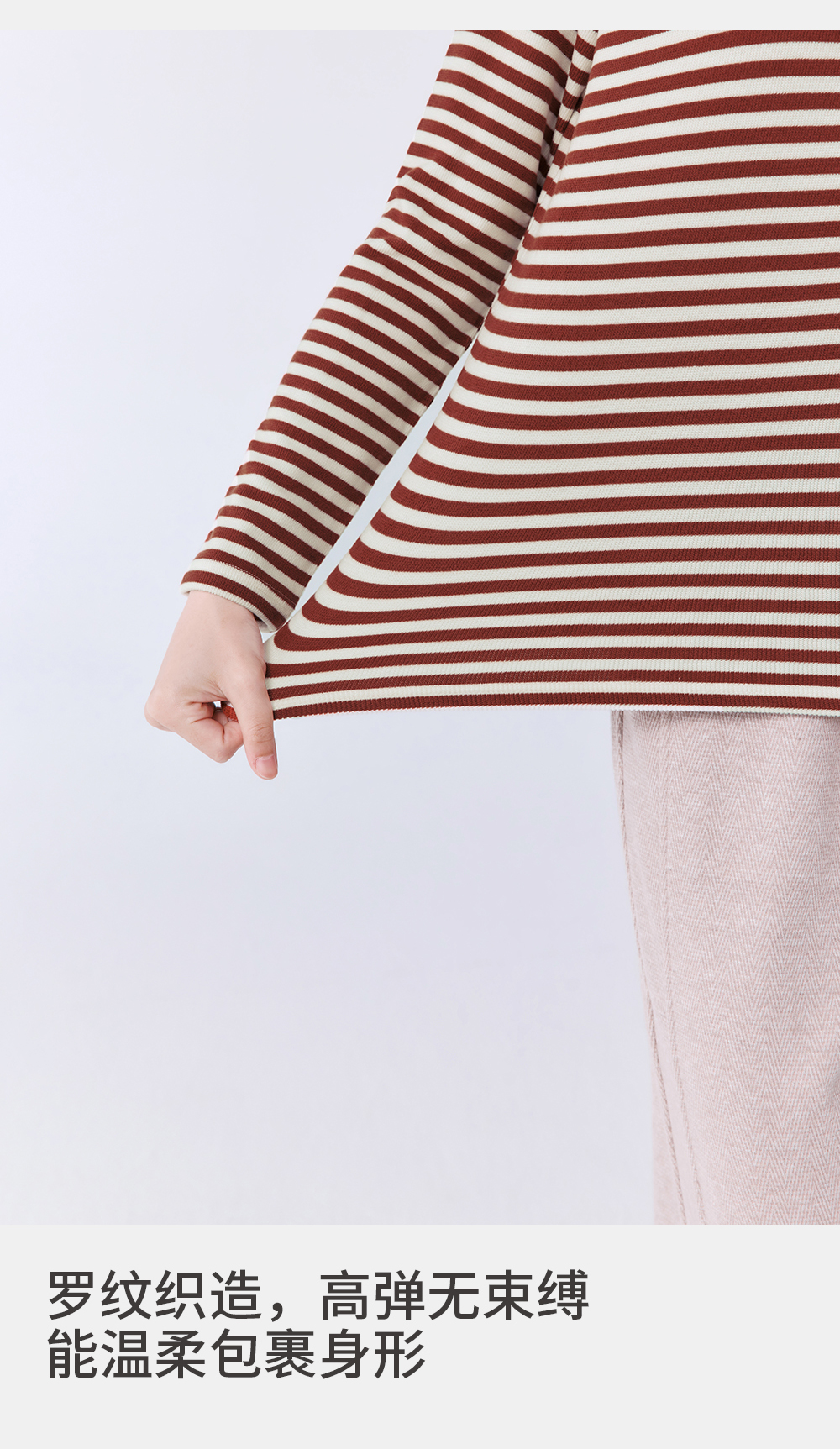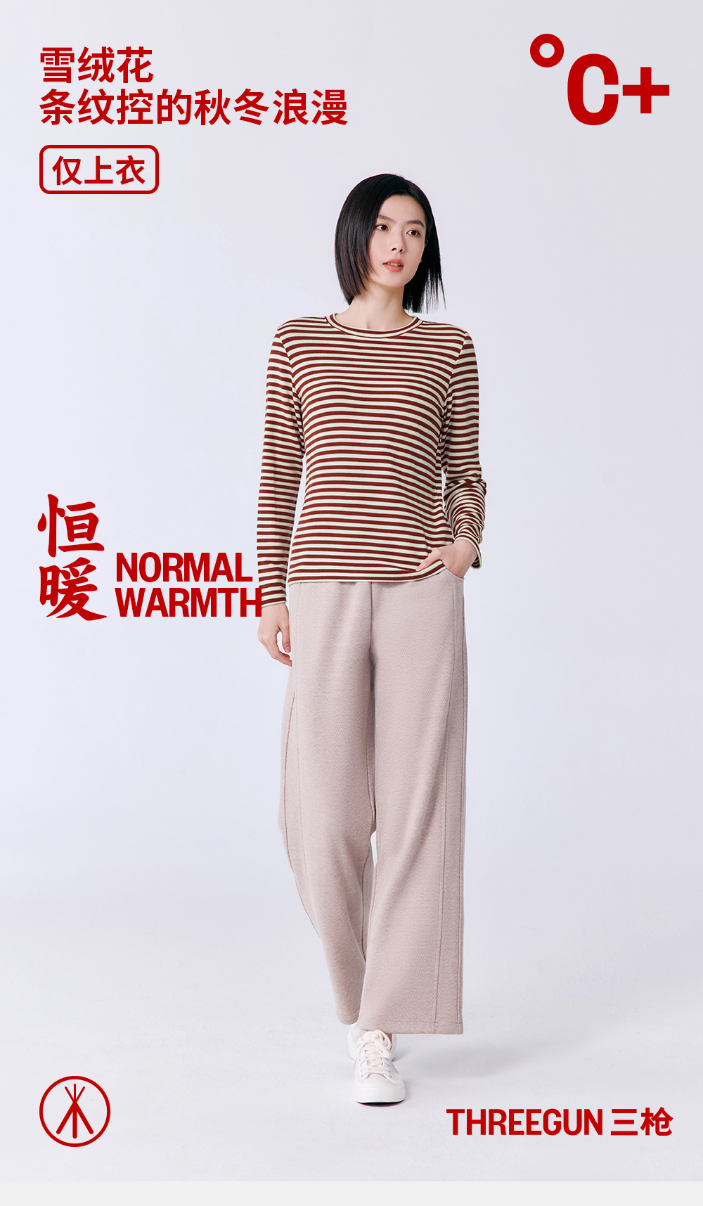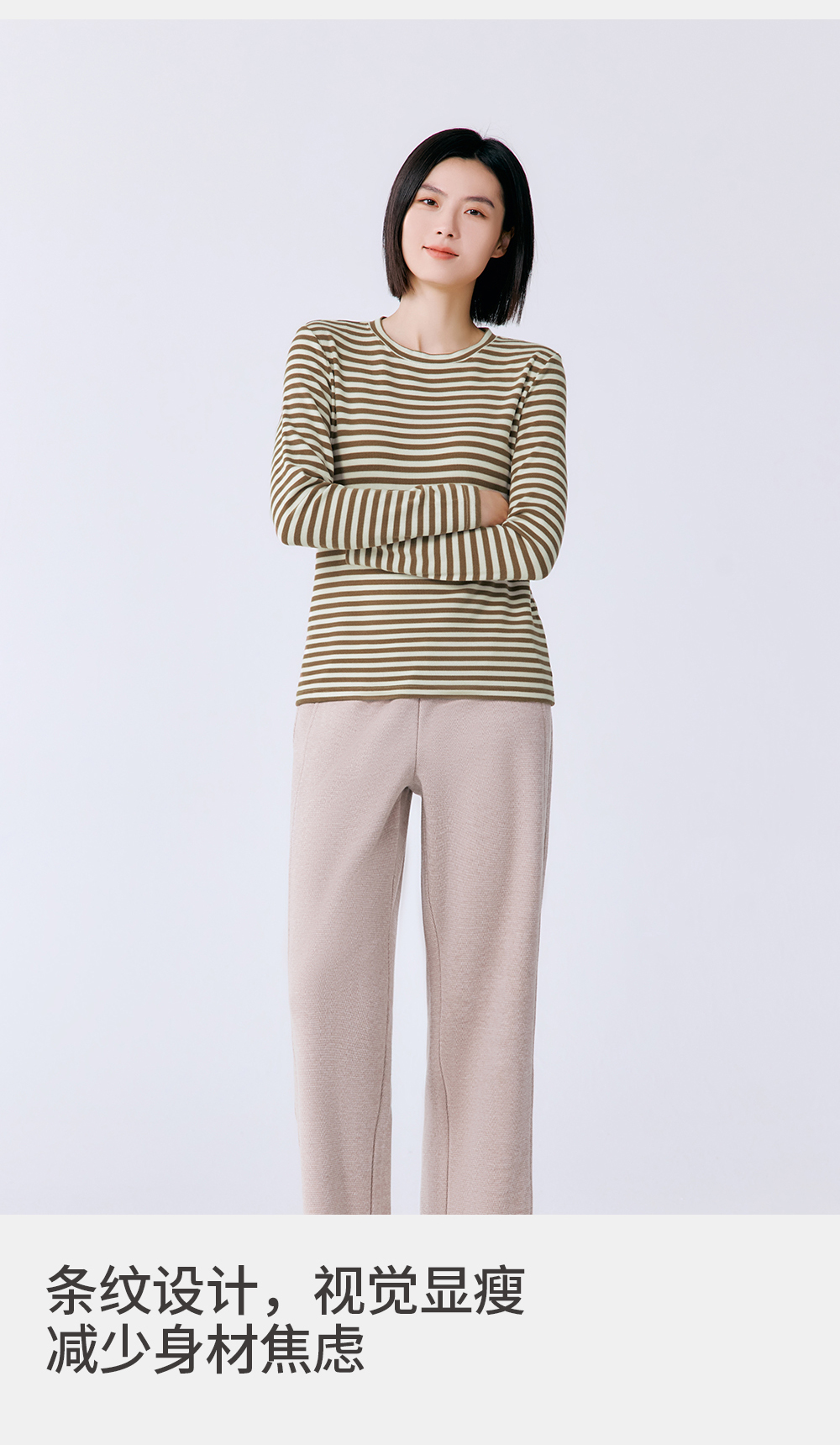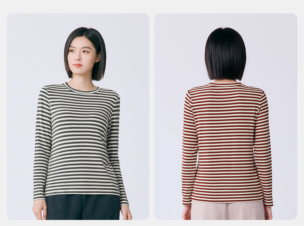 Threegun三枪 雪绒花彩条圆领女衫-T20081A01