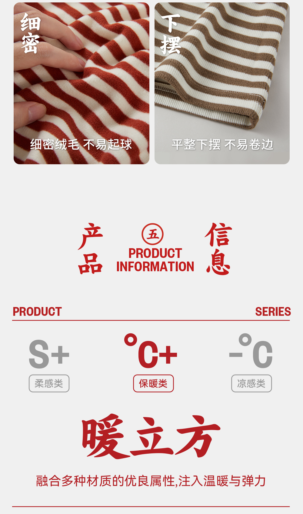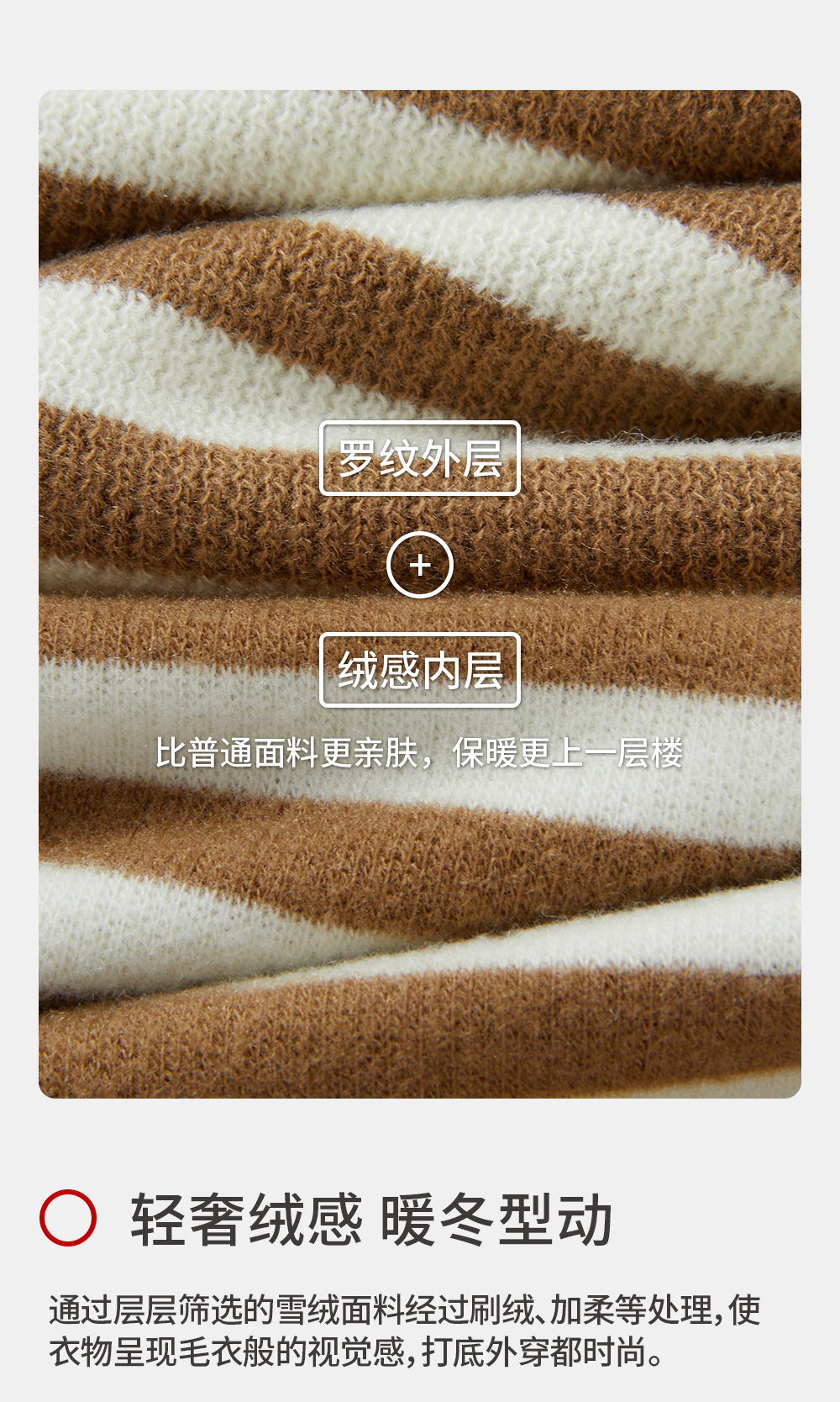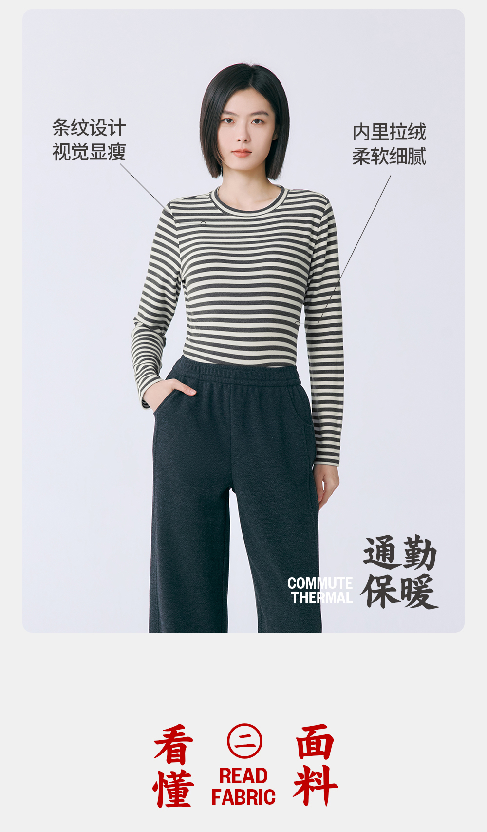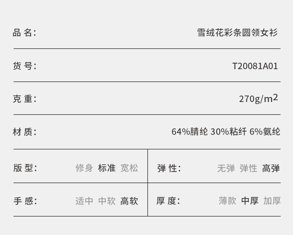 Threegun三枪 雪绒花彩条圆领女衫-T20081A01