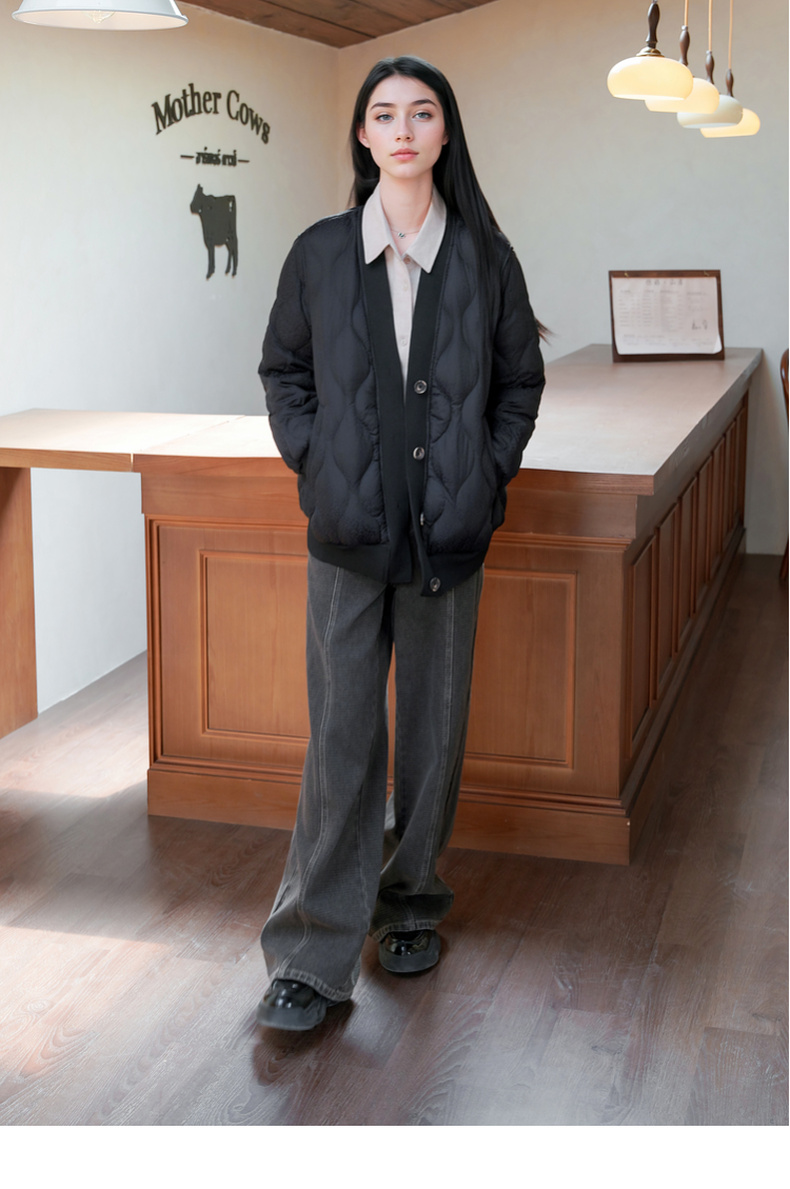 谜底短款羽绒服女士2025秋冬新款极简百搭宽松V领鸭绒服257MY8801