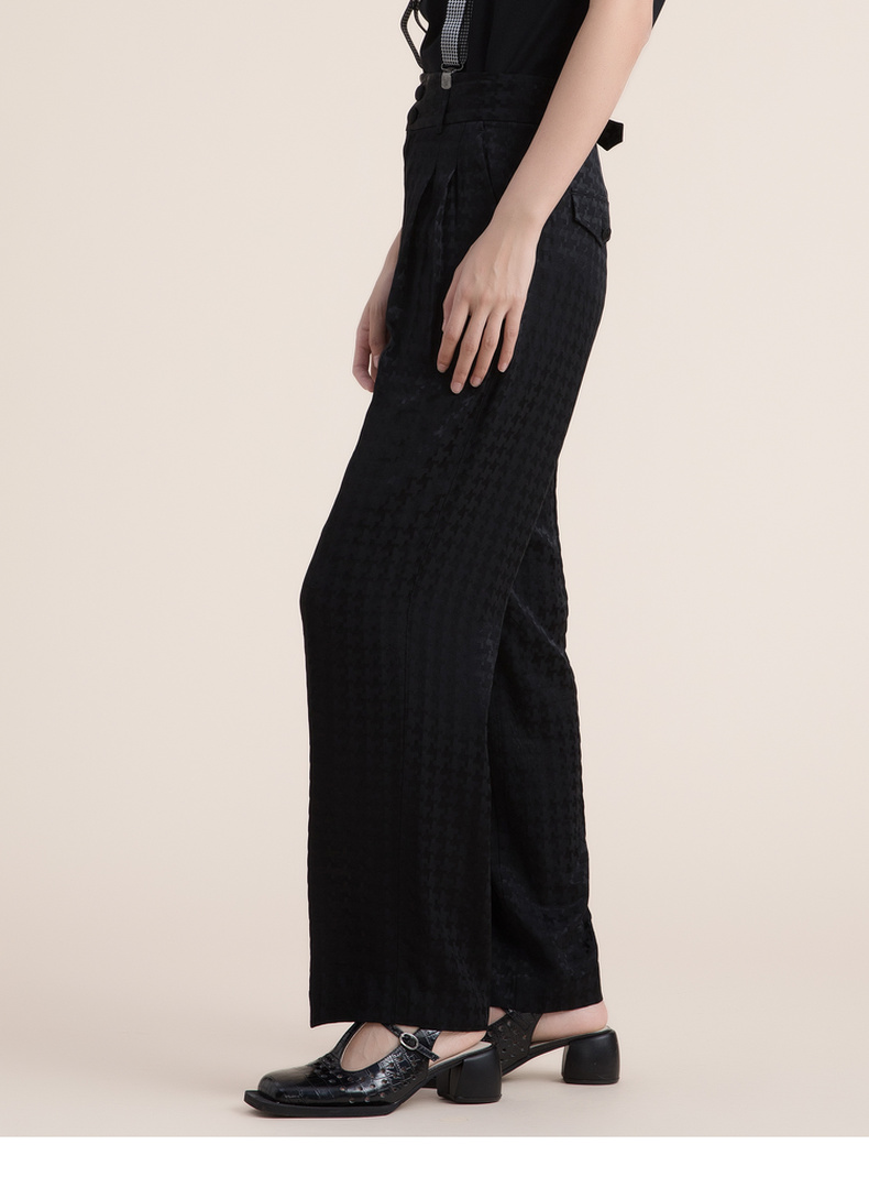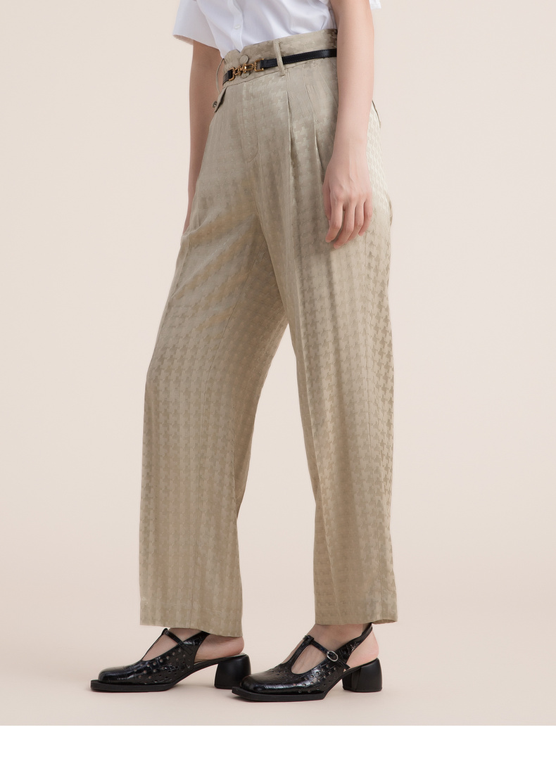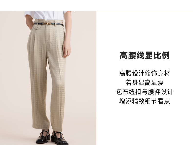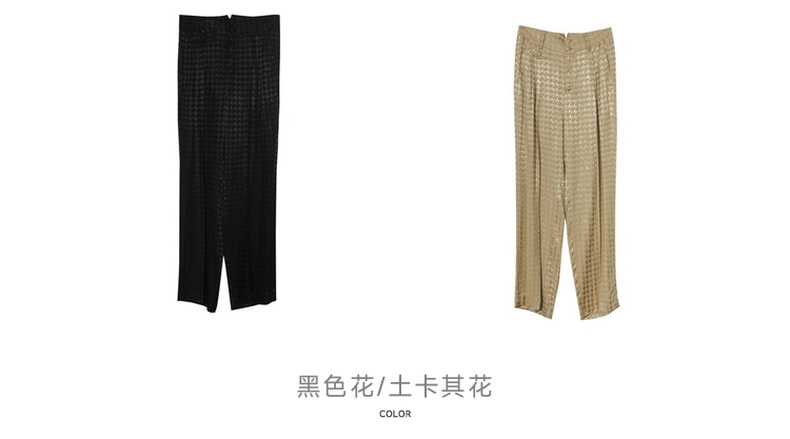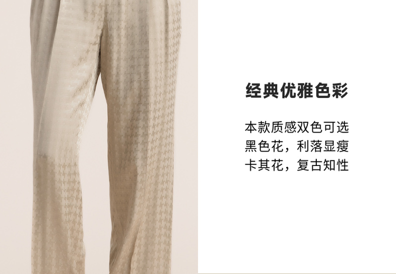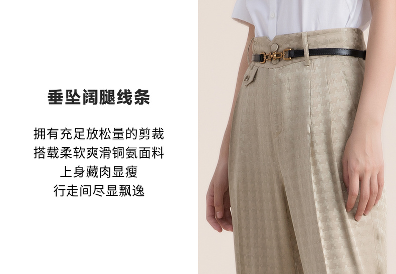 谜底2022夏季冰感垂坠千鸟格铜氨丝直筒裤长裤女222GK0643