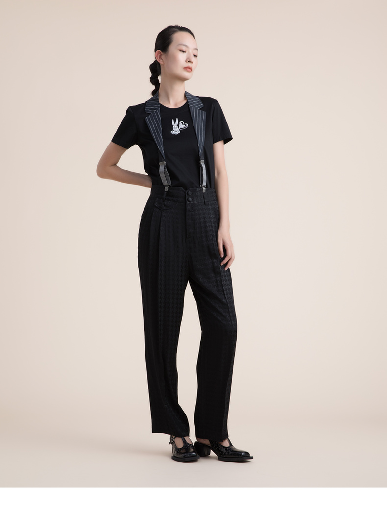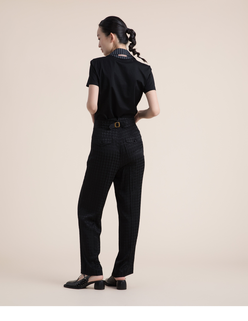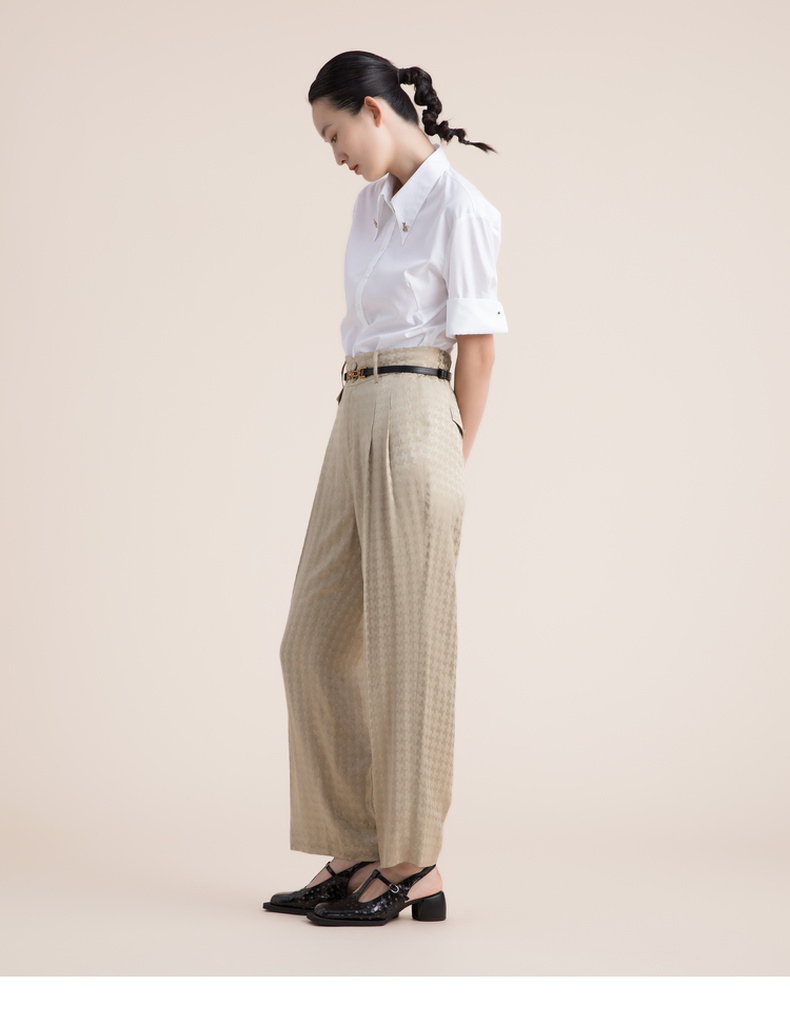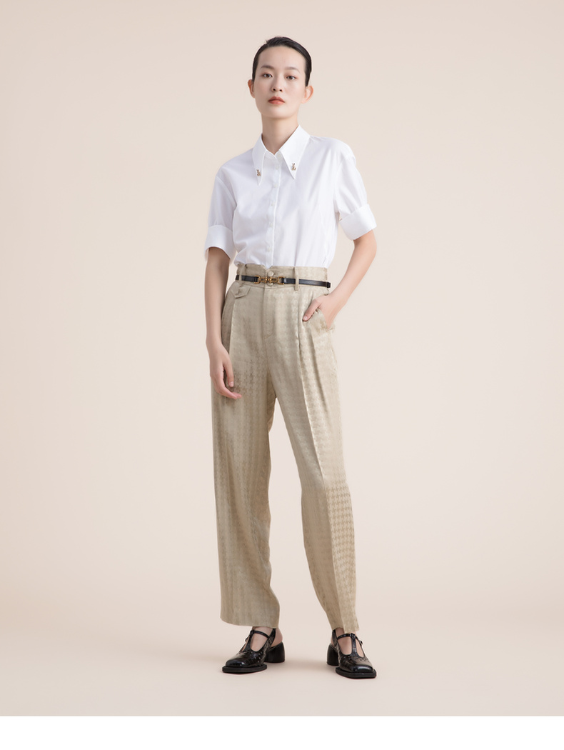 谜底2022夏季冰感垂坠千鸟格铜氨丝直筒裤长裤女222GK0643