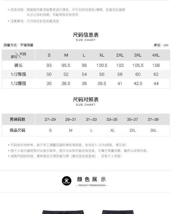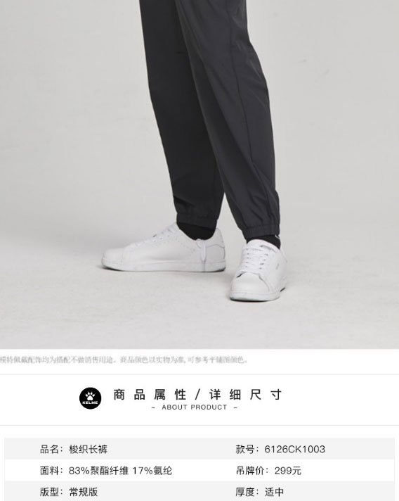 KELME卡尔美休闲裤男新款束脚收口梭织裤子百搭纯色运动长裤6126CK1003