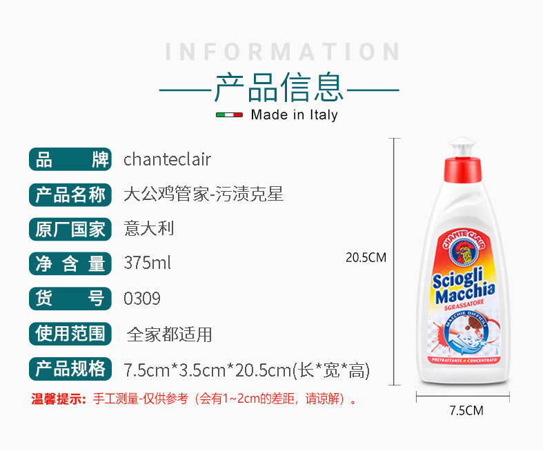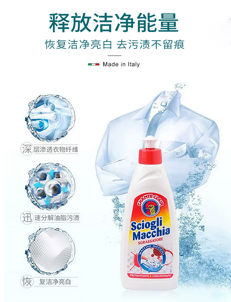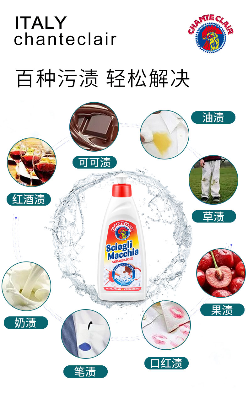 【中欧班列2瓶】意大利衣物去渍喷雾 原装进口大公鸡管家去污去渍衣物袖口喷雾500ml去污去渍衣领净375ml
