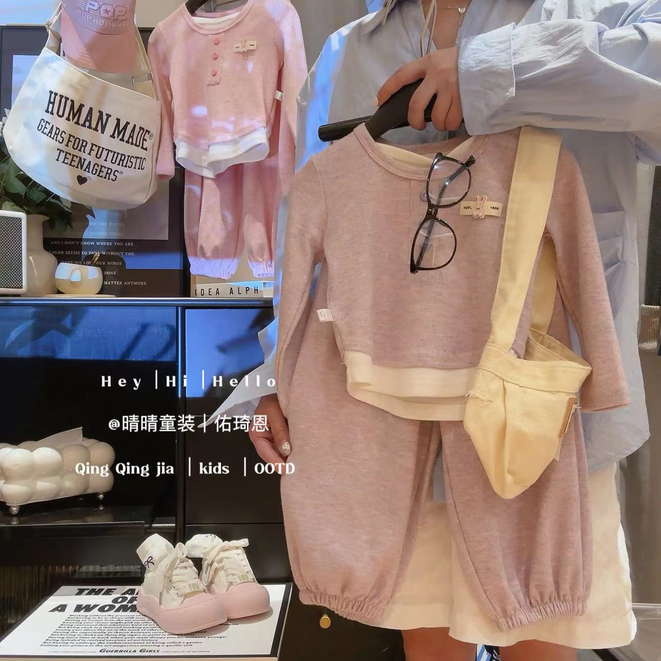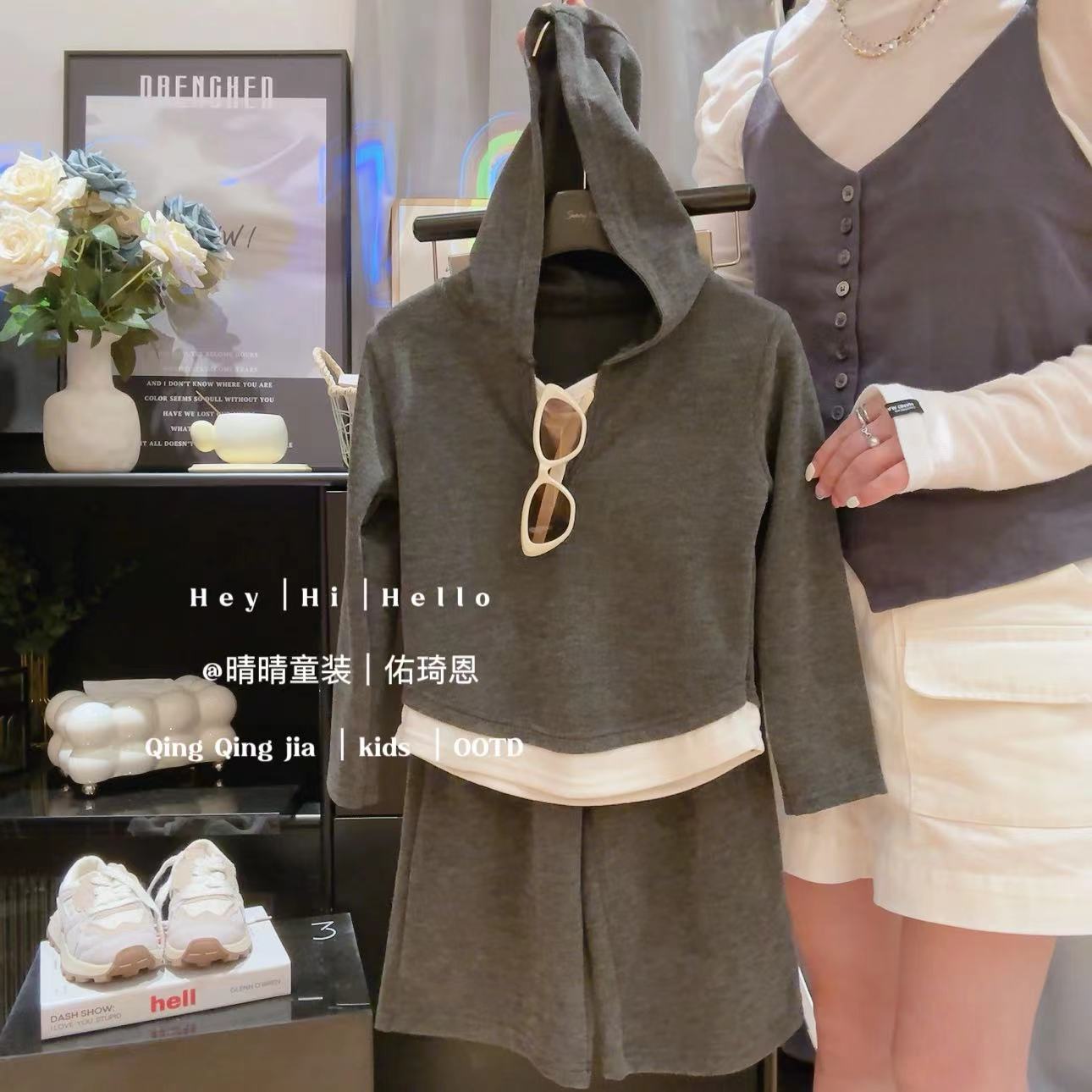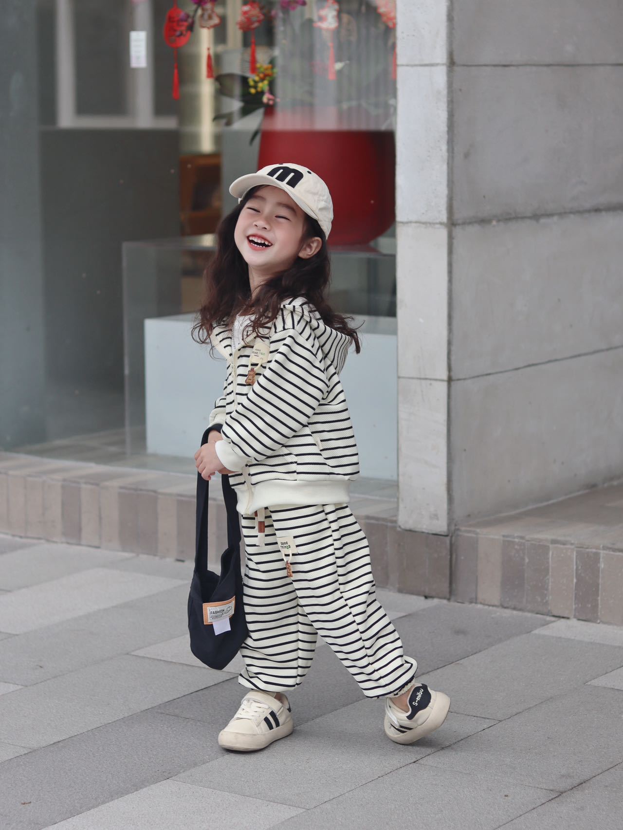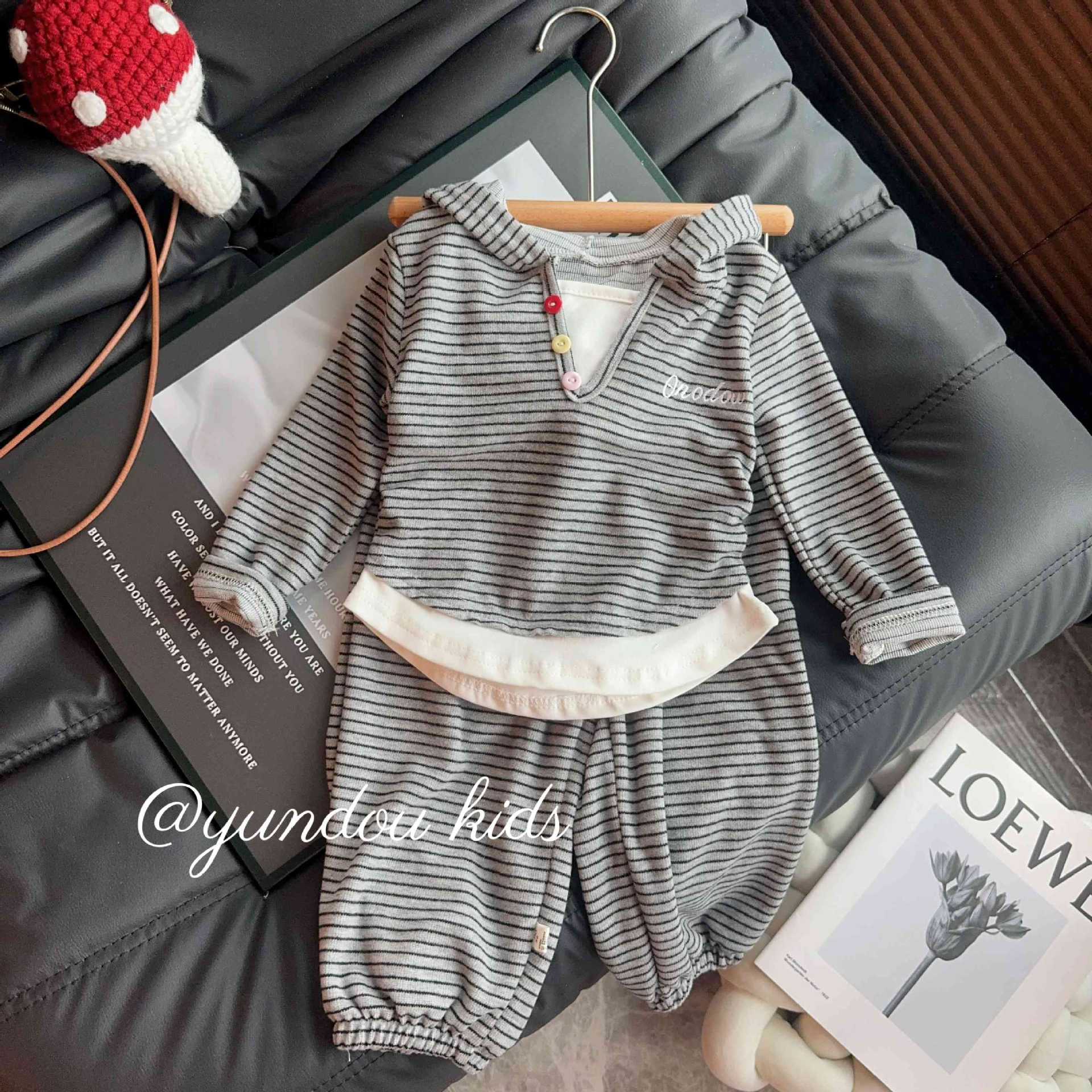 儿童外套套装童装网红休闲连帽时髦小童男童女童秋季条纹时尚洋气
