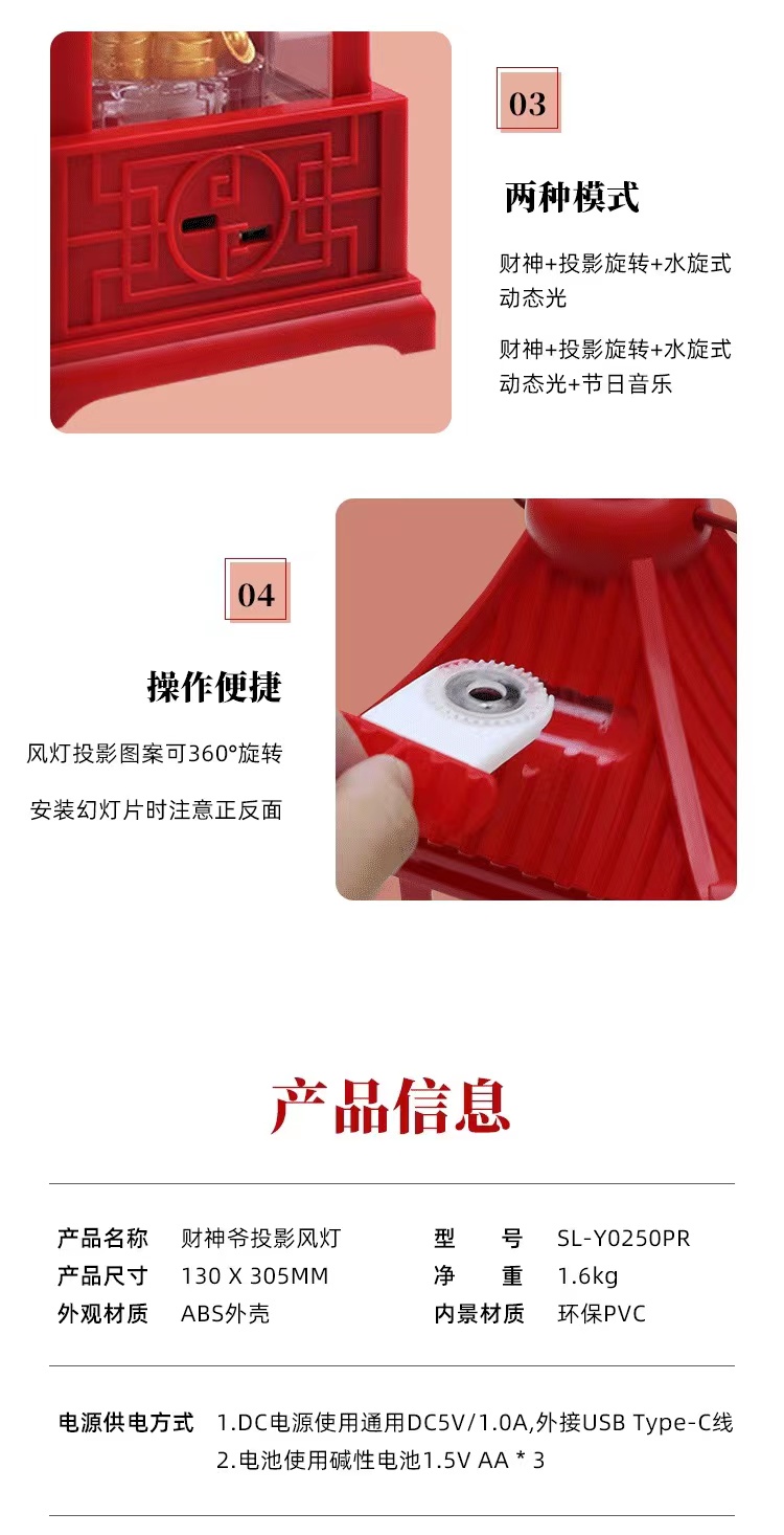 财神爷投影风灯 SL-Y0250PR