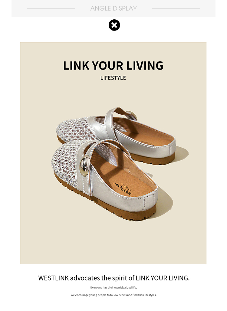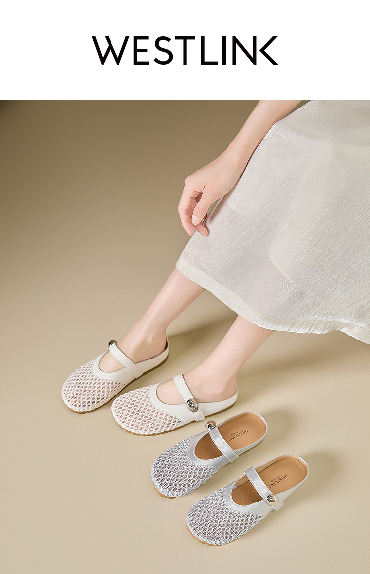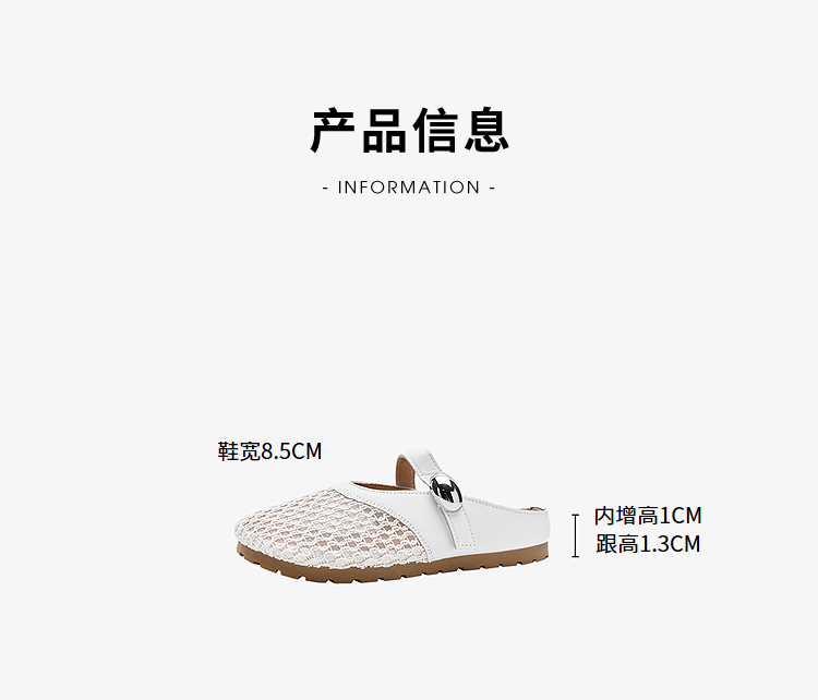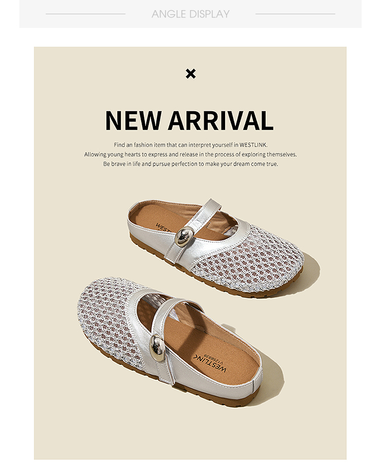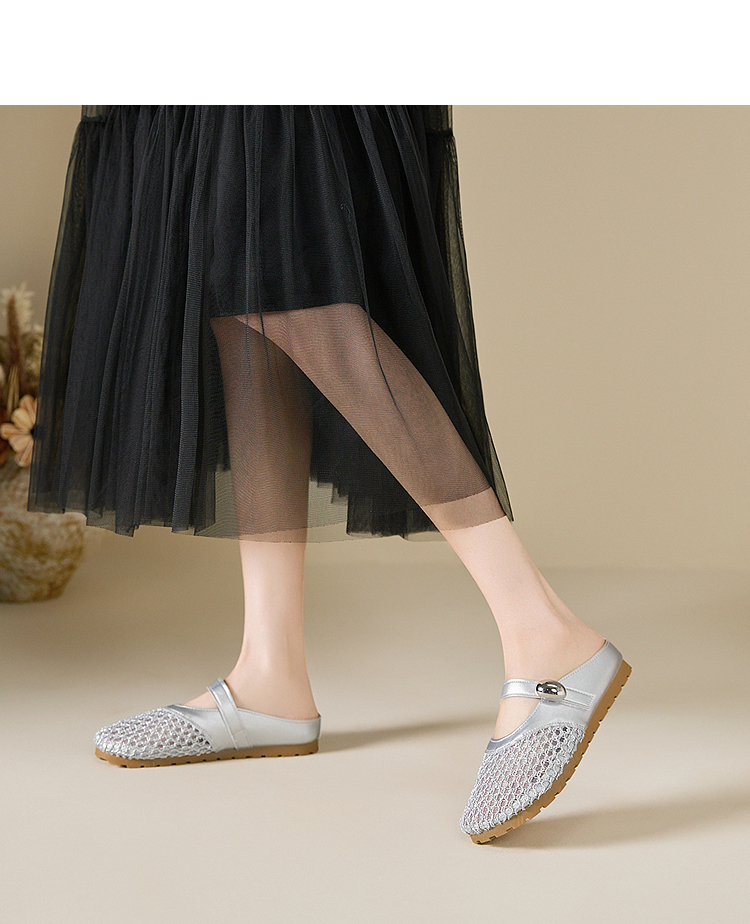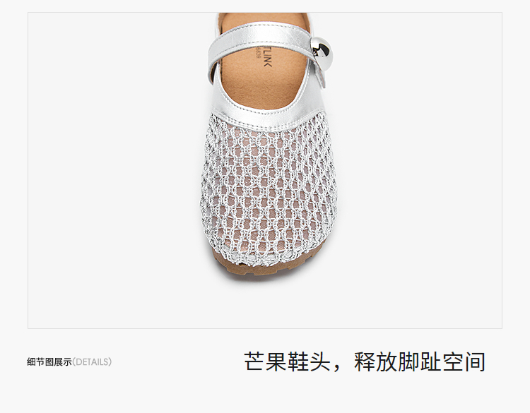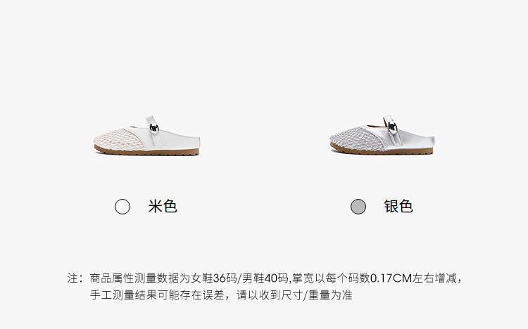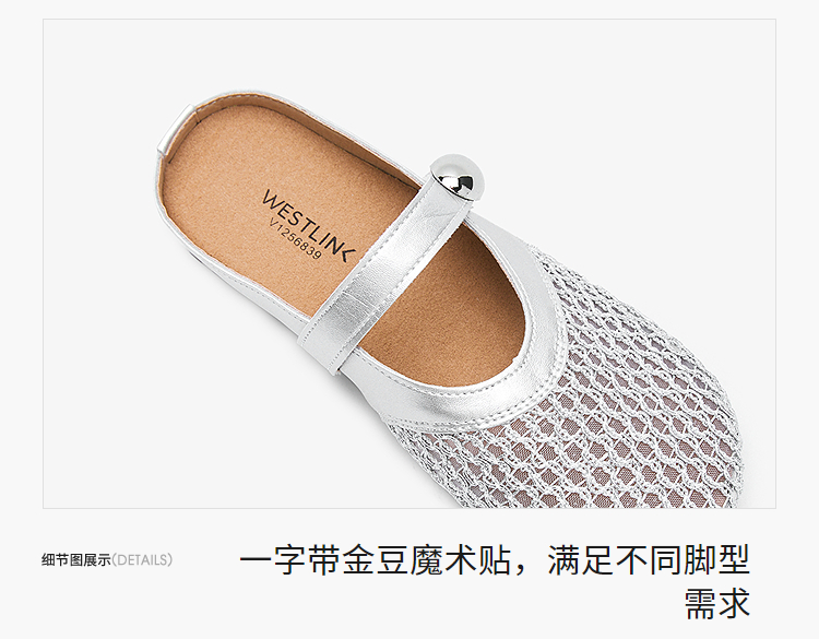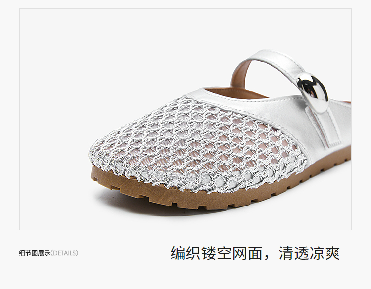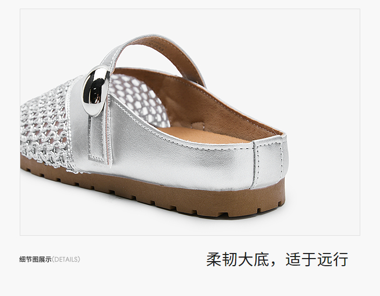 西遇一脚蹬半拖鞋女新款夏季镂空网面包头凉拖银色外穿拖鞋V1256839