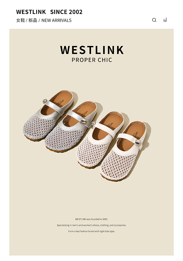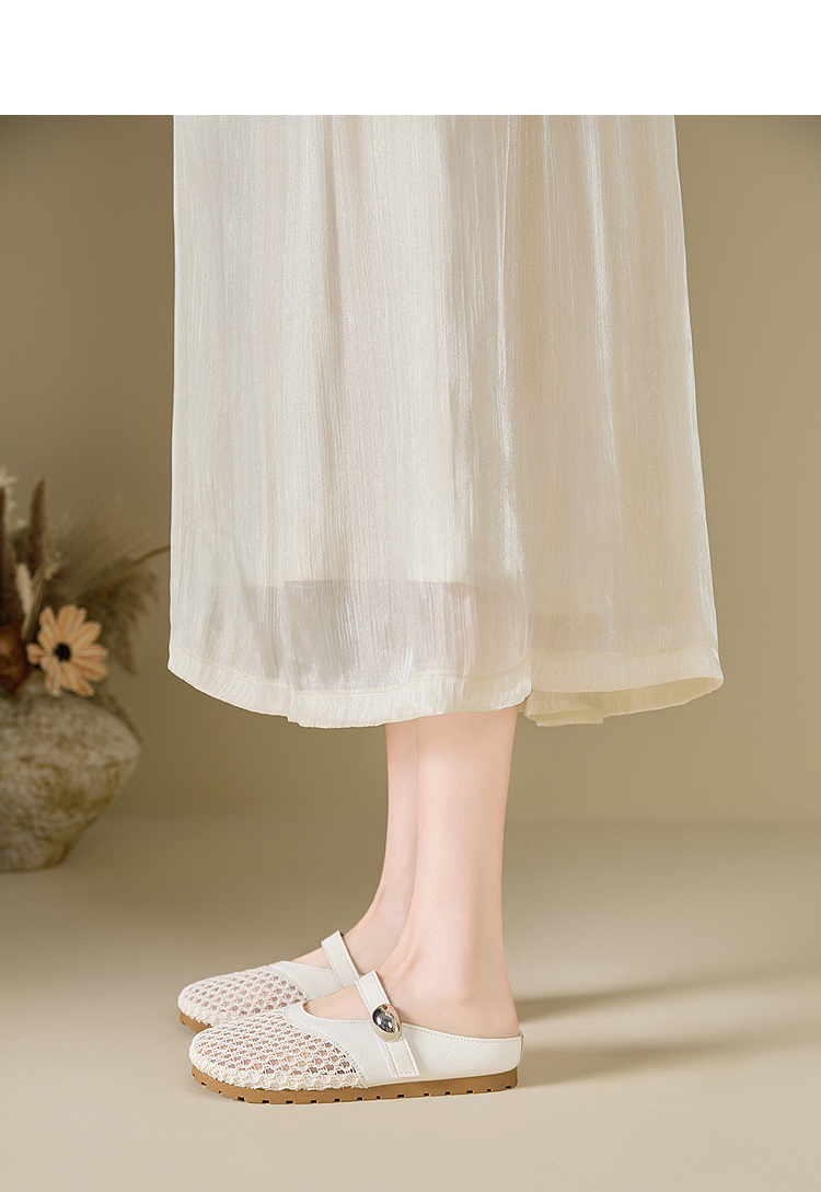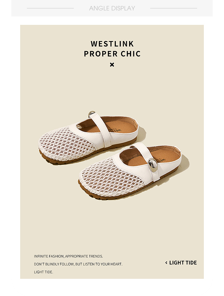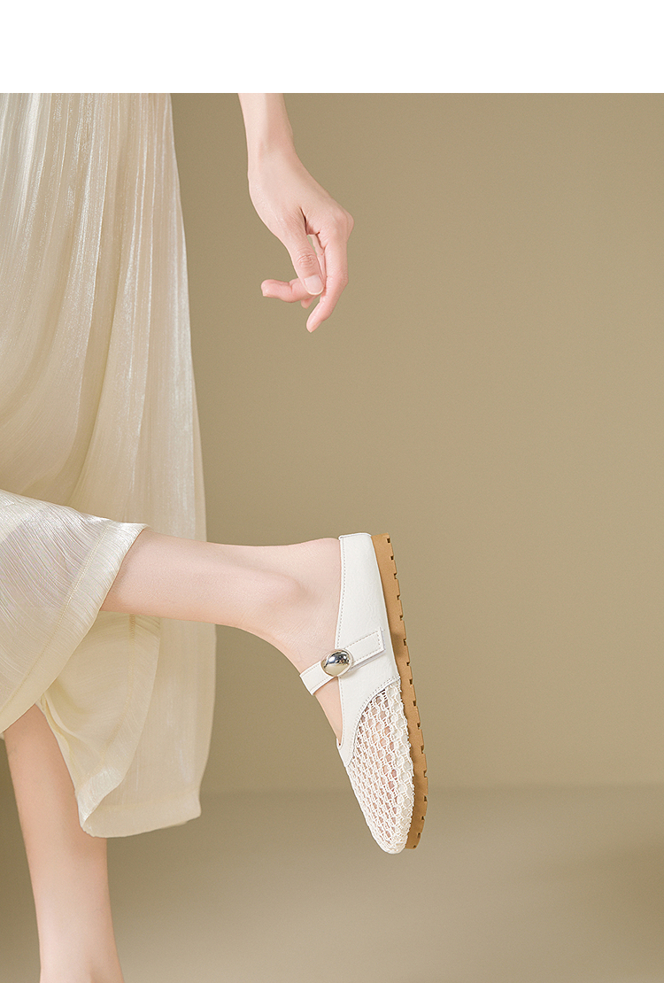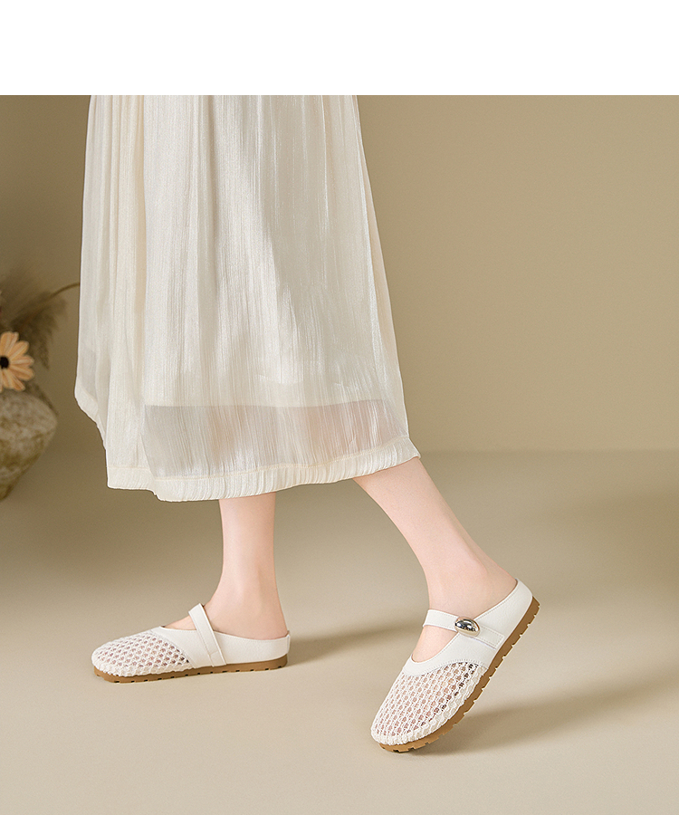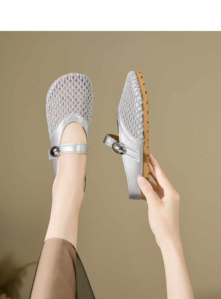西遇一脚蹬半拖鞋女新款夏季镂空网面包头凉拖银色外穿拖鞋V1256839