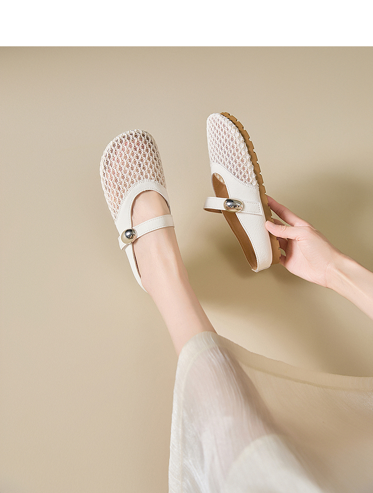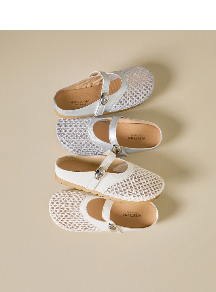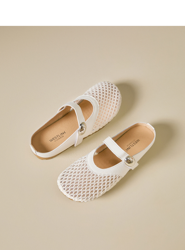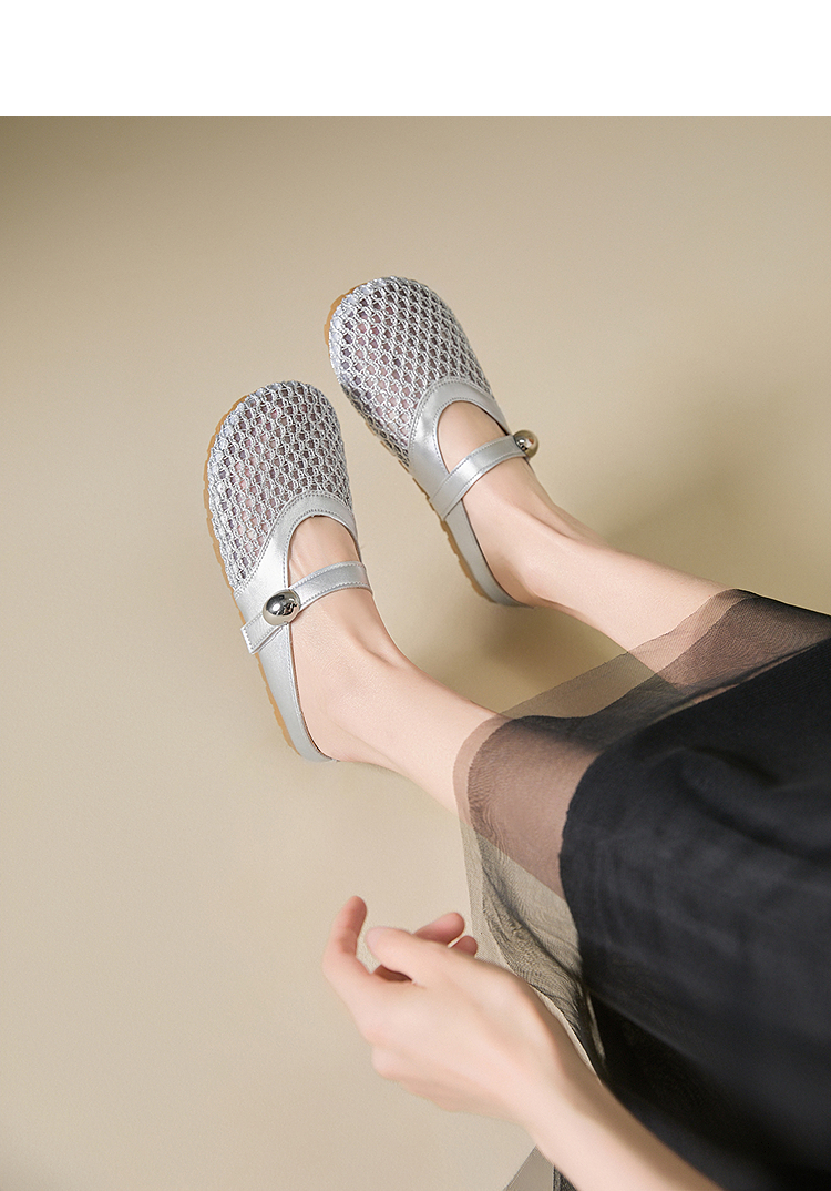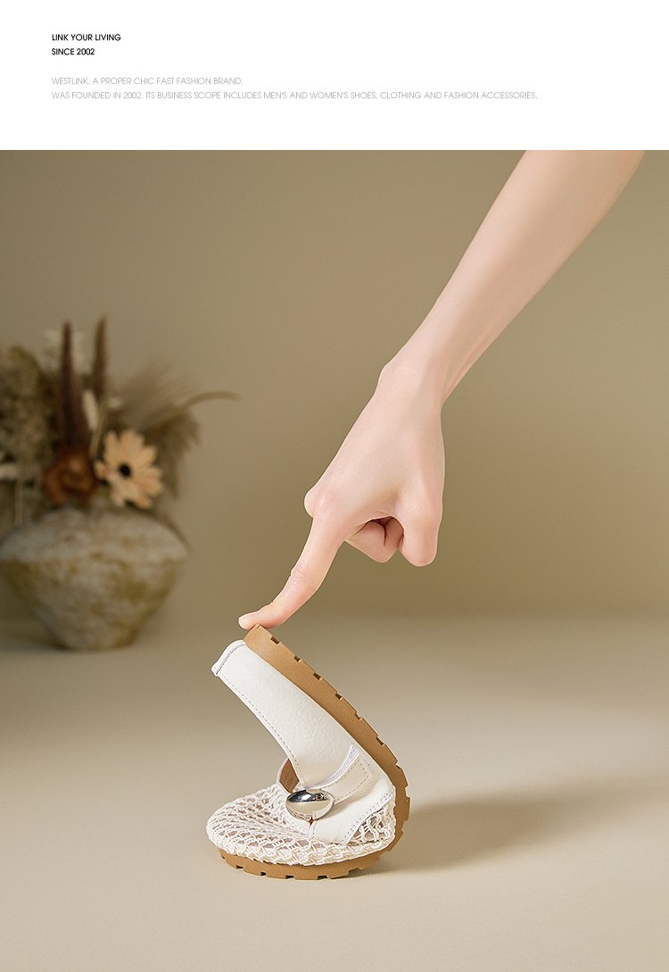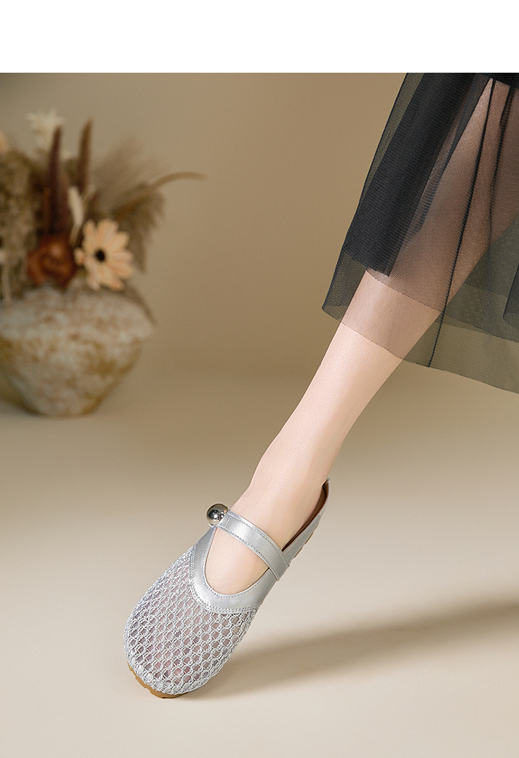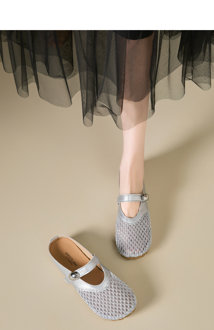 西遇一脚蹬半拖鞋女新款夏季镂空网面包头凉拖银色外穿拖鞋V1256839