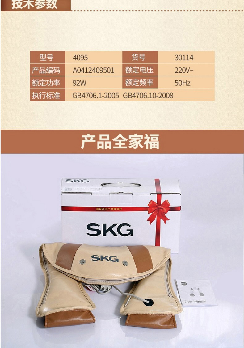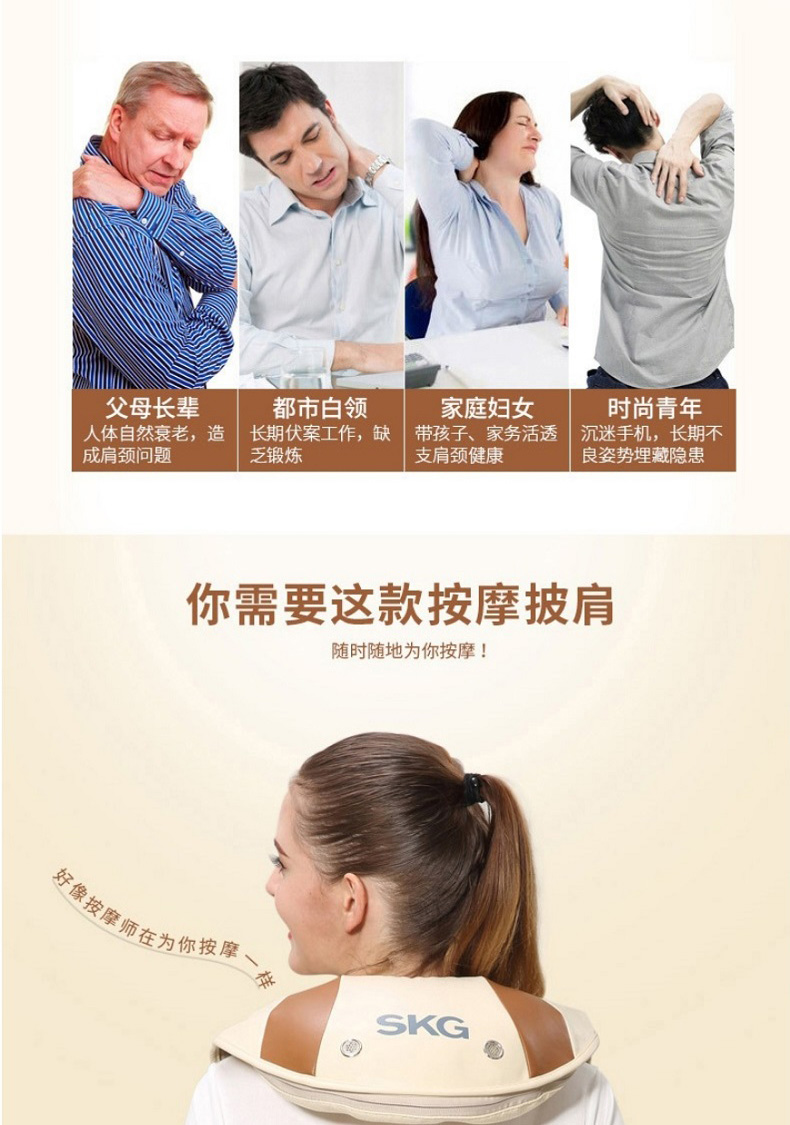 SKG 4095肩颈椎按摩器 温热揉捏 颈部腰部肩部腿部按摩披肩